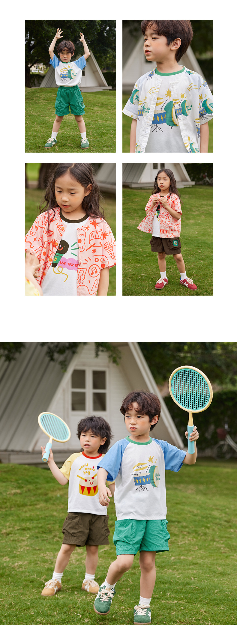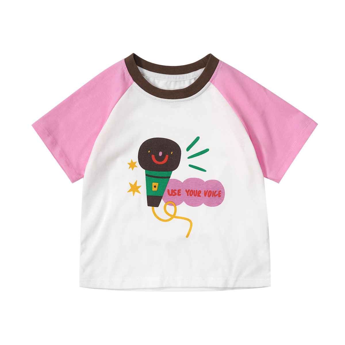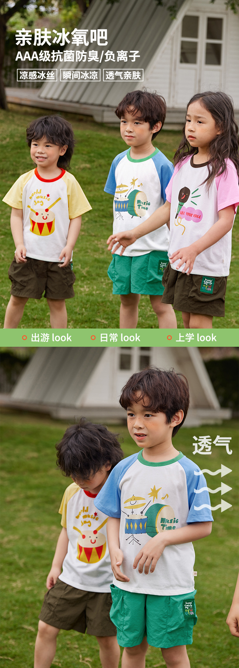 Minizone 어린이 반팔 티셔츠 아이스 산소 바 스플 라이스 탑 여름 새 스타일 반팔 셔츠 소년과 소녀를위한 얇은 티셔츠스토어 가기