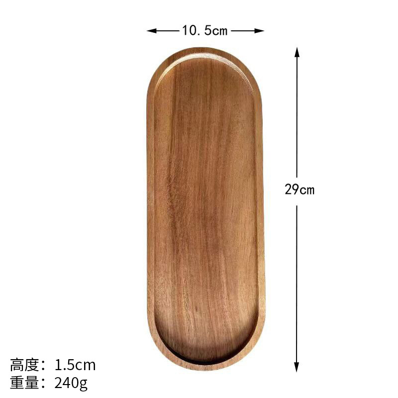 아카시아 나무 트레이 직사각형 식판 단열 원목 패턴 접시 타원형 빵판 찻잔 받침대 단열형