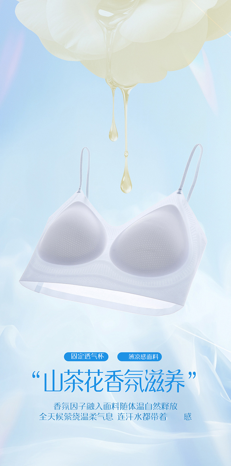 D09 동백꽃 향기로운 편안하고 시원한 무봉제 속옷 워터 드롭 컵 보이지 않는 통기성 내부 컵 여름 여성 브래지어스토어 가기