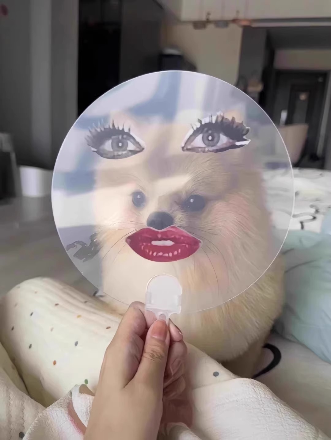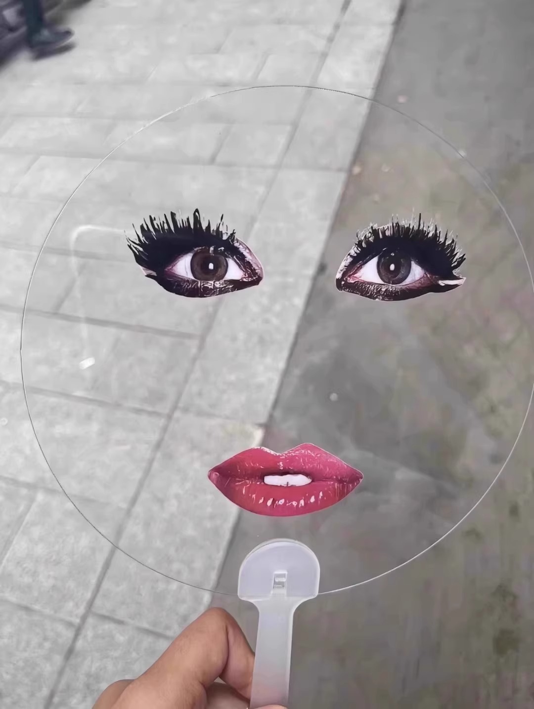 재미있는 추상 팬 불꽃 빨간 입술 인쇄 추상 레이디 가가 투명 원형 팬 콘서트 지원스토어 가기