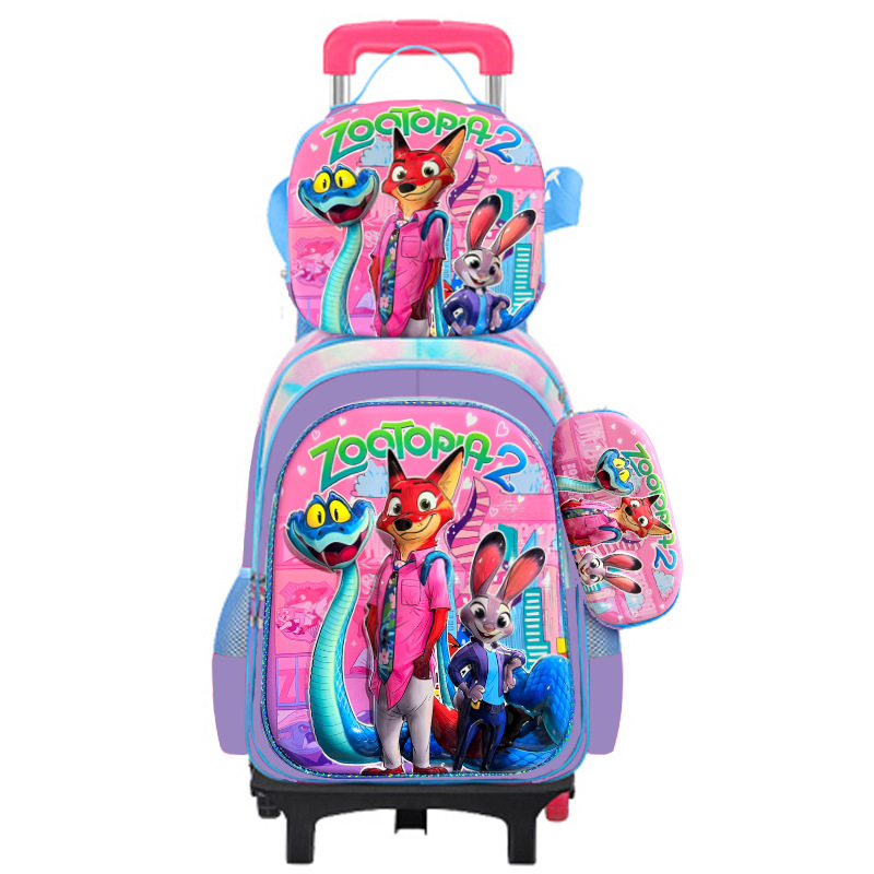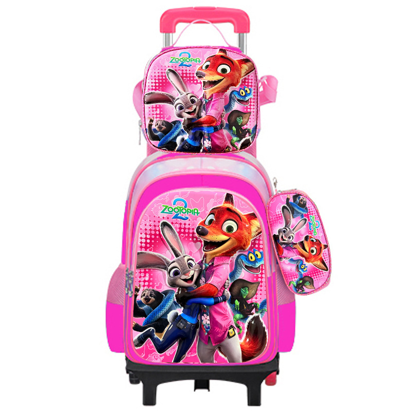 새로운 귀여운 초등학생용 트롤리 책가방 3~6학년 만화 캐릭터 3종 세트 두 바퀴 여섯 바퀴 어린이 책가방 재고 있음
