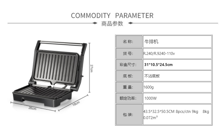 국경 간 유럽 및 미국 가정용 샌드위치 기계, 바베큐 소시지 기계, 버거 토스트 스테이크 기계, 바베큐 기계