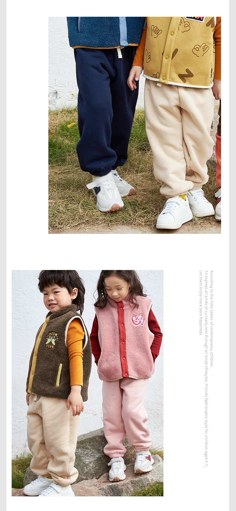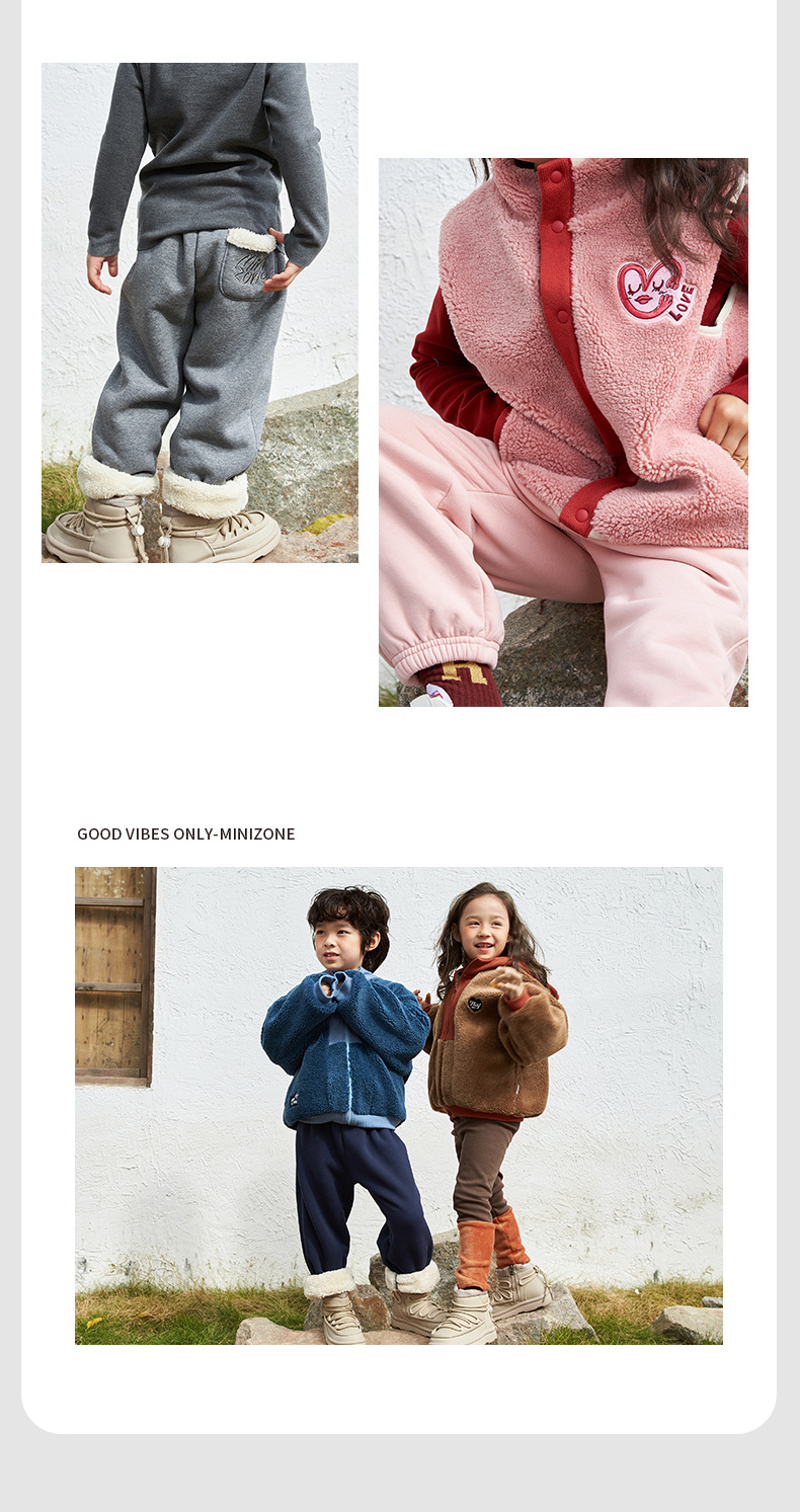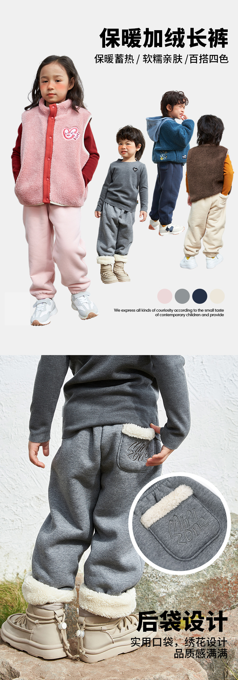 Minizone 아동용 스웨트 팬츠 플러스 벨벳 소년 캐주얼 스웨트 팬츠 두꺼운 원피스 벨벳 아우터웨어 소녀 따뜻한 바지스토어 가기