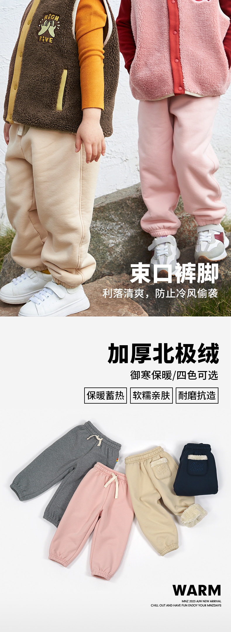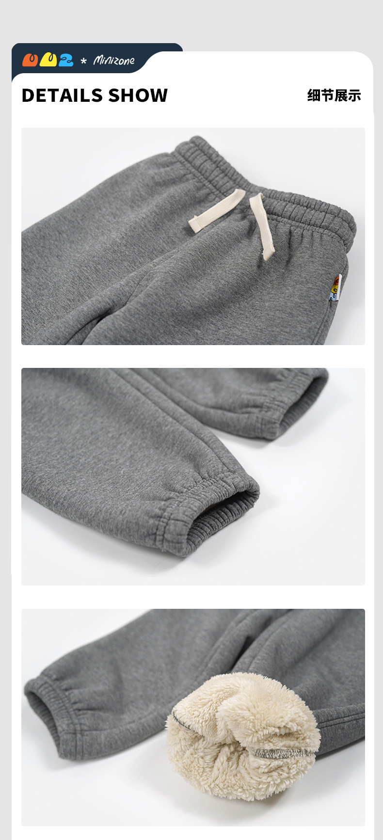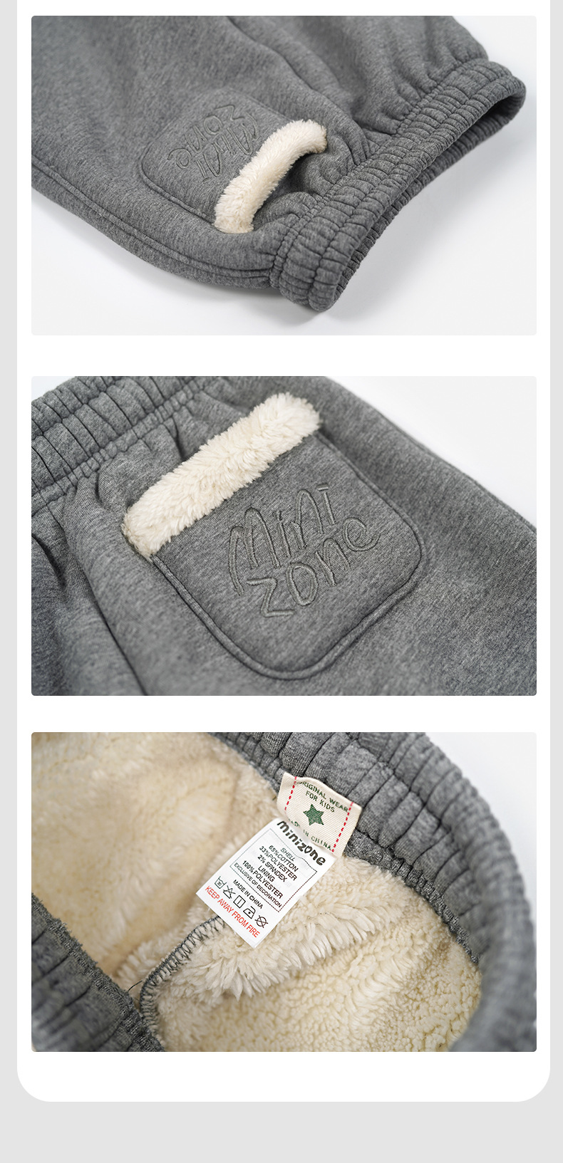 Minizone 아동용 스웨트 팬츠 플러스 벨벳 소년 캐주얼 스웨트 팬츠 두꺼운 원피스 벨벳 아우터웨어 소녀 따뜻한 바지