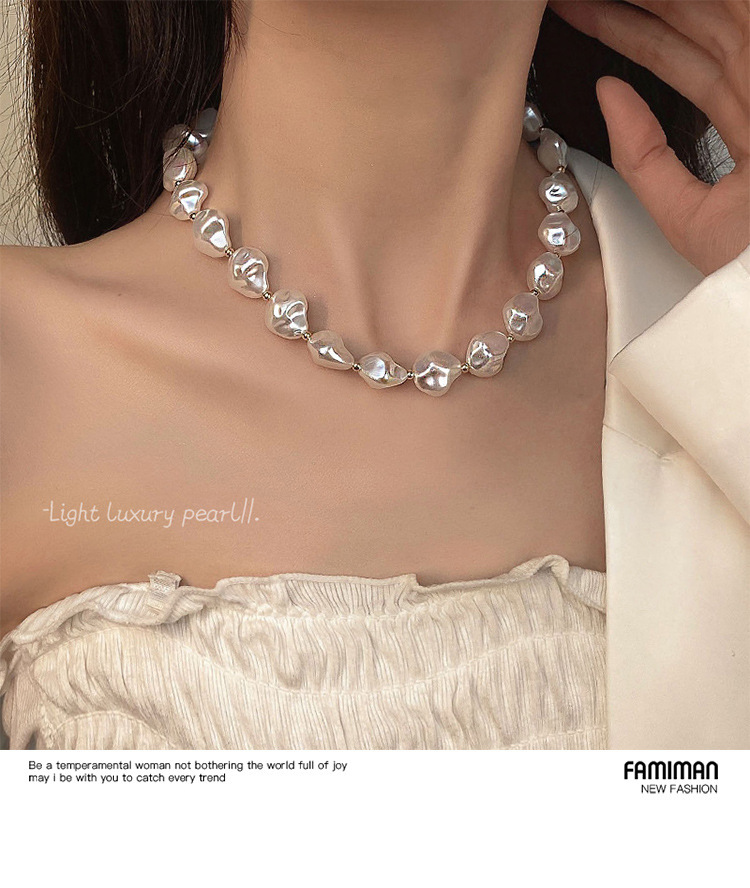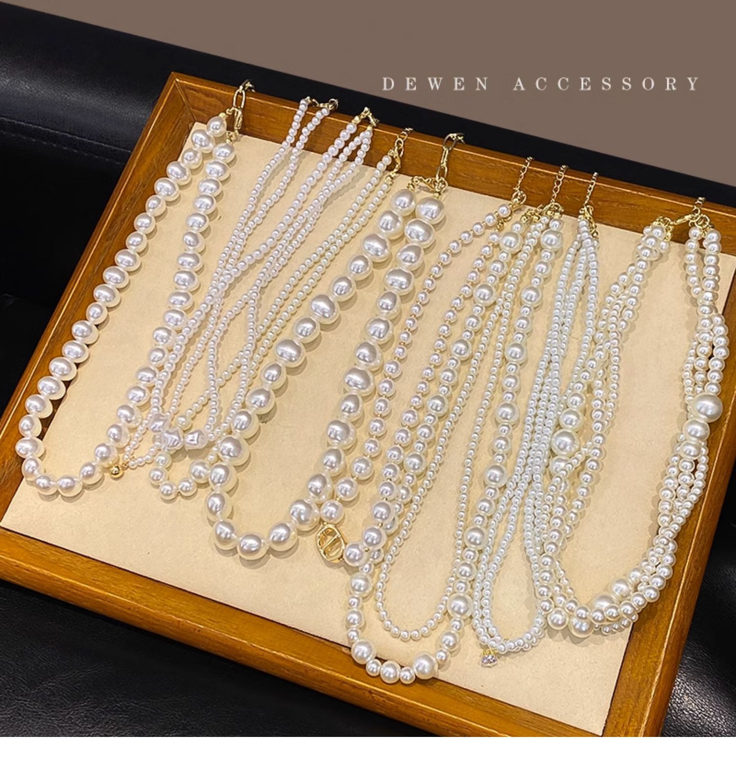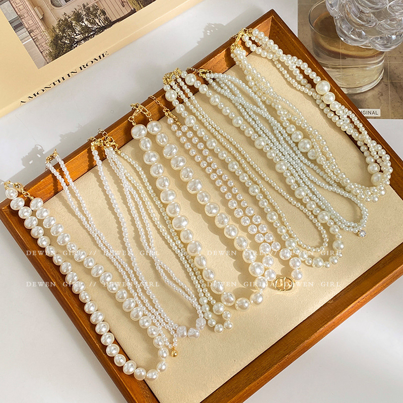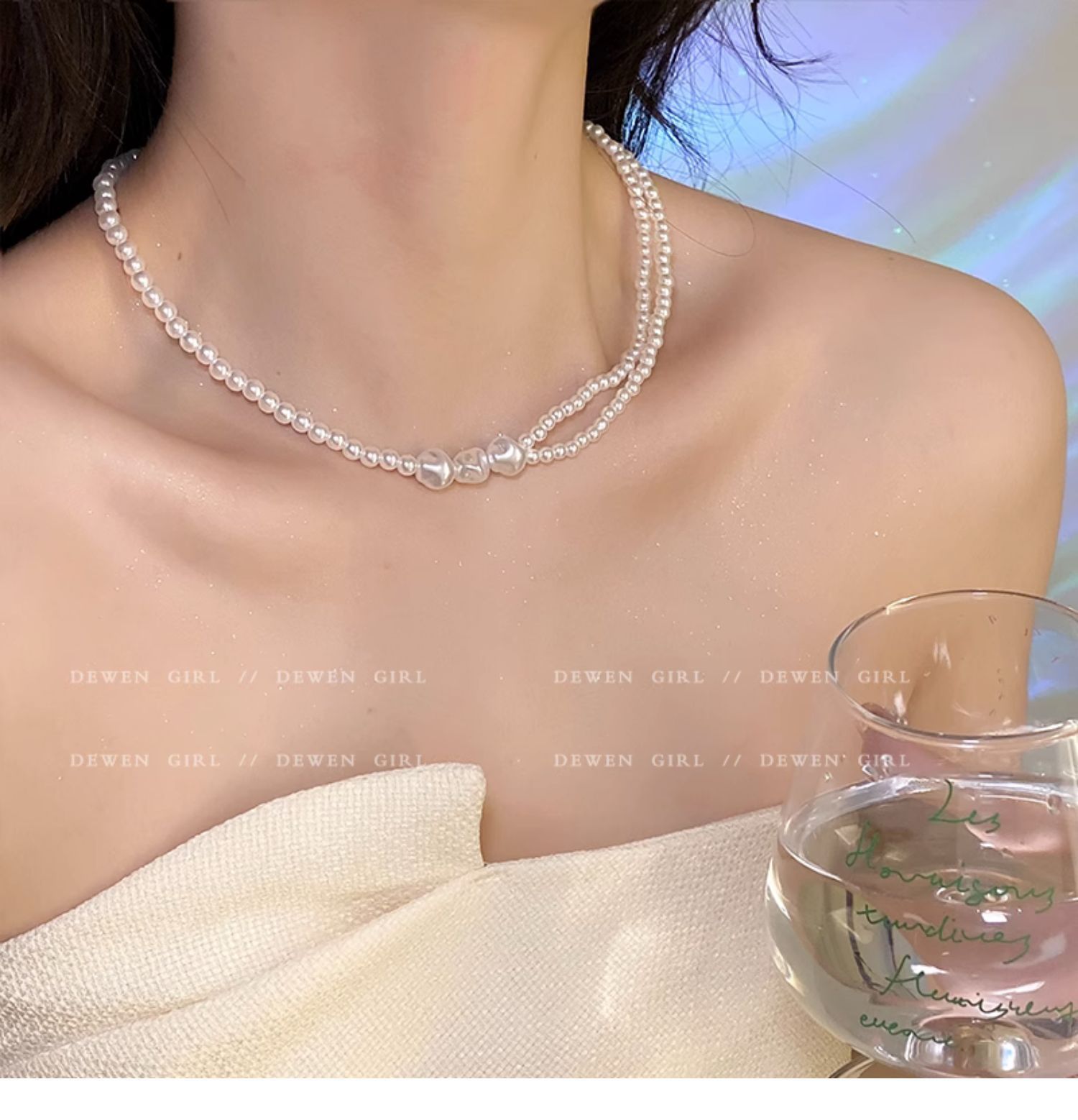샤넬 스타일 다층 바로크 모조 진주 목걸이 칼라 체인 레트로 빛 럭셔리 틈새 목 체인 패션 액세서리 여성