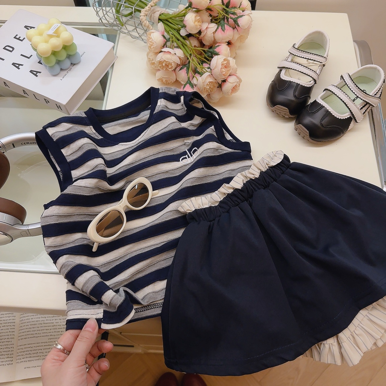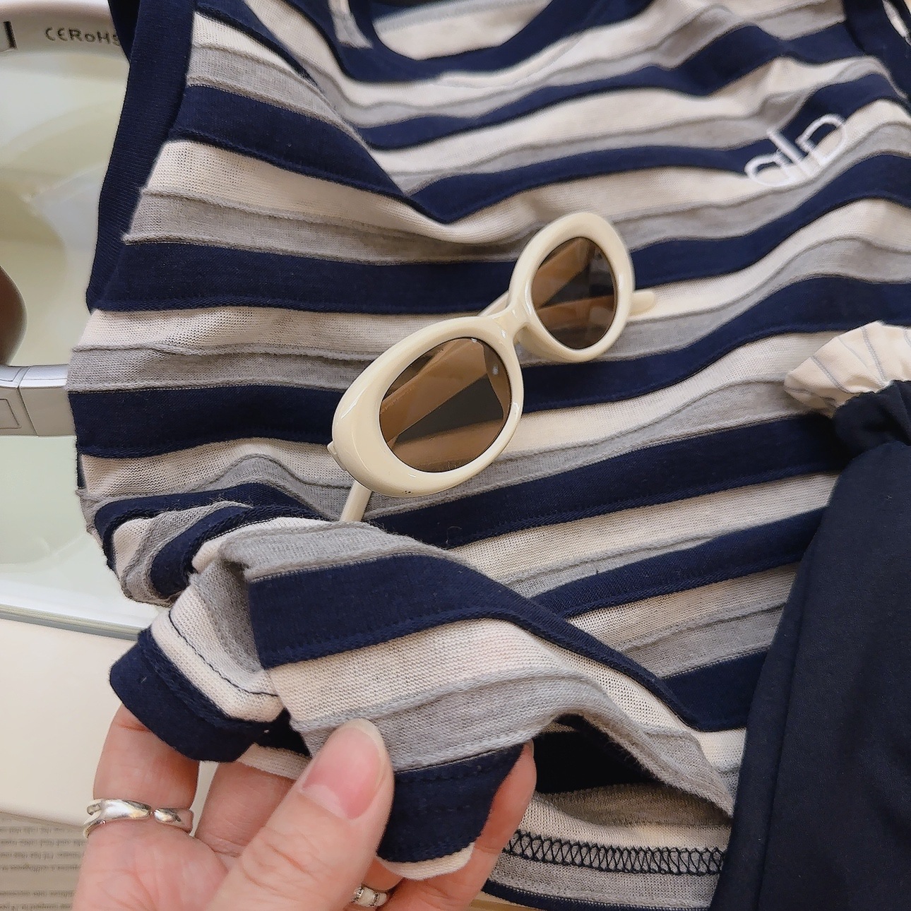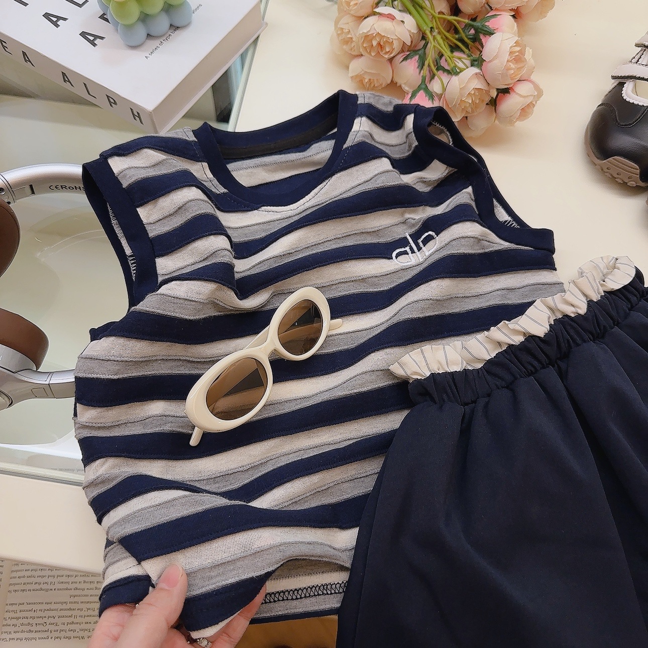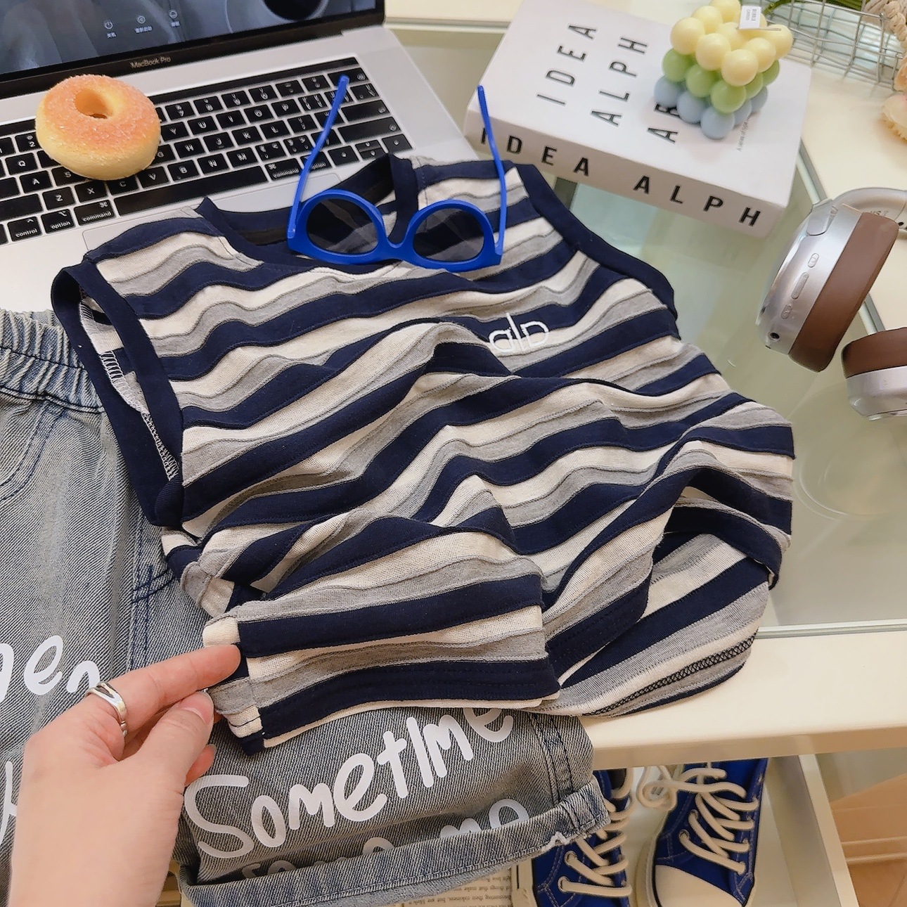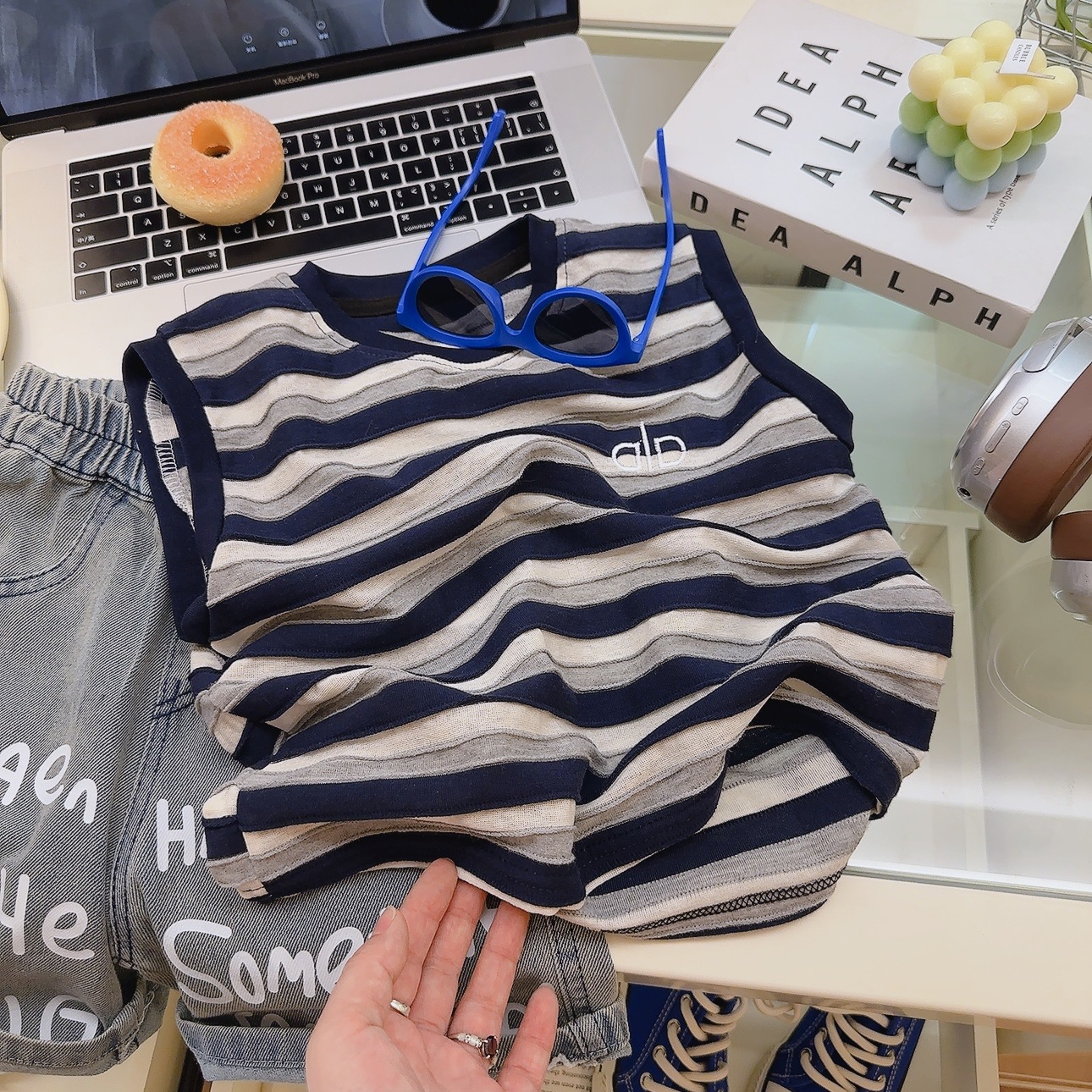 2025년 신상 아동 스트라이프 스플라이싱 트렌디 아동 신상 중대형 아동 상의 얇고 활용도가 높은 민소매 조끼