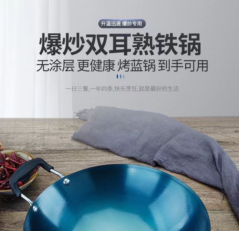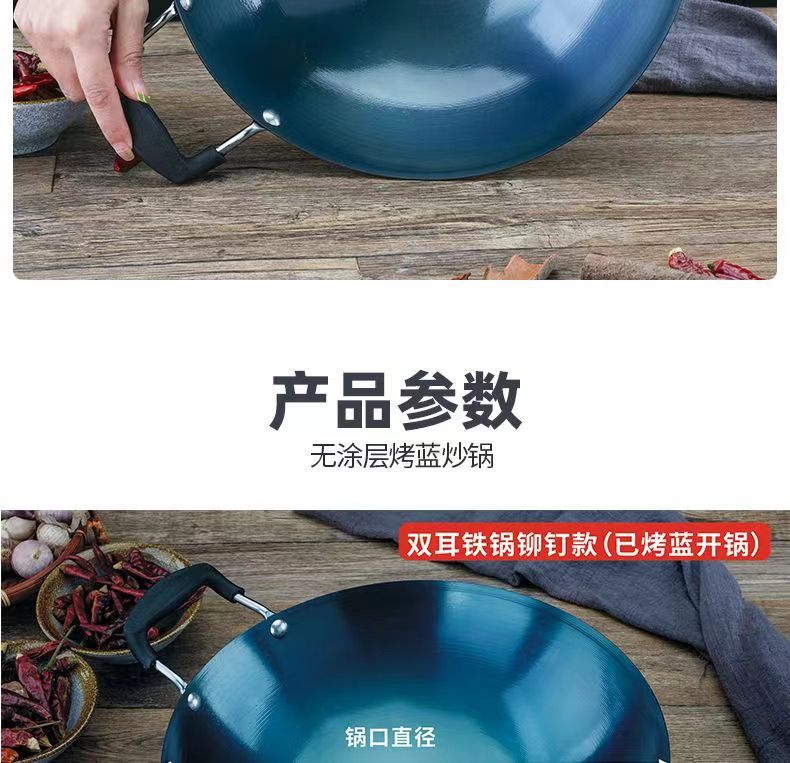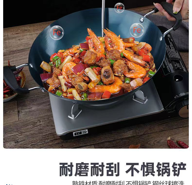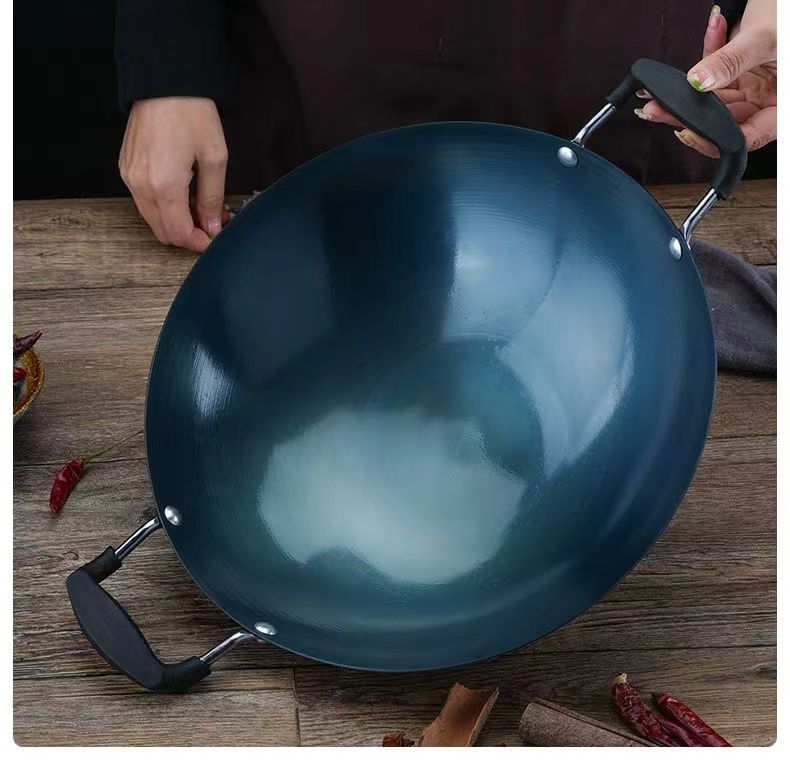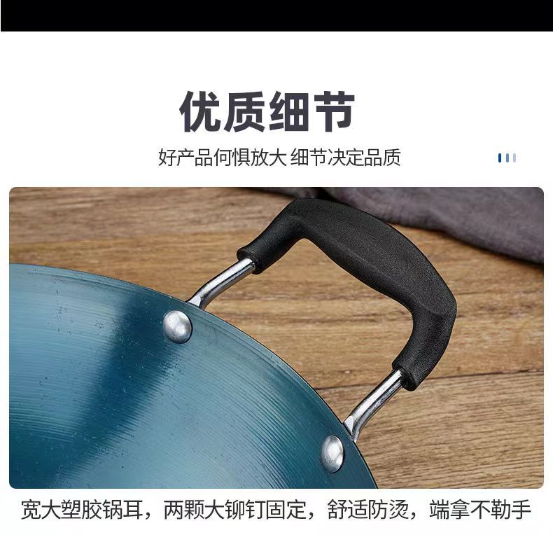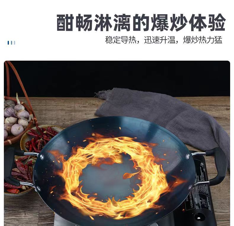 두꺼운 양귀 철 냄비, 가정용 구식 레스토랑 요리사 냄비, 화상 방지 디자인, 둥근 바닥 냄비, 코팅되지 않은 철 냄비