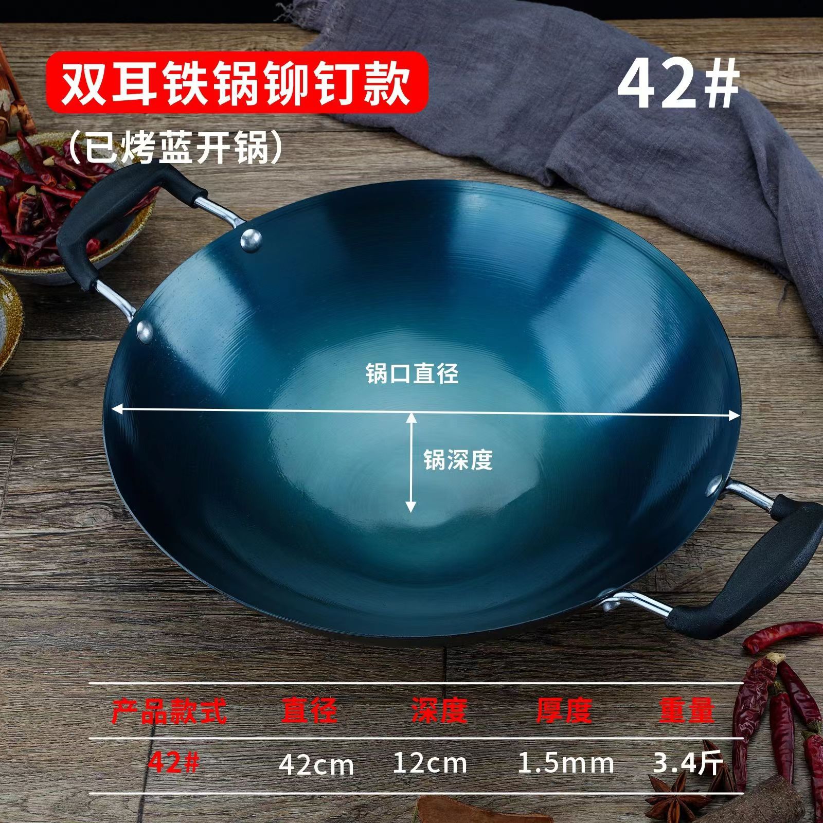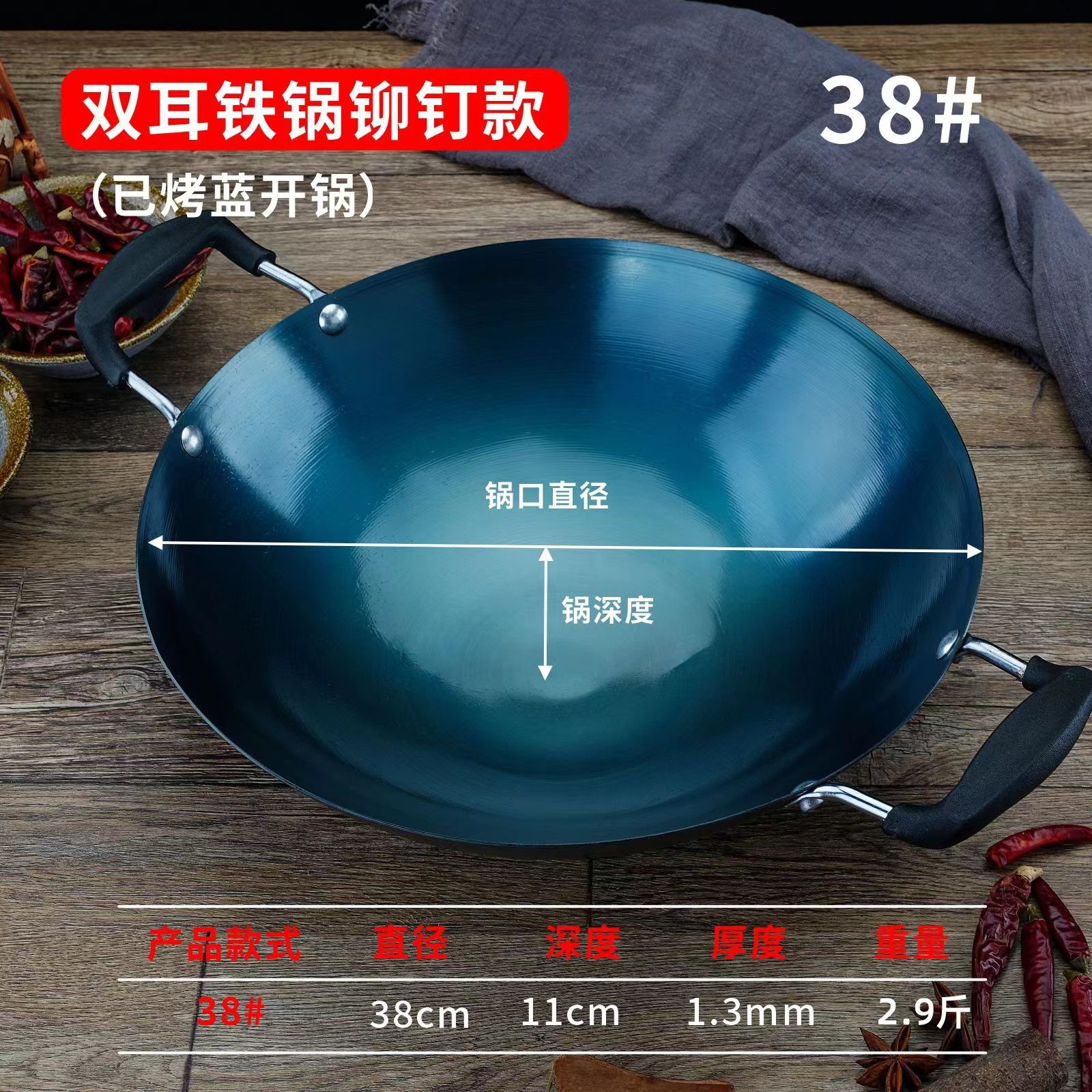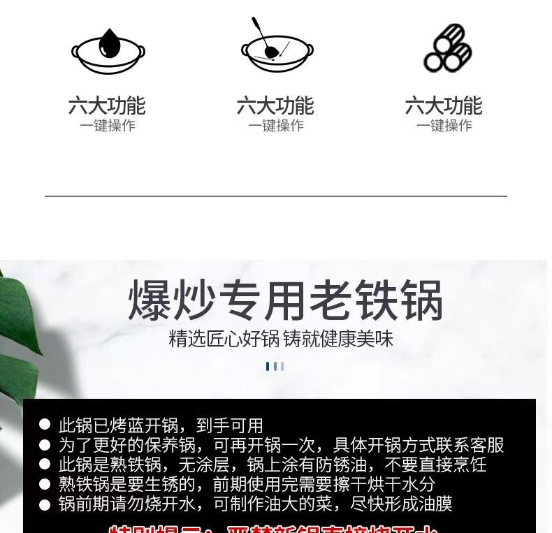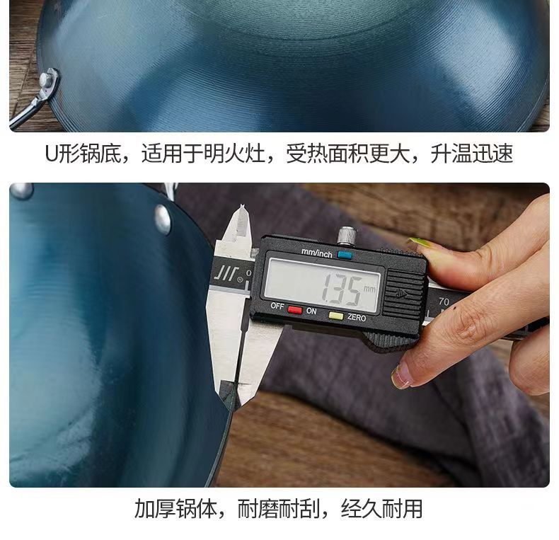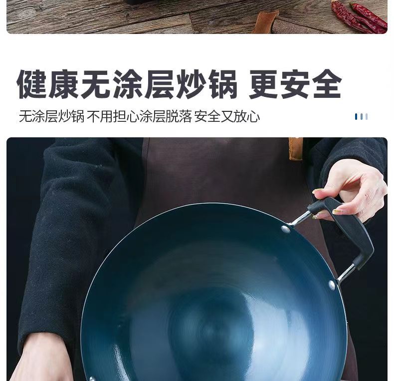 두꺼운 양귀 철 냄비, 가정용 구식 레스토랑 요리사 냄비, 화상 방지 디자인, 둥근 바닥 냄비, 코팅되지 않은 철 냄비