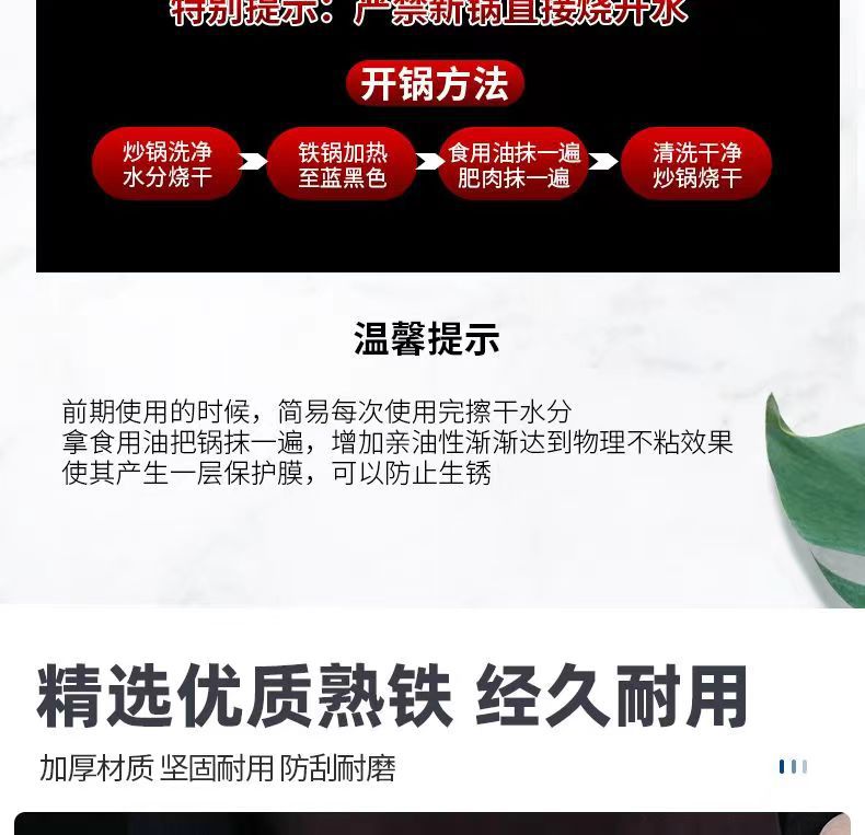 두꺼운 양귀 철 냄비, 가정용 구식 레스토랑 요리사 냄비, 화상 방지 디자인, 둥근 바닥 냄비, 코팅되지 않은 철 냄비스토어 가기
