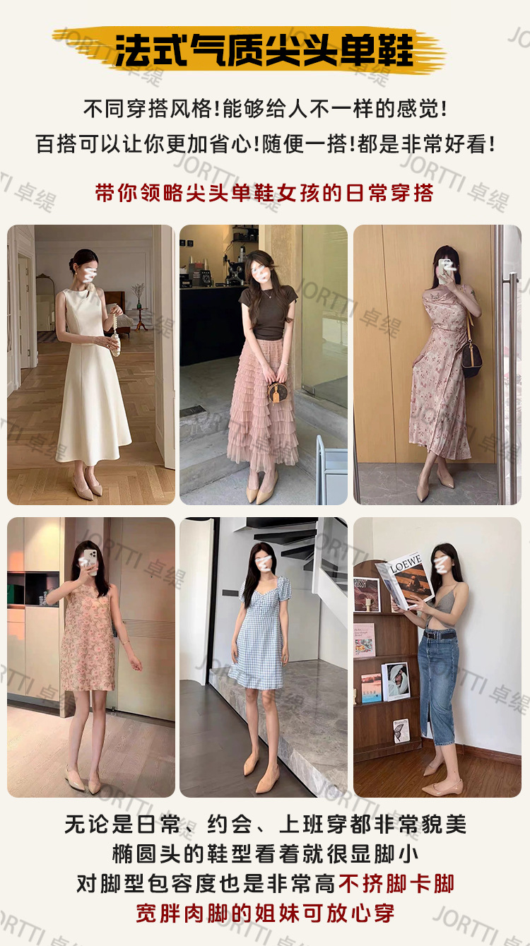 2025년 신형 프렌치 누드 컬러의 양가죽 버전, 내부 높이가 높아진 포인티드 토 플랫 바닥, 가벼운 통기성, 여성용 다용도 통근화스토어 가기