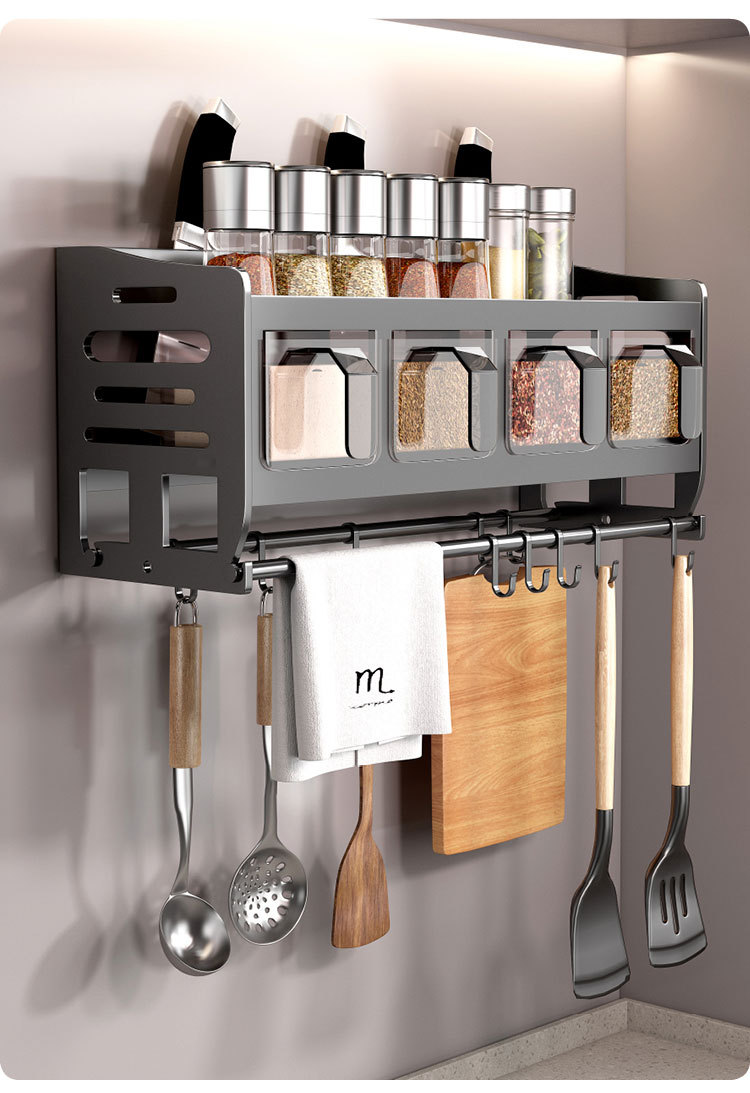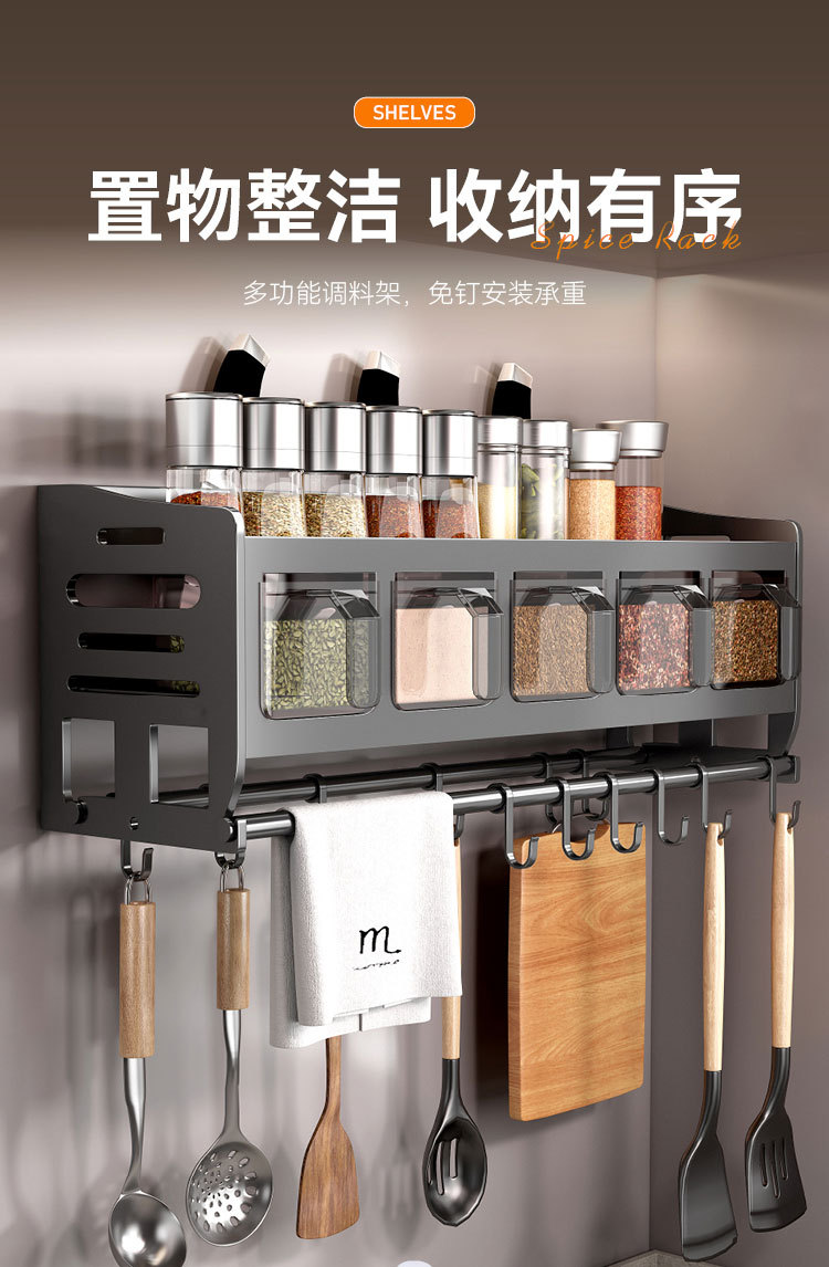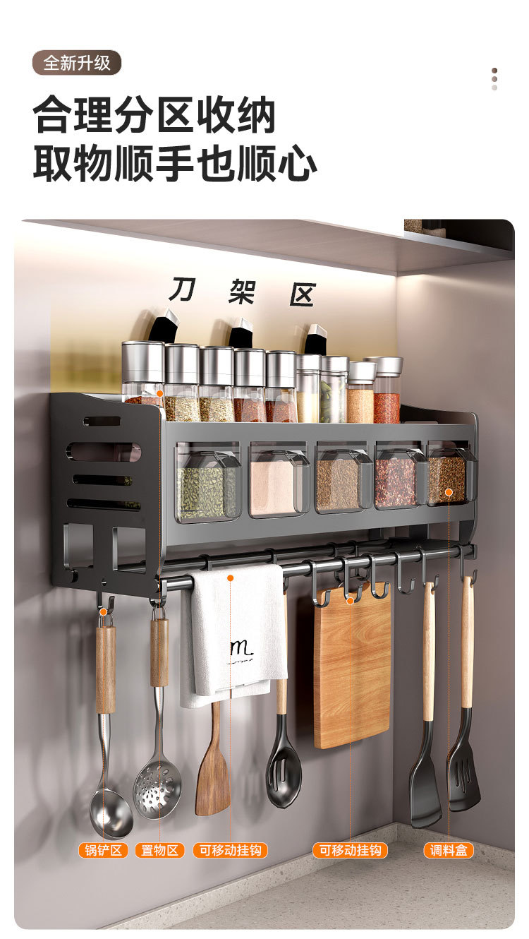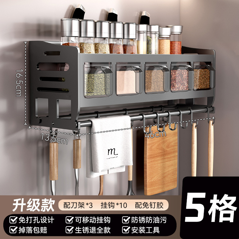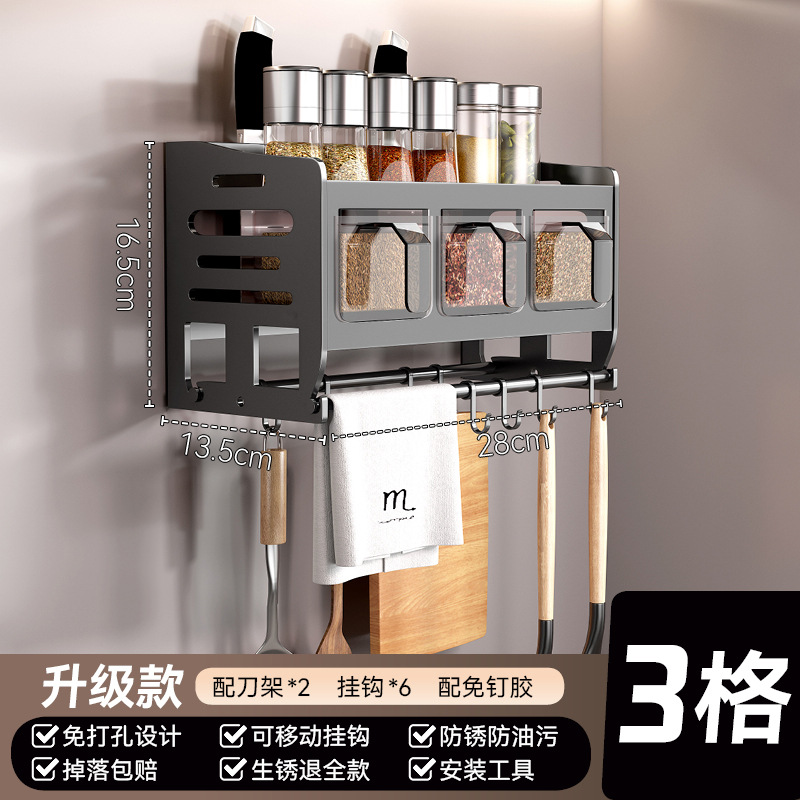 주방 벽걸이형 수납선반, 다층 벽걸이형 펀치프리 다기능 가정용 칼걸이 수납선반