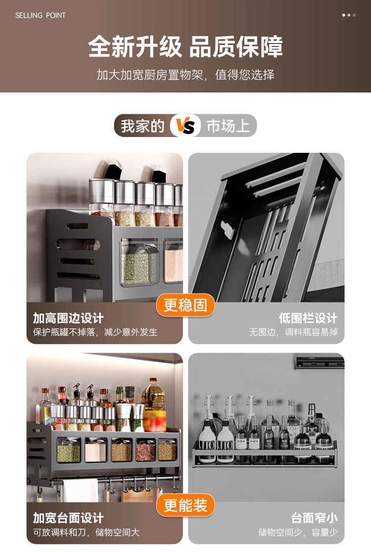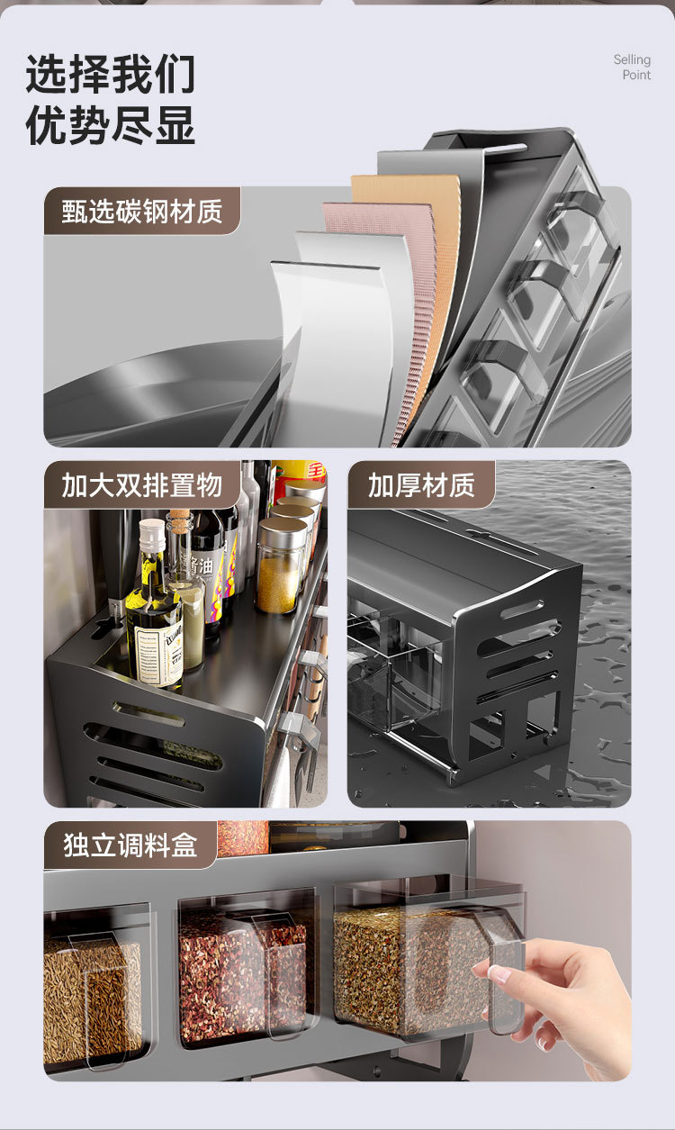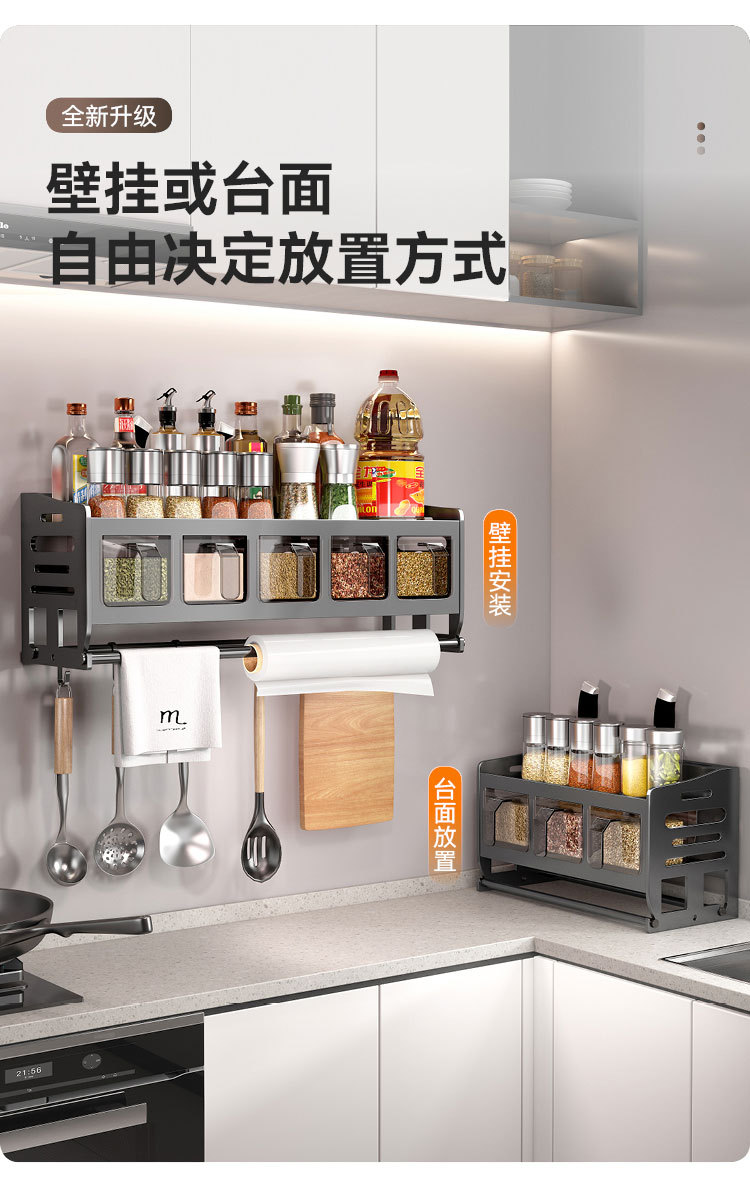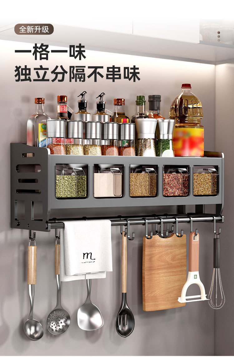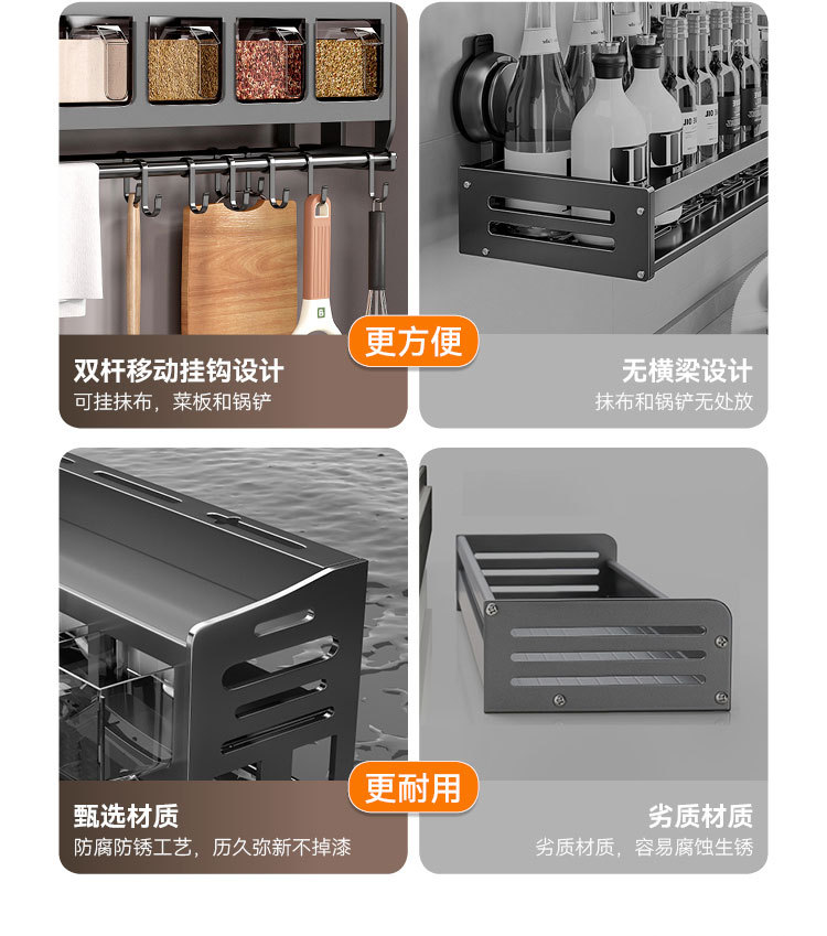 주방 벽걸이형 수납선반, 다층 벽걸이형 펀치프리 다기능 가정용 칼걸이 수납선반