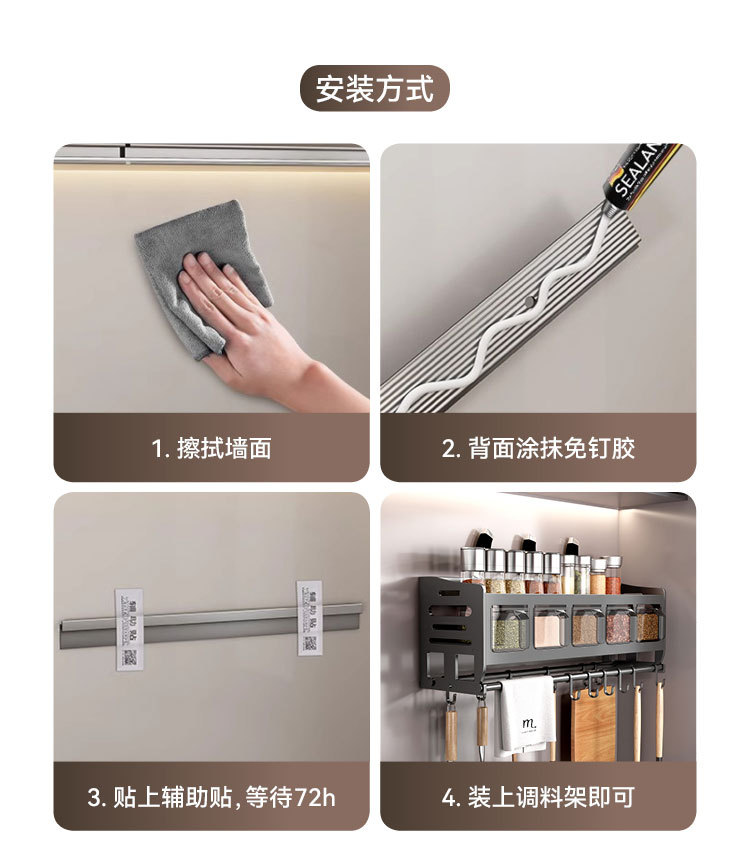 주방 벽걸이형 수납선반, 다층 벽걸이형 펀치프리 다기능 가정용 칼걸이 수납선반스토어 가기