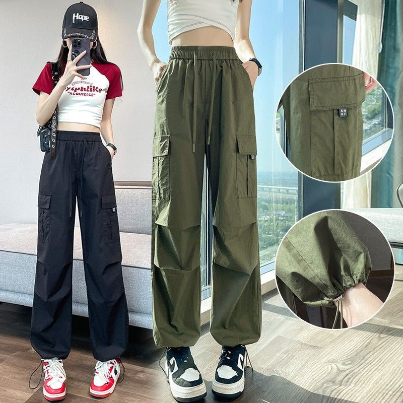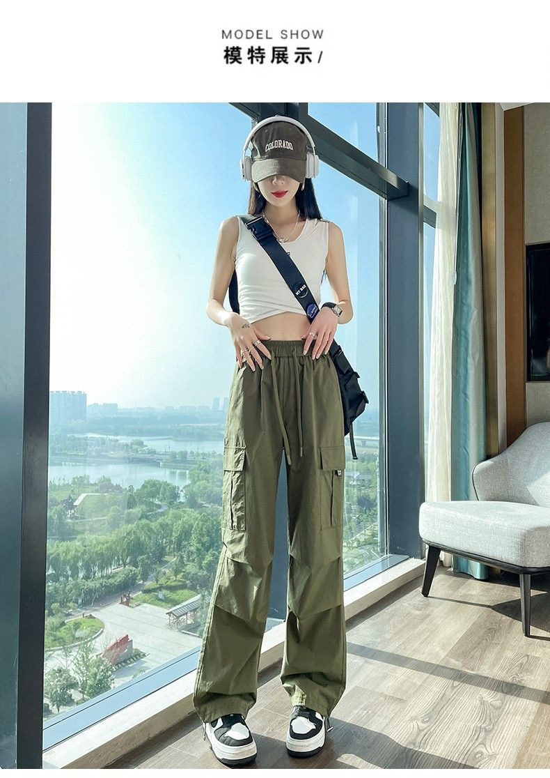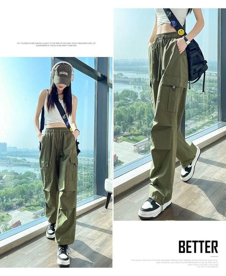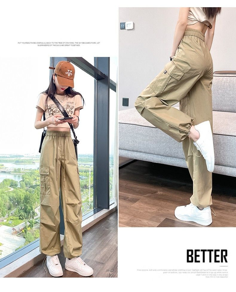 [멀티 컬러 7 사이즈] 여성용 아메리칸 오버올 여름 얇은 하이 웨이스트 스트레이트 캐주얼 속건 스포츠 하이킹 바지 블랙스토어 가기