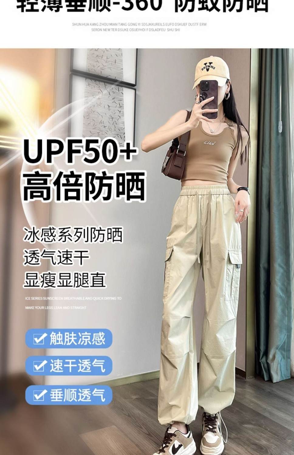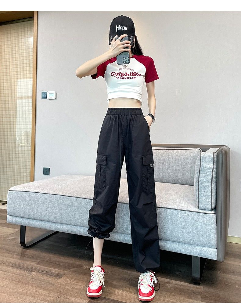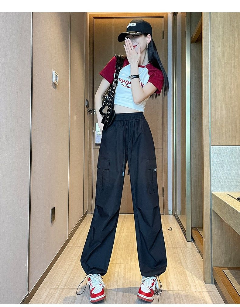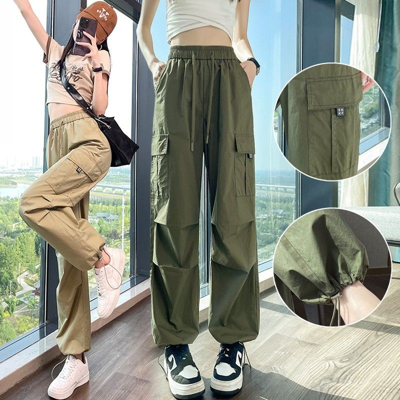 [멀티 컬러 7 사이즈] 여성용 아메리칸 오버올 여름 얇은 하이 웨이스트 스트레이트 캐주얼 속건 스포츠 하이킹 바지 블랙스토어 가기