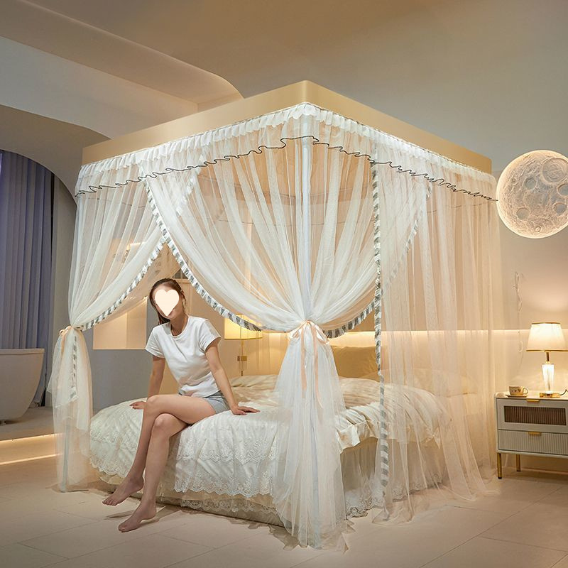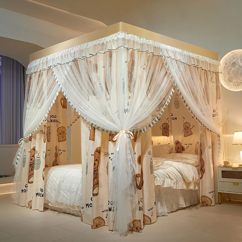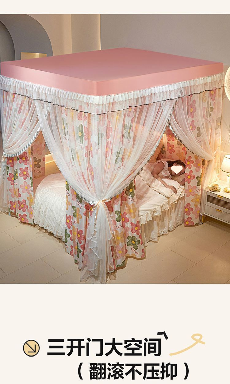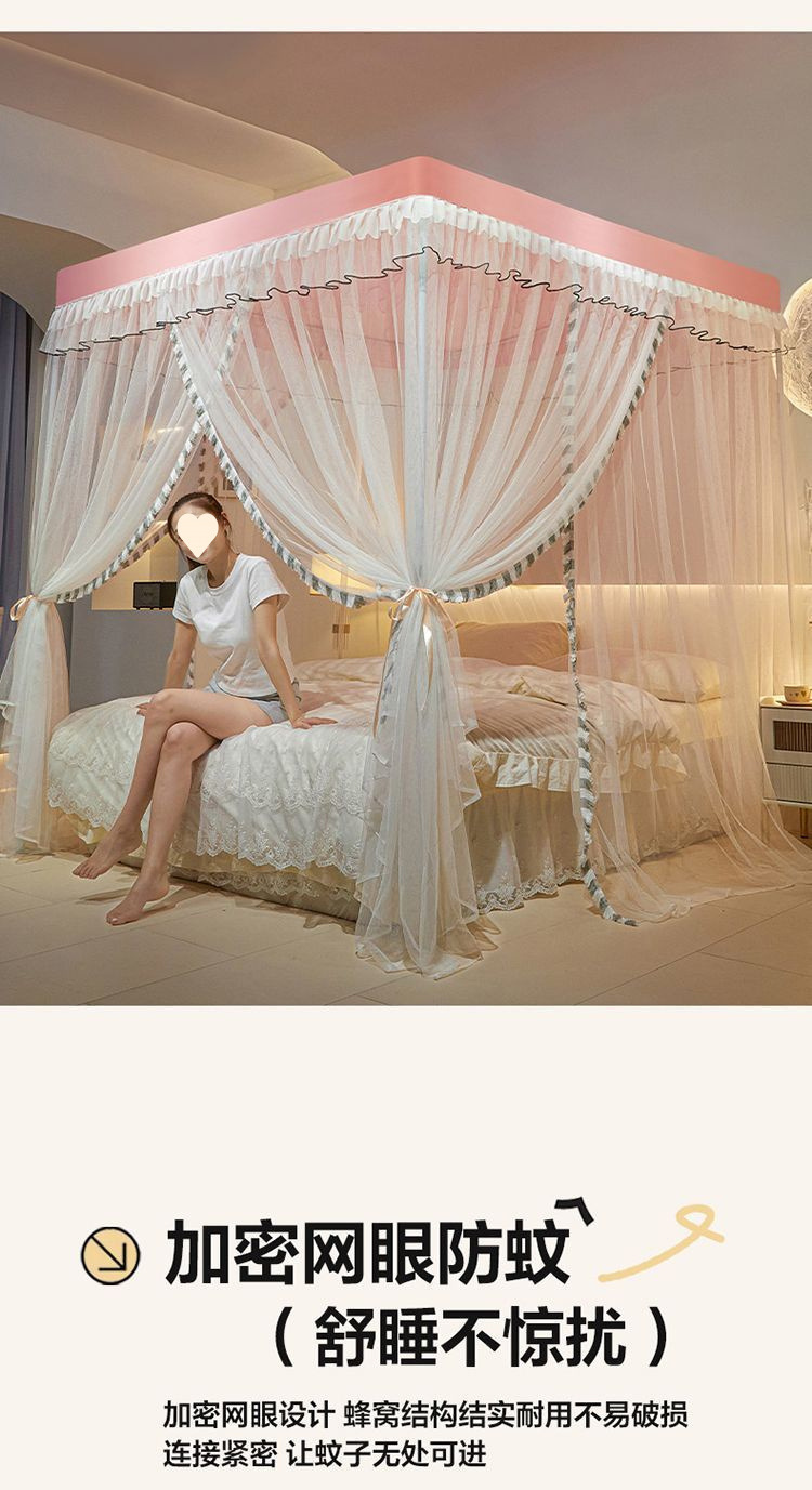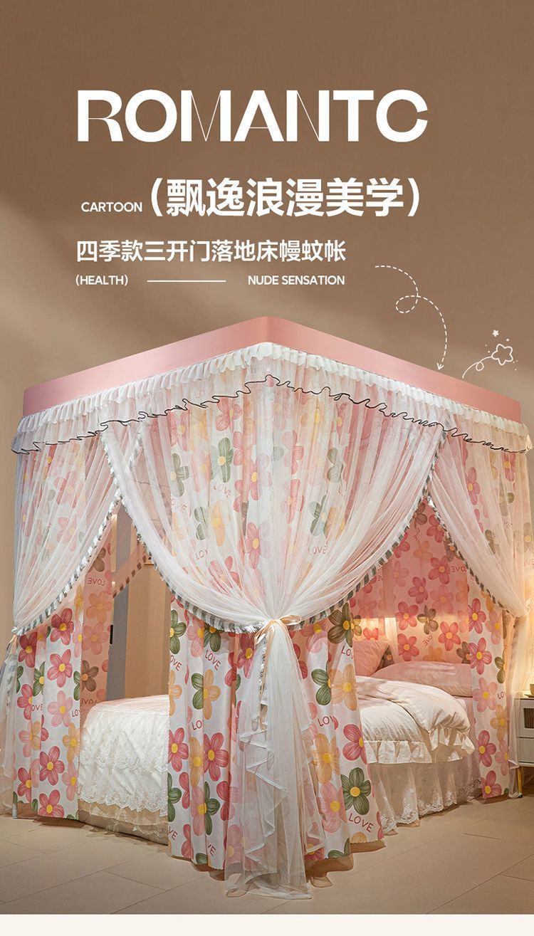 차광 궁전 차광 침대 커튼 모기장 가정용 3 도어 침대 커튼 침실 바닥 방진 및 모기 방지 모기장 더블 레이어스토어 가기
