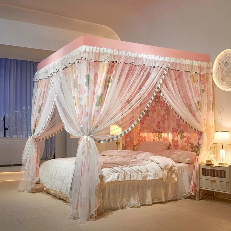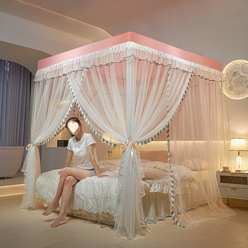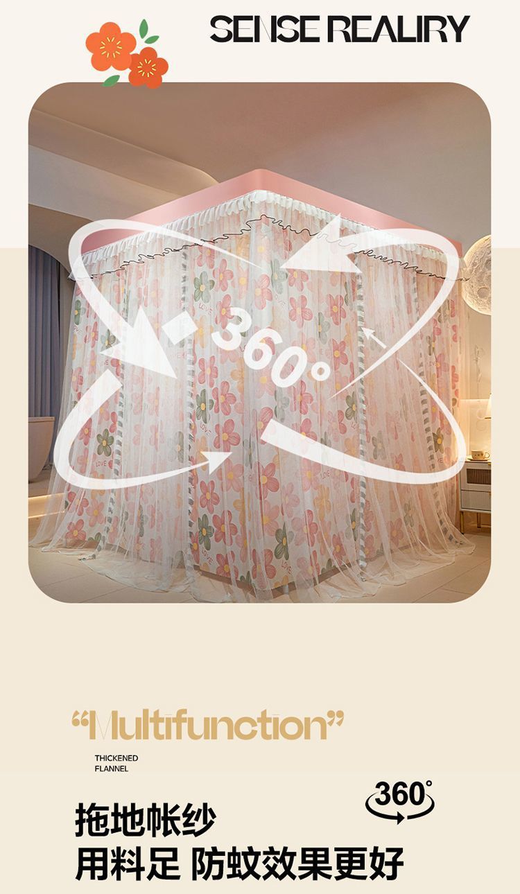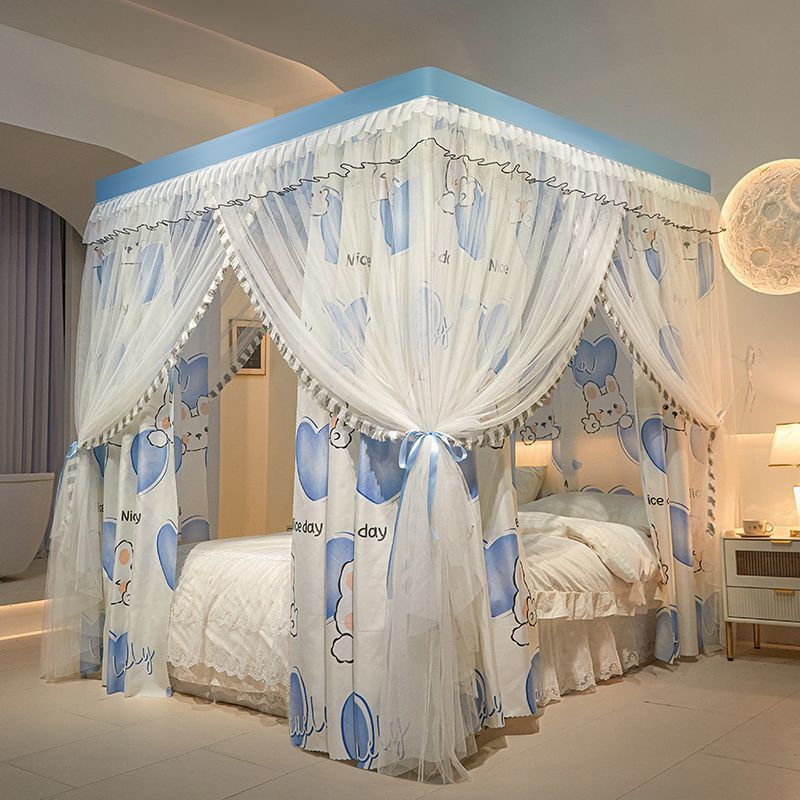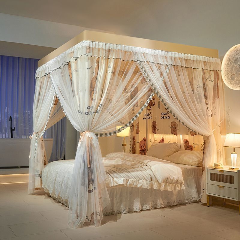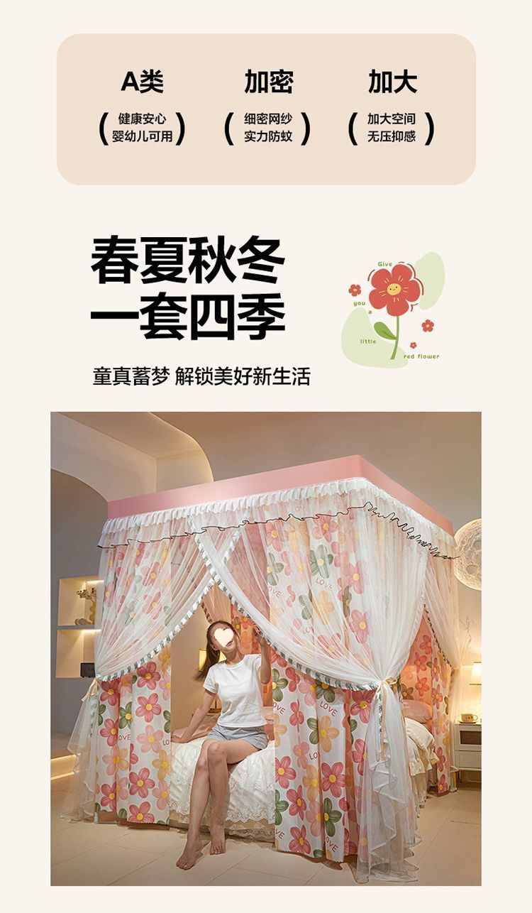 차광 궁전 차광 침대 커튼 모기장 가정용 3 도어 침대 커튼 침실 바닥 방진 및 모기 방지 모기장 더블 레이어스토어 가기