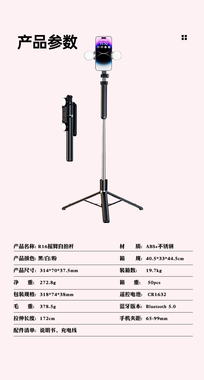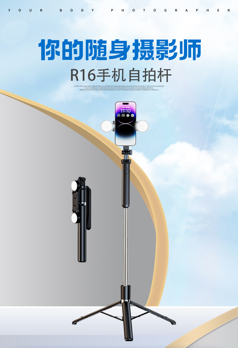 인기 있는 휴대폰 블루투스 셀카봉, 확장형 필라이트, 뷰티 라이브 방송 R16 일체형 플로어 스탠드 삼각대