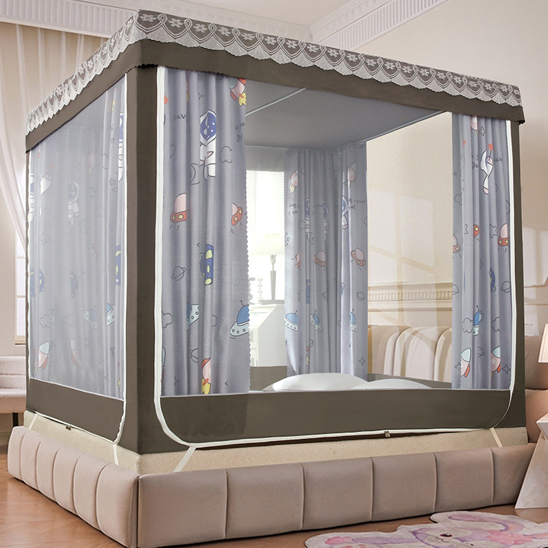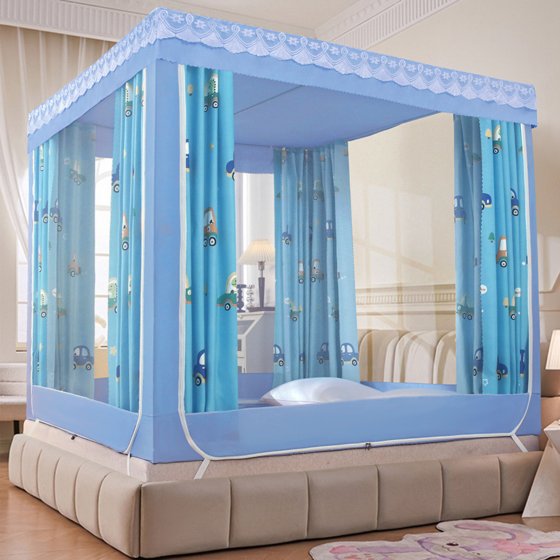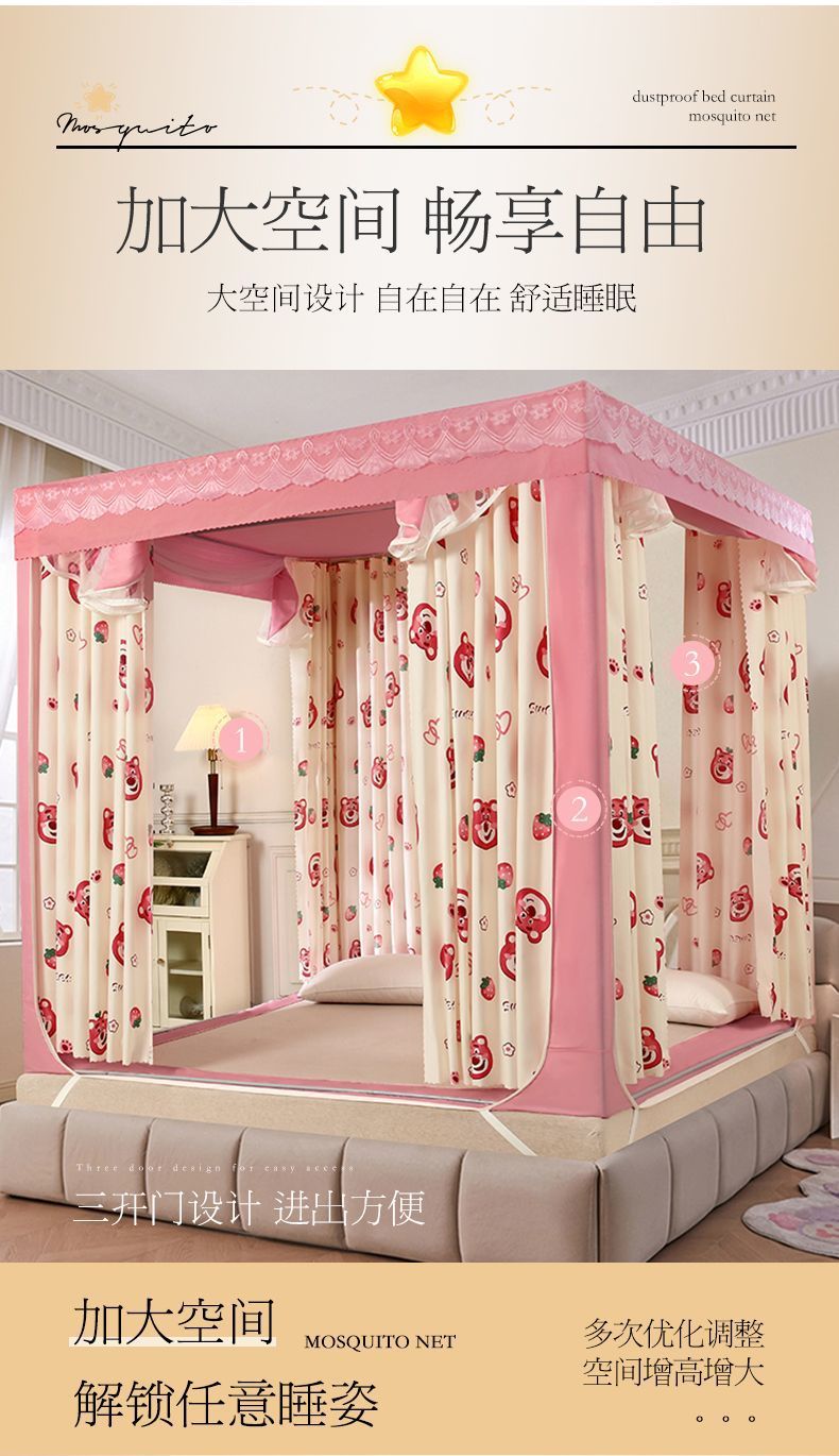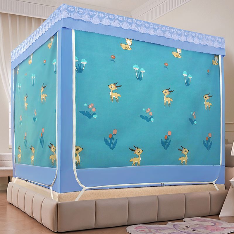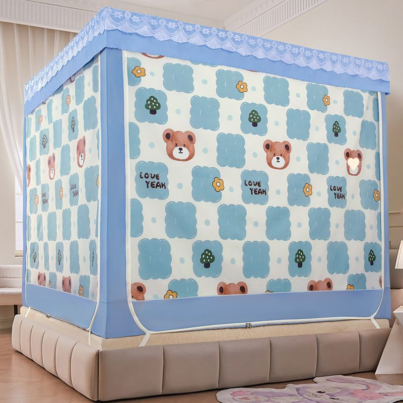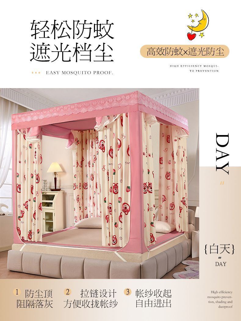 가정용 차광 침대 커튼 일체형 어린이 모기장 지퍼 3 도어 완전 밀폐형 1.8 침대 커튼 방진 탑 낙하 방지스토어 가기