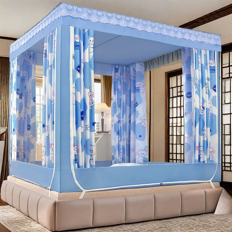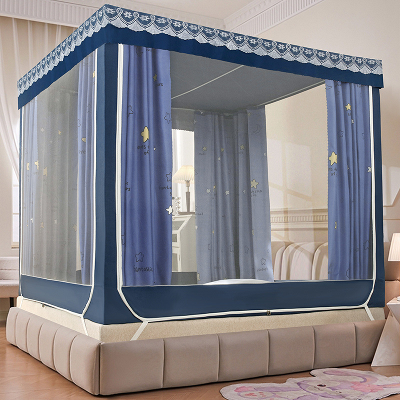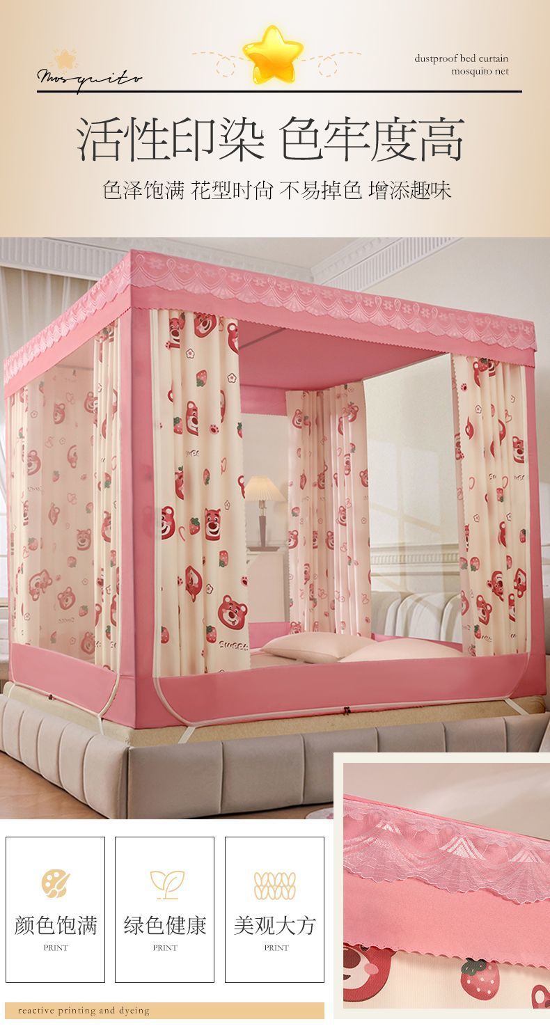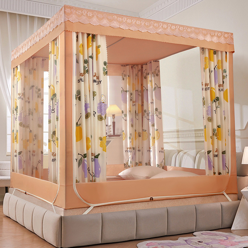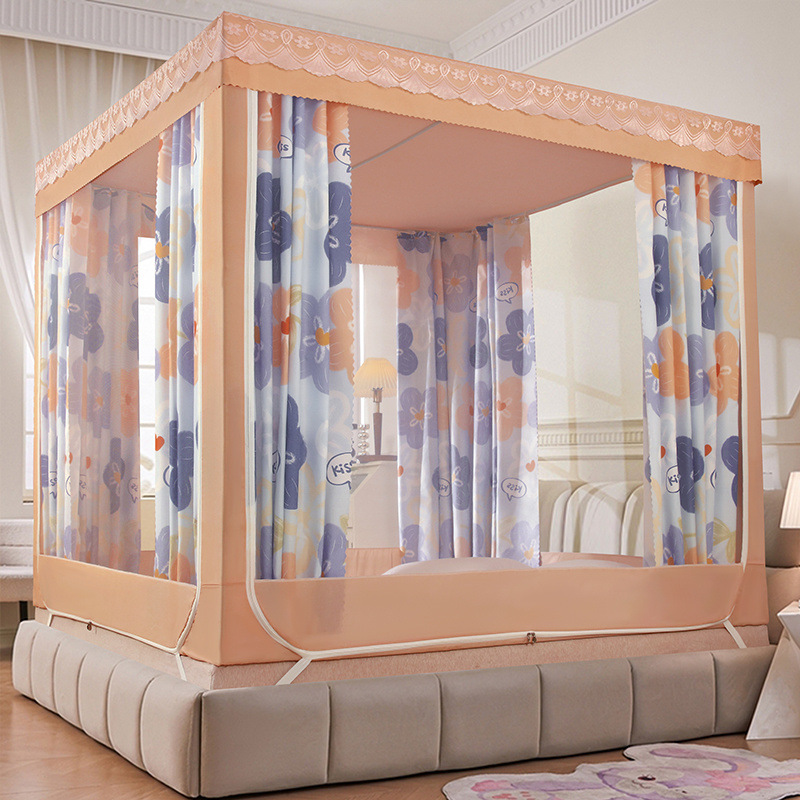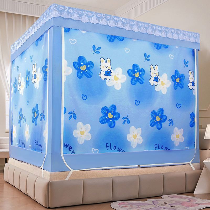 가정용 차광 침대 커튼 일체형 어린이 모기장 지퍼 3 도어 완전 밀폐형 1.8 침대 커튼 방진 탑 낙하 방지스토어 가기