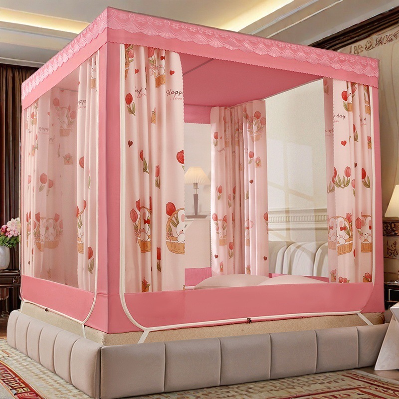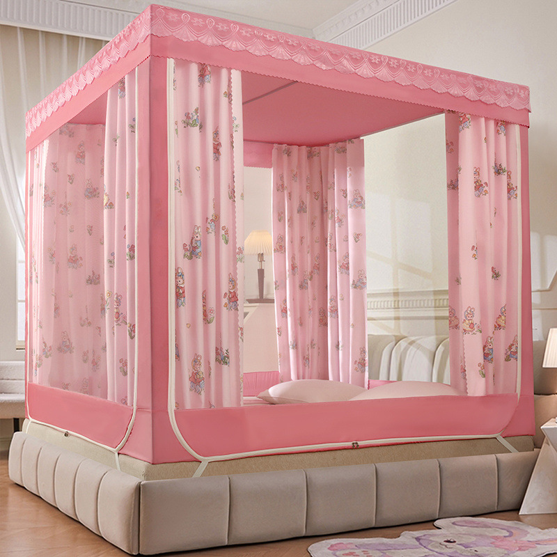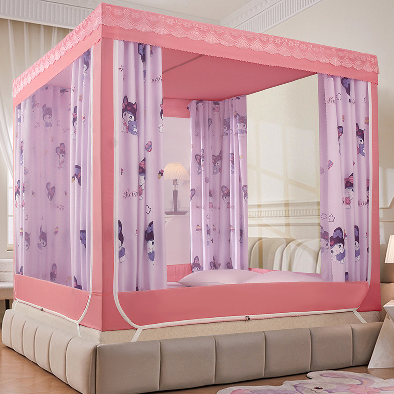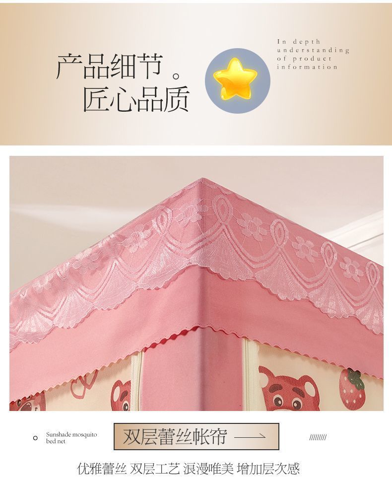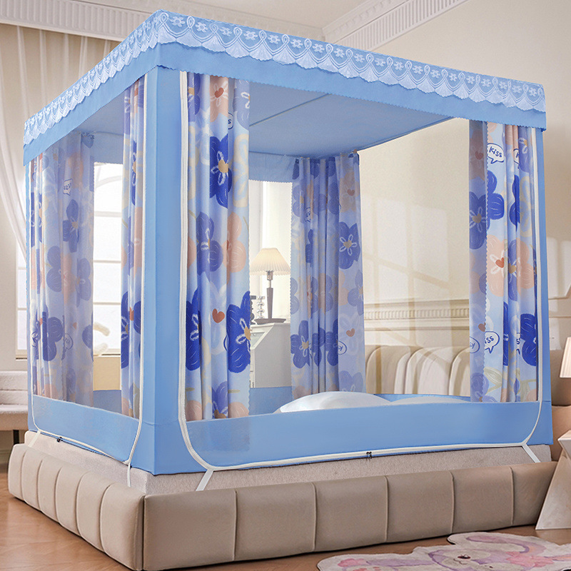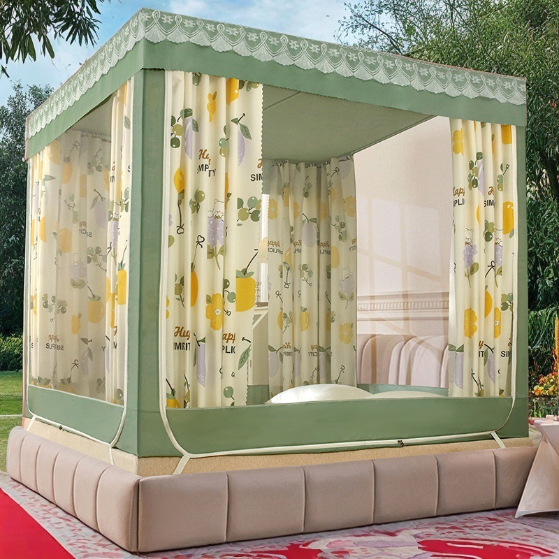 가정용 차광 침대 커튼 일체형 어린이 모기장 지퍼 3 도어 완전 밀폐형 1.8 침대 커튼 방진 탑 낙하 방지스토어 가기
