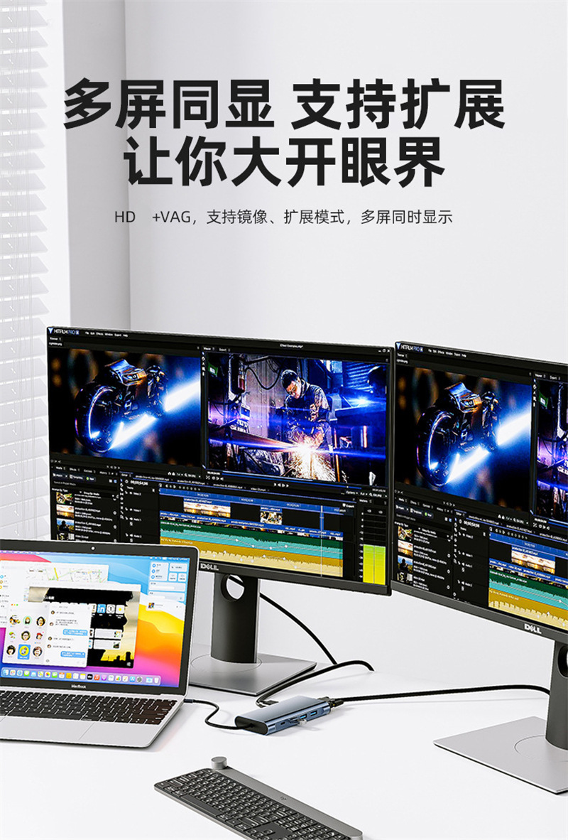 支持高速数据传输(比如U盘秒传文件),还能给设备反向充电,边用拓展坞边补电,不用慌'电量告急