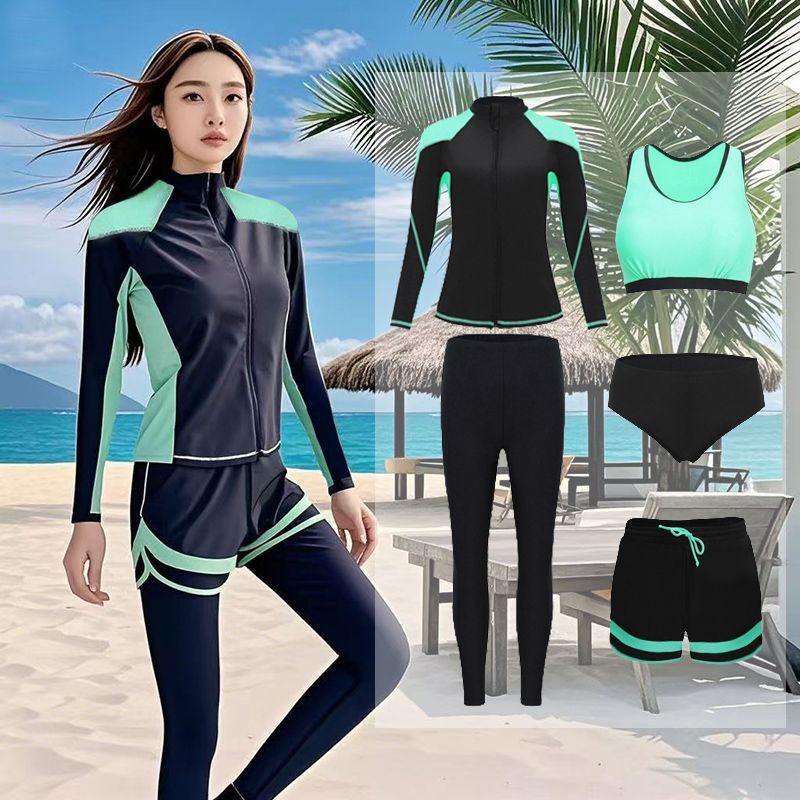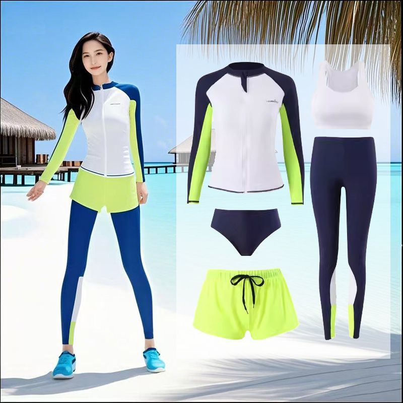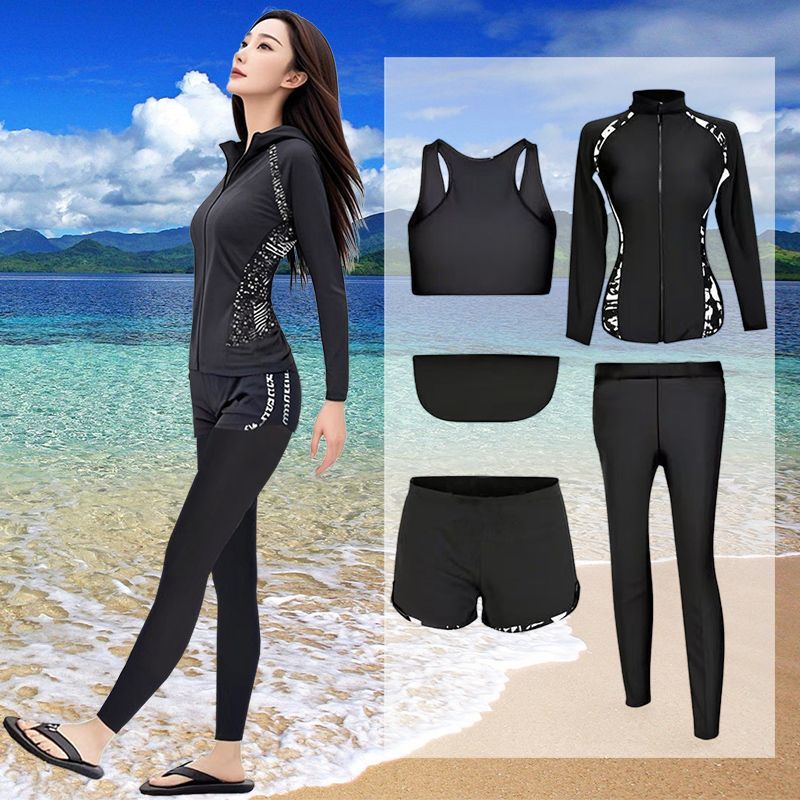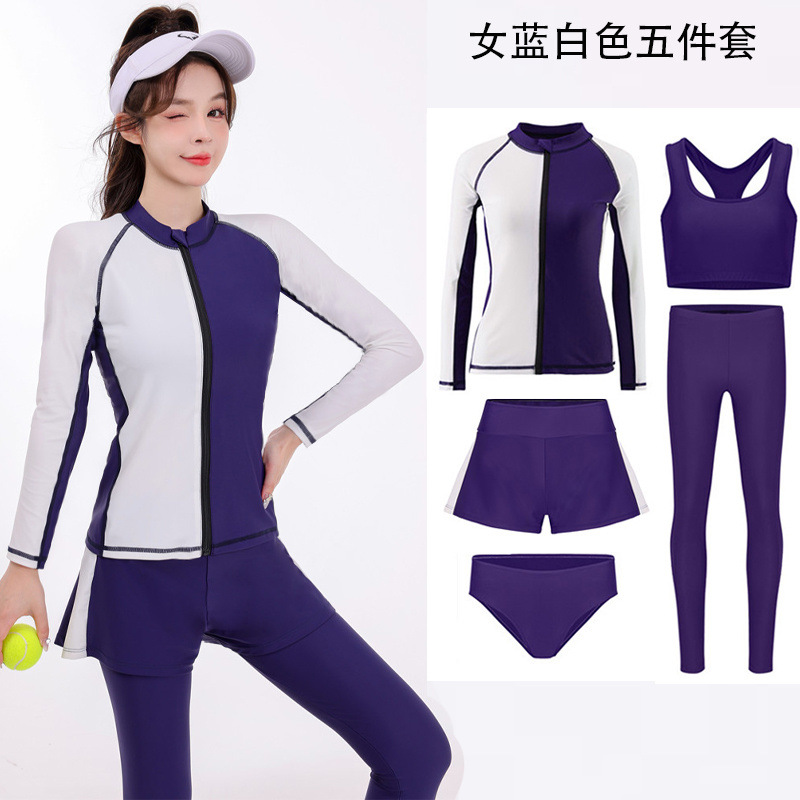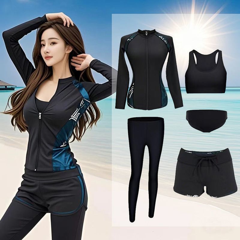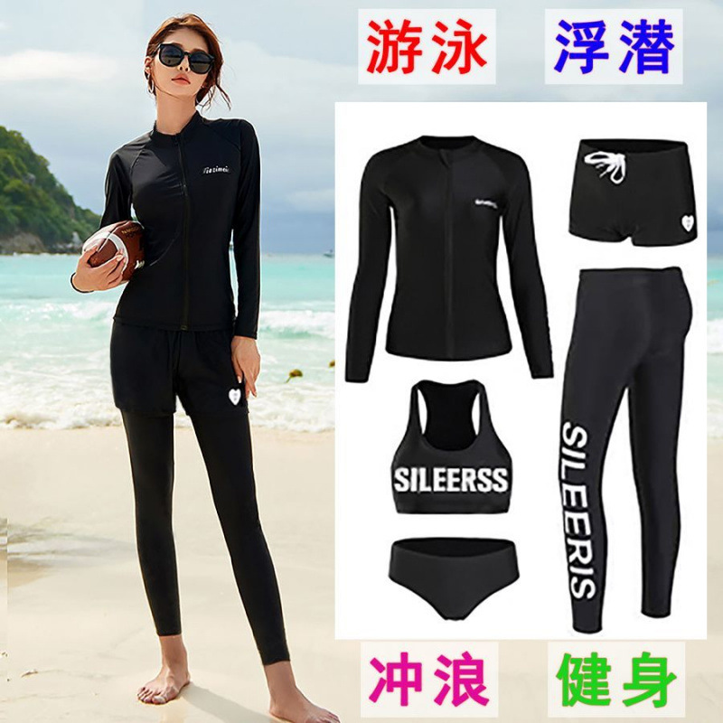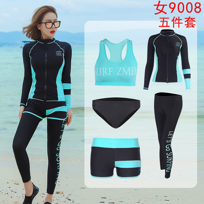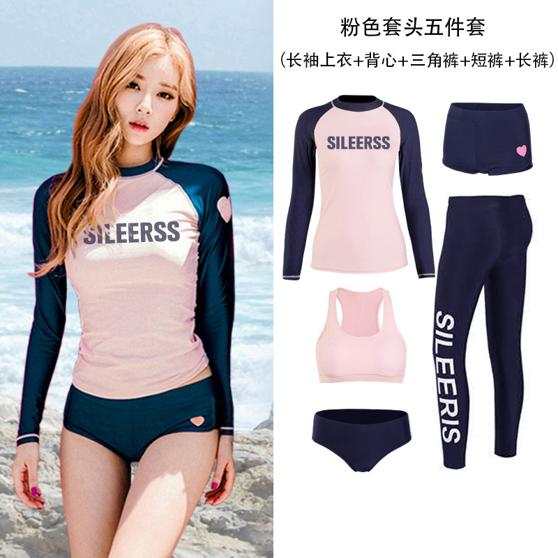 다이빙 슈트 속건성 지퍼 해파리 슈트 여성 스플릿 긴팔 수영복 서핑 슈트 핑크 5 피스 슈트 공장 크로스 보더
