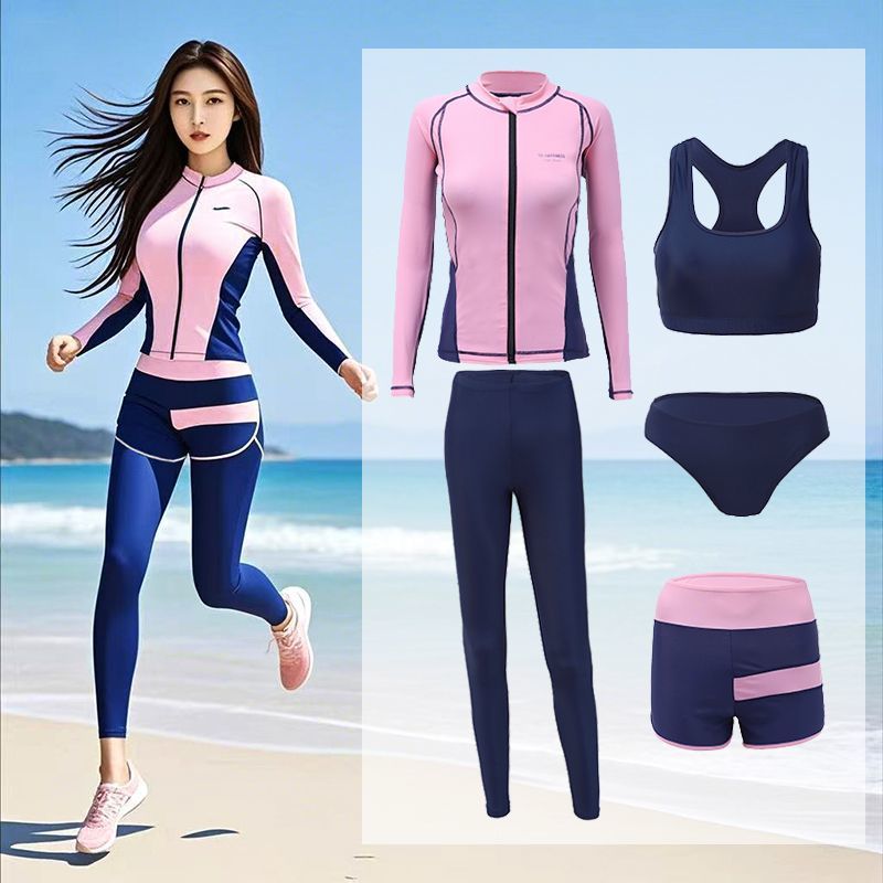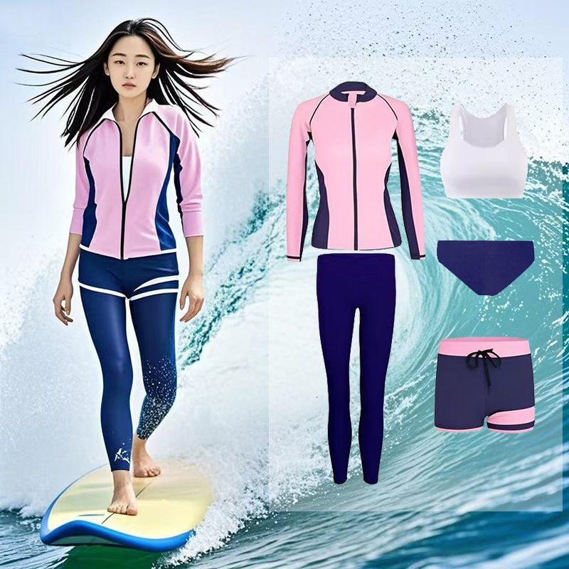 다이빙 슈트 속건성 지퍼 해파리 슈트 여성 스플릿 긴팔 수영복 서핑 슈트 핑크 5 피스 슈트 공장 크로스 보더스토어 가기