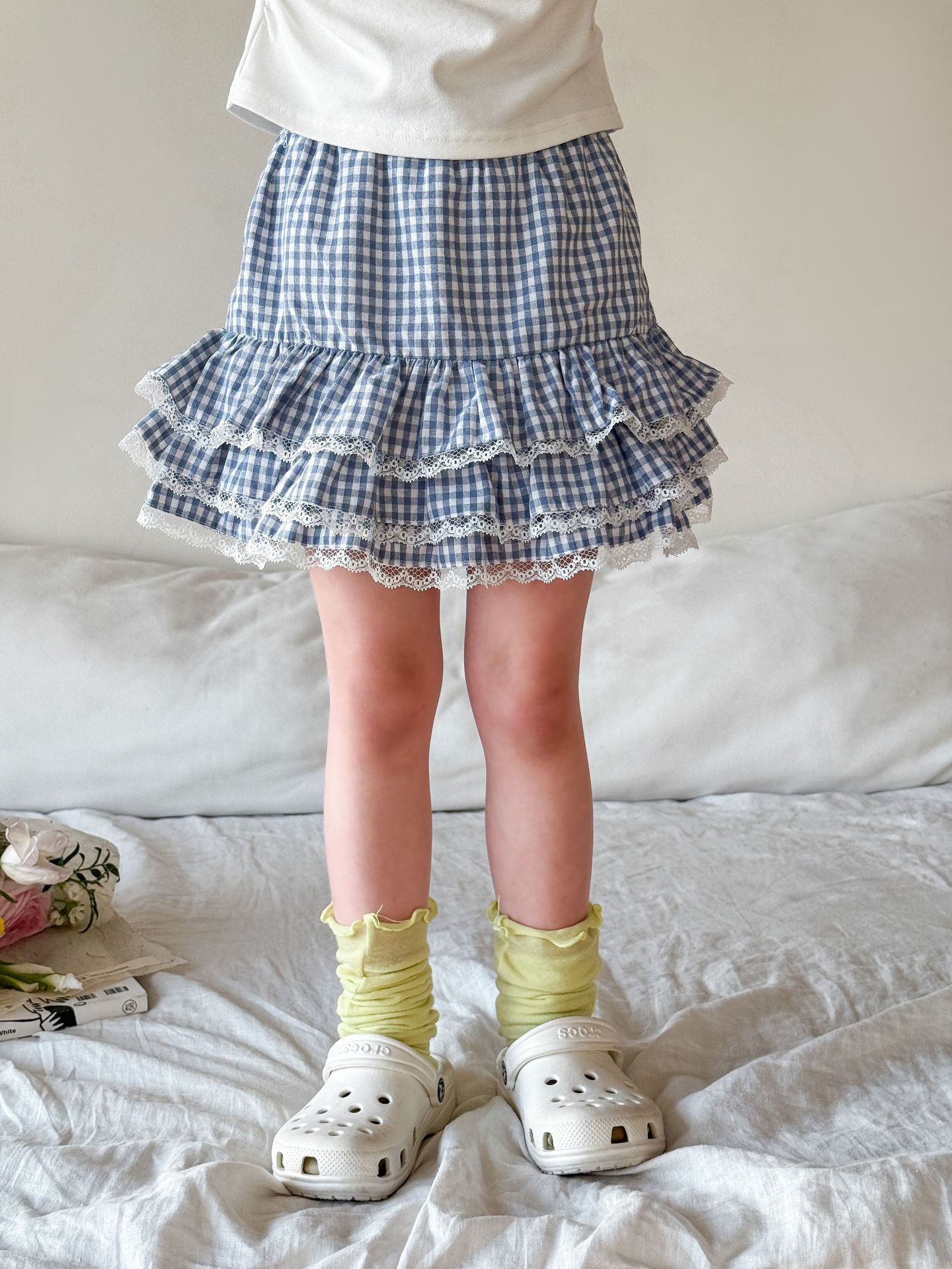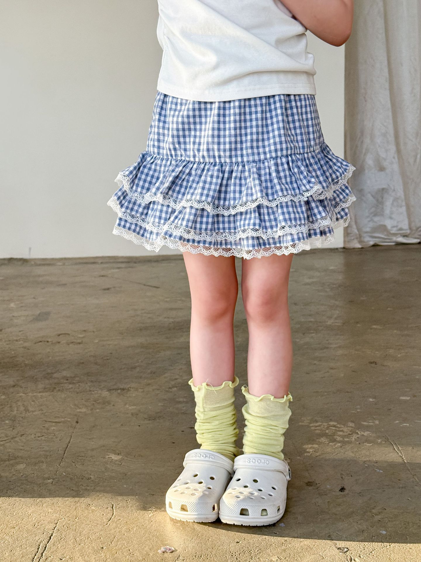 • 레이어드 레이스 체크 스커트