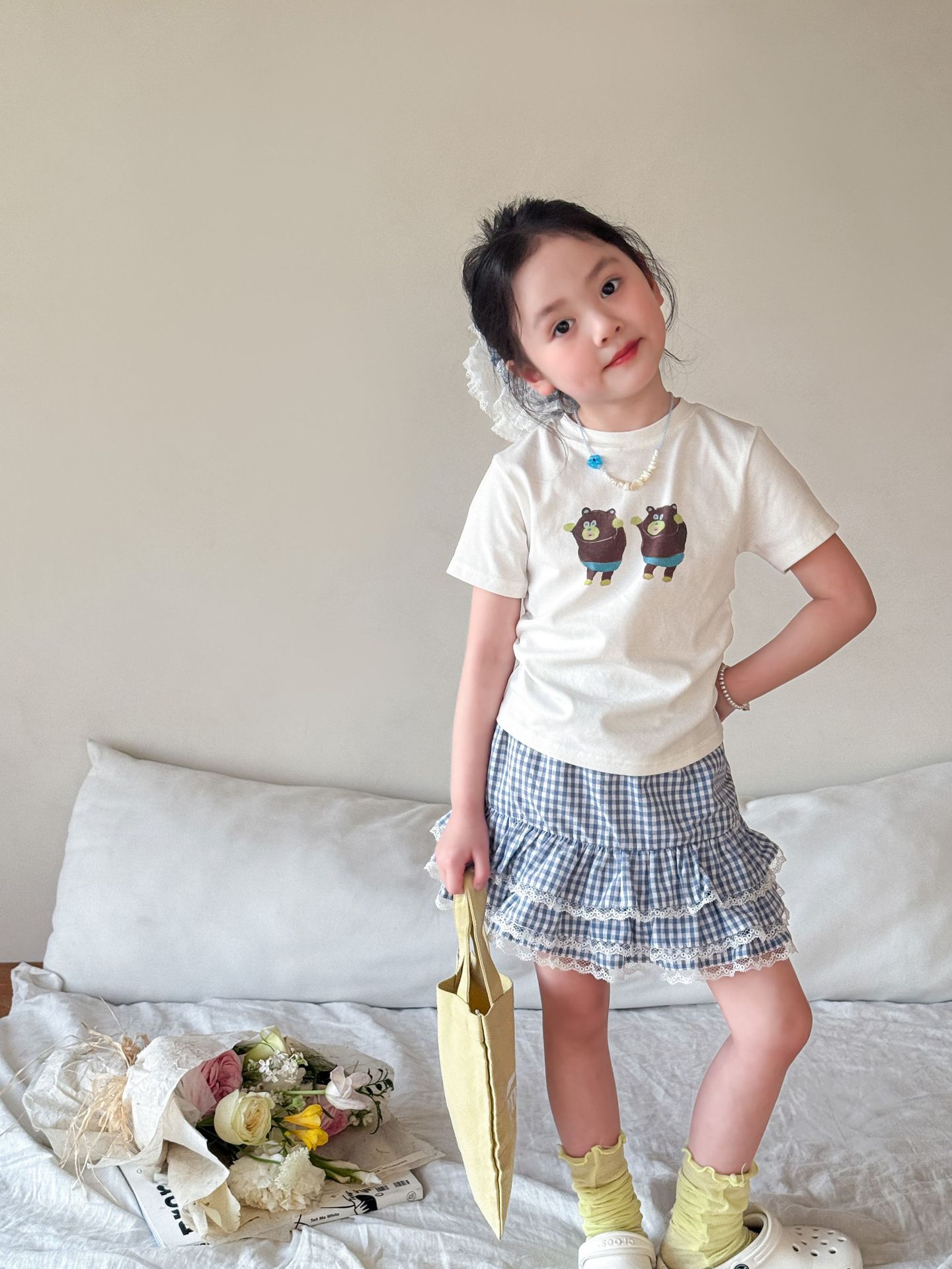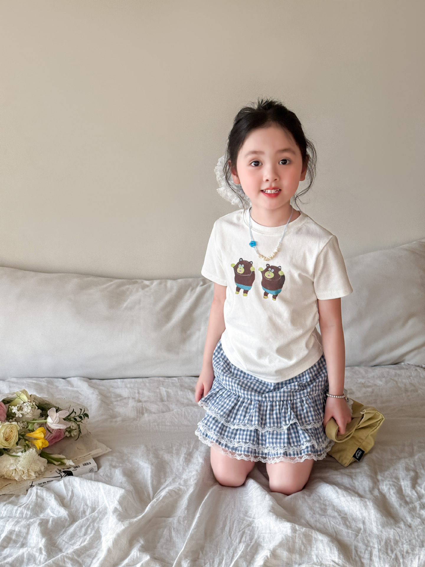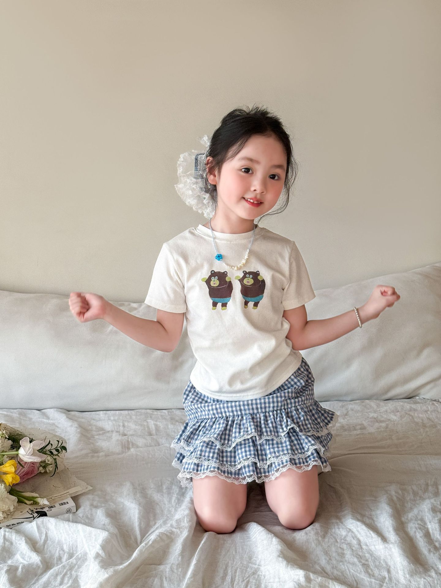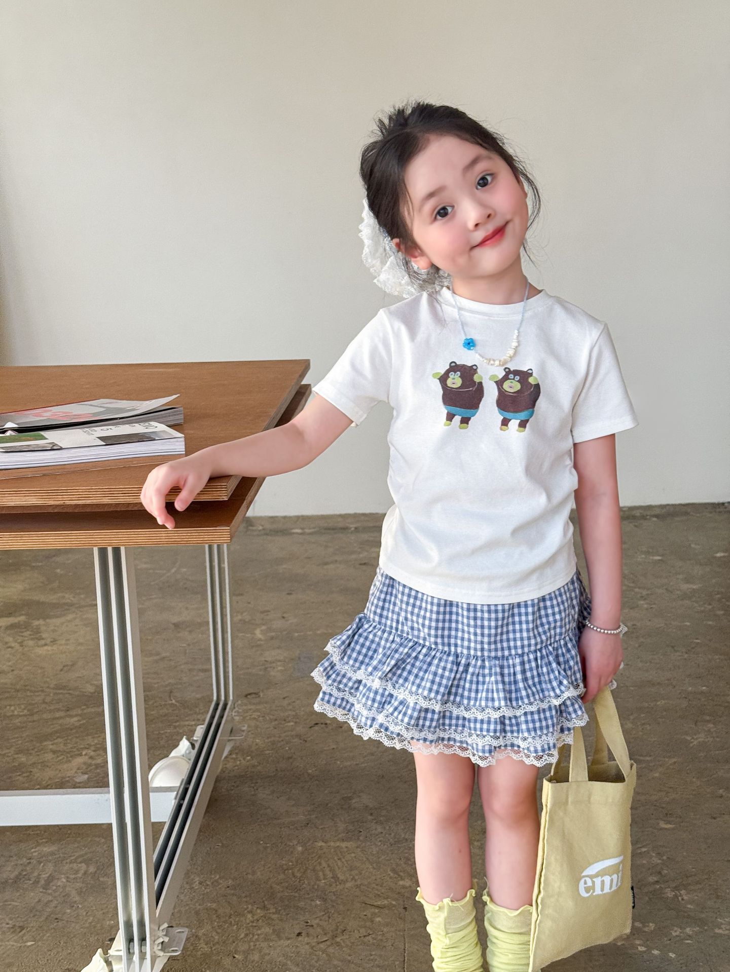 Weimu 아동복 소녀 여름 정장 2025 새로운 얇은 어린이 한국 스타일 반팔 티셔츠 스커트 카테고리 아기 옷스토어 가기
