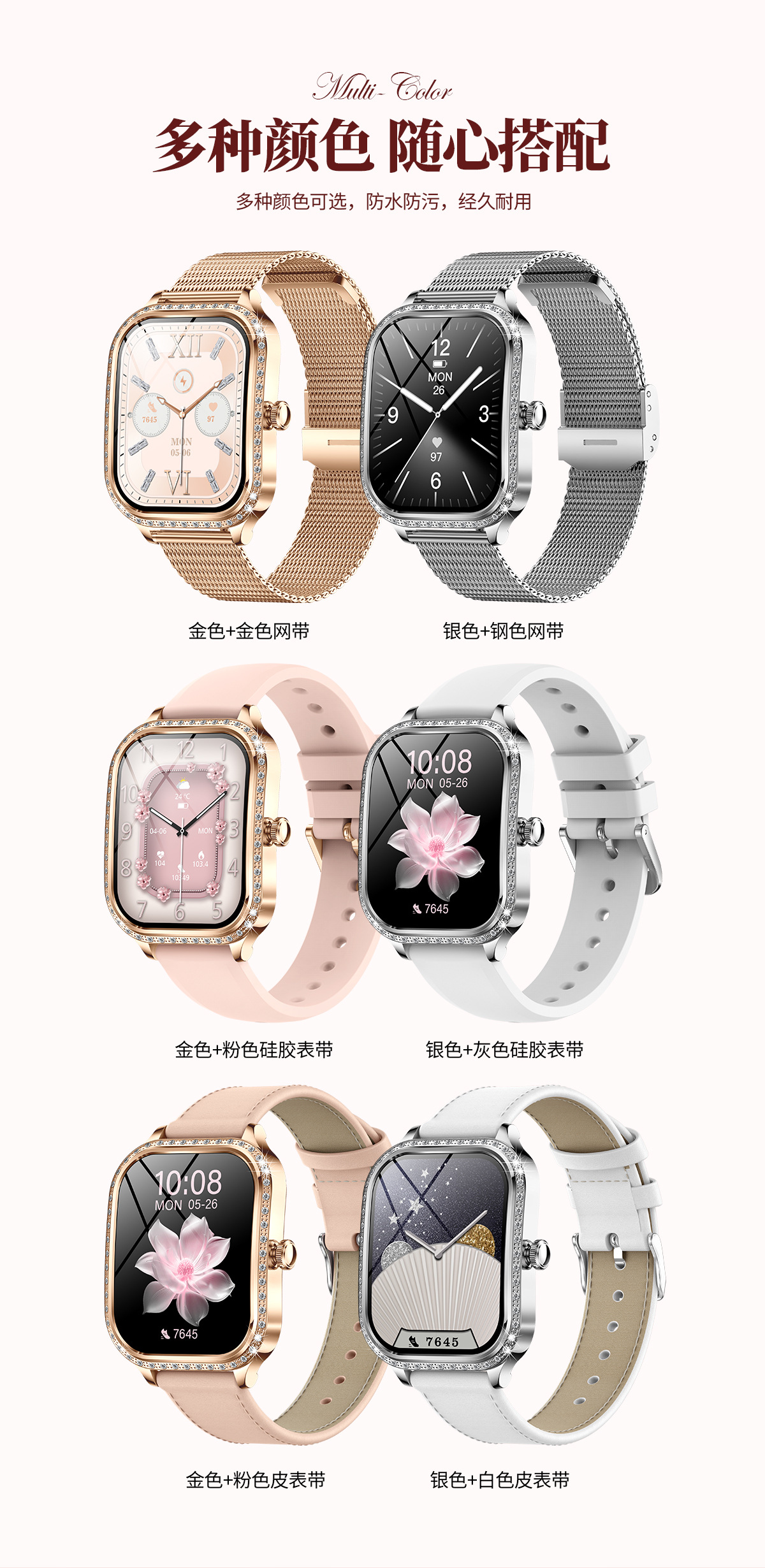 MK88 국경 간 신제품 1.75 사각 스크린 여성용 통화 스마트 시계 패션 스포츠 여성용 시계 심박수 혈압 혈액 산소