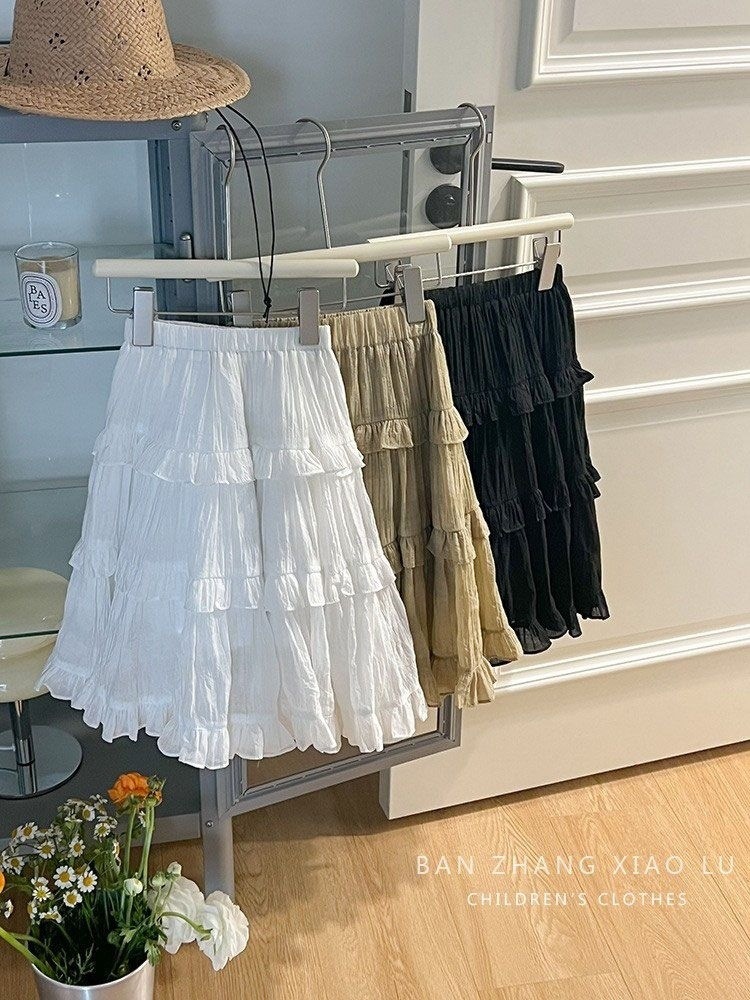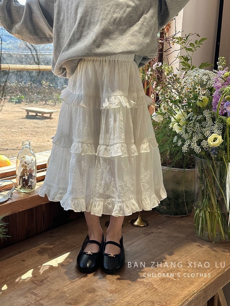 여자 달콤한 프릴 스커트 2025 봄과 여름 어린이 케이크 스커트 어린 소녀 중간 길이 서양식 스커트