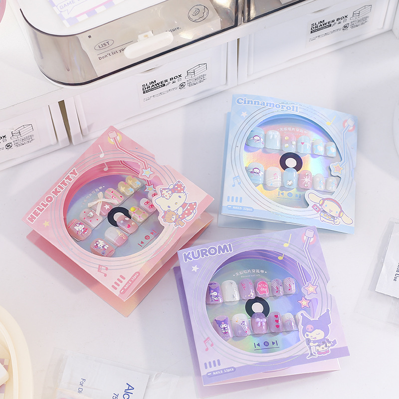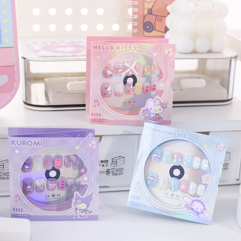 산리오 레코드 웨어러블 네일 귀여운 어린이 웨어러블 네일 일본식 인스 스타일 쿠로미 네일 패치