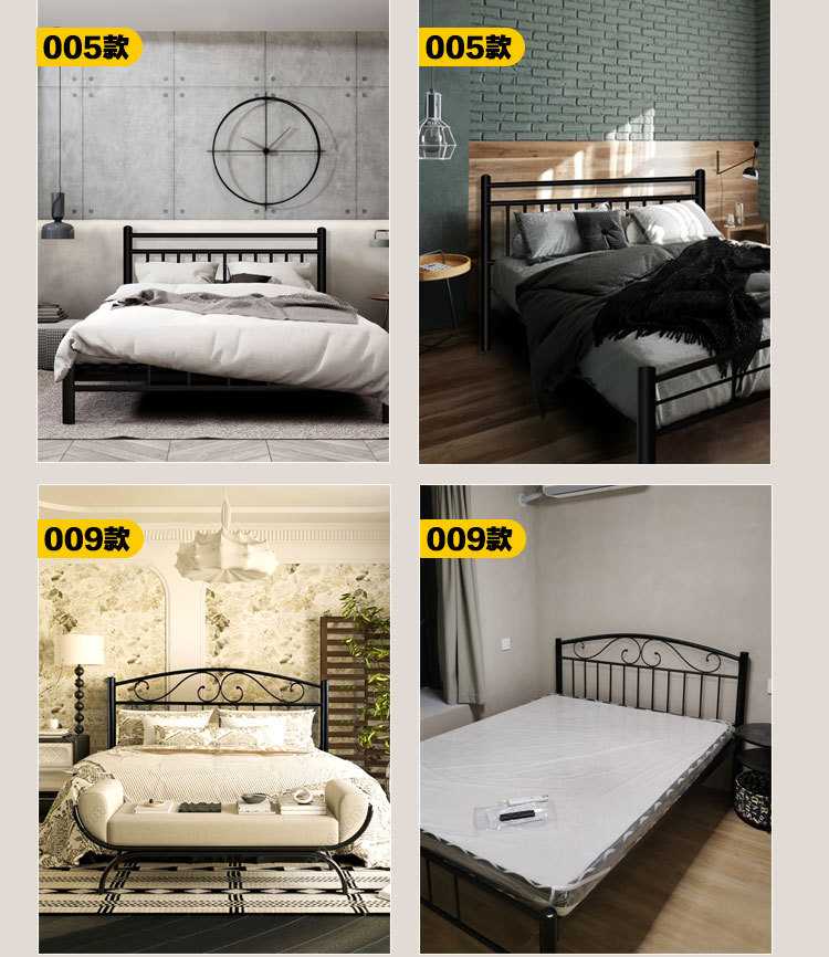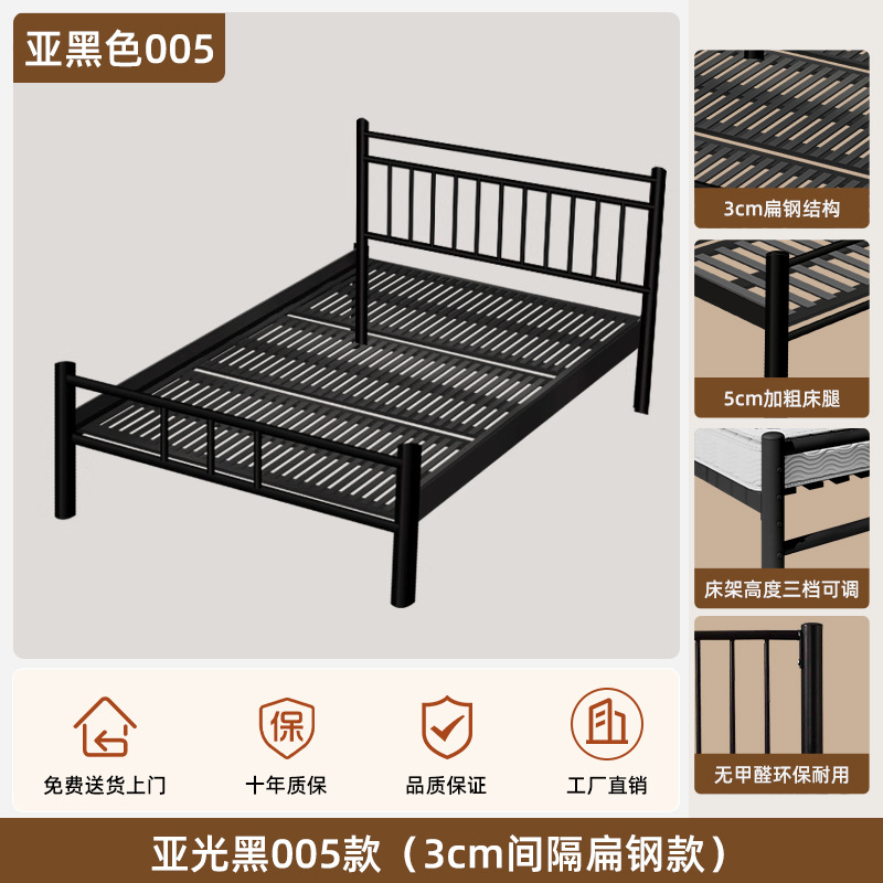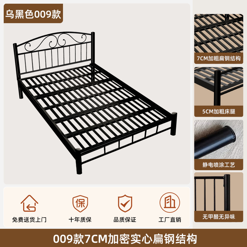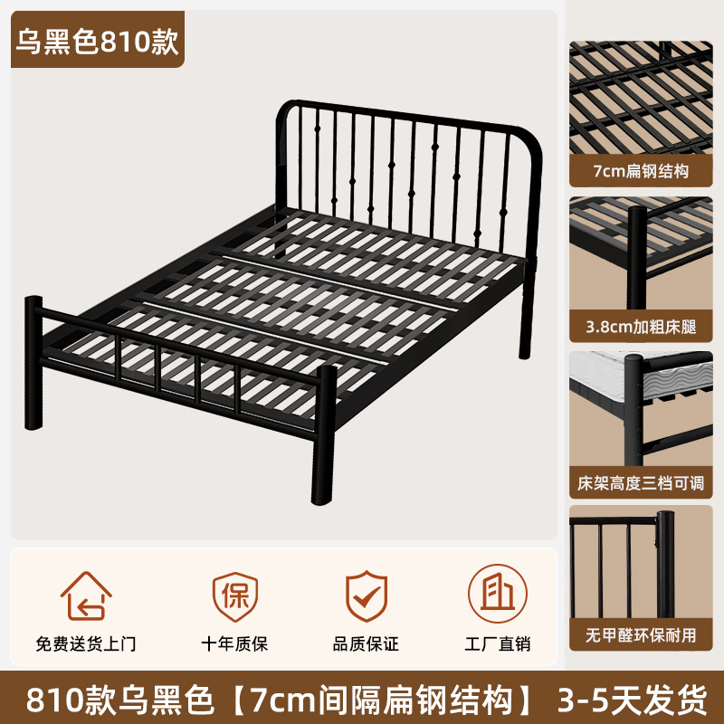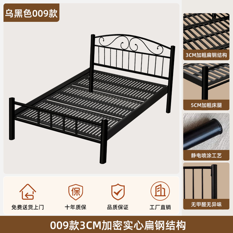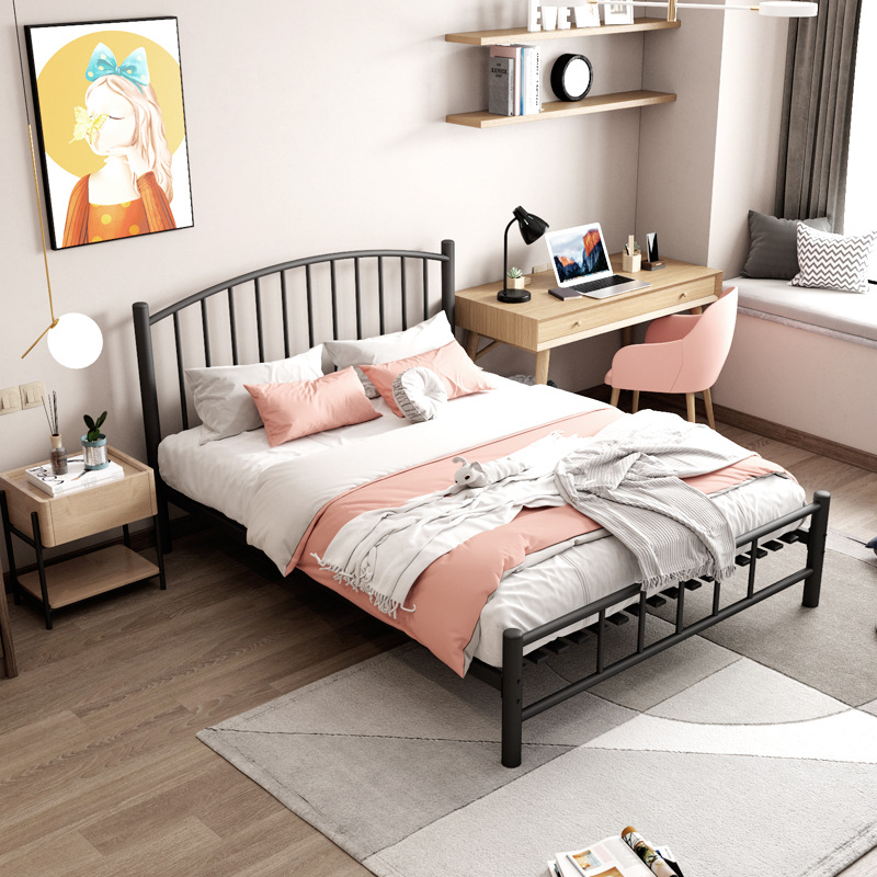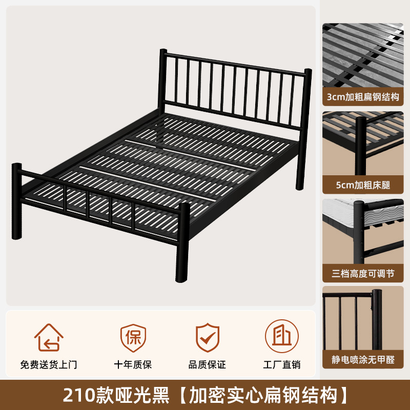 현대적인 미니멀리스트 블랙 철제 프레임 침대 B&B 싱글 침대 라이트 럭셔리 철제 침대 레트로 더블 침대 암호화 침대 p^
