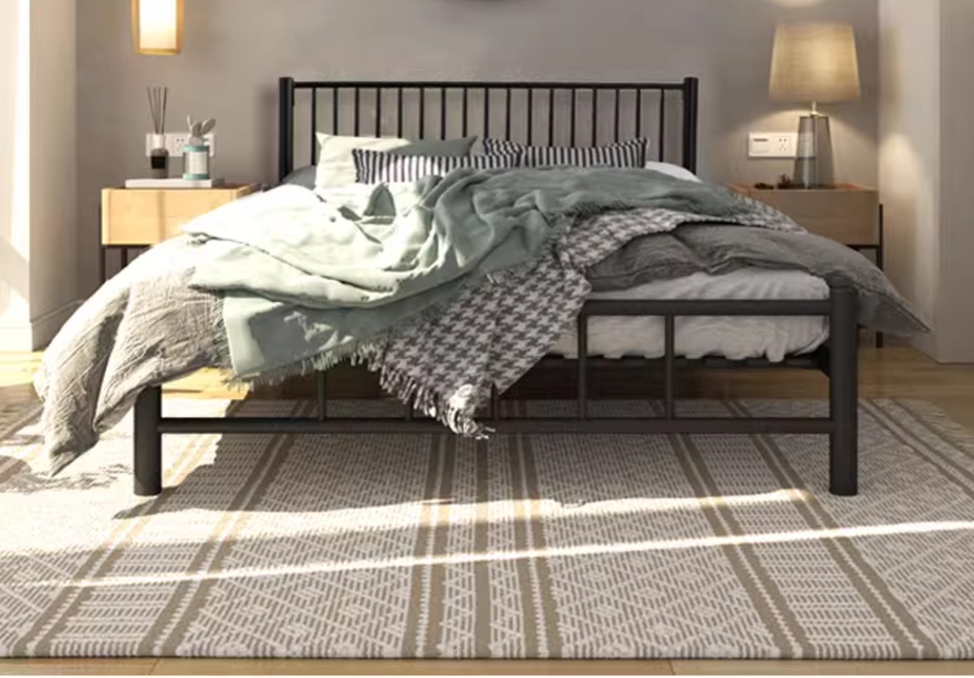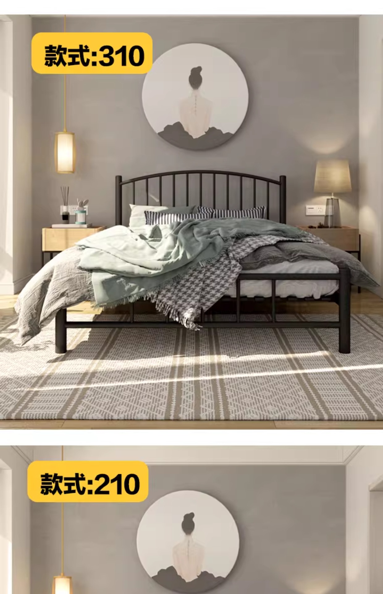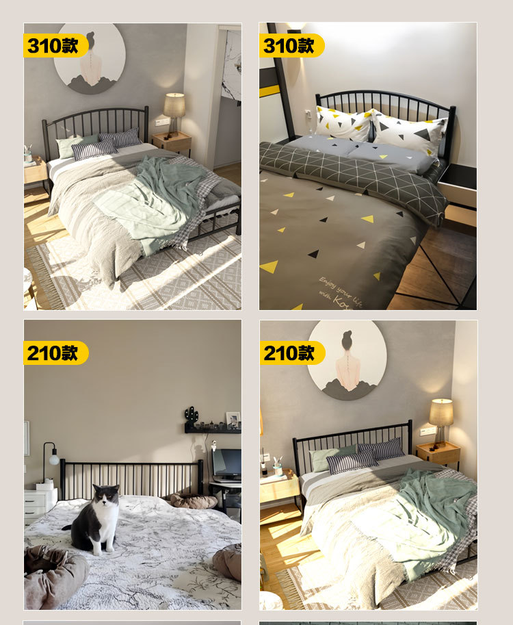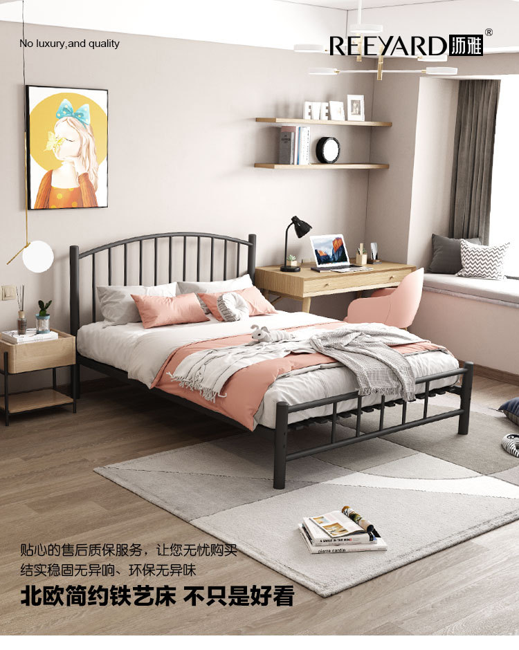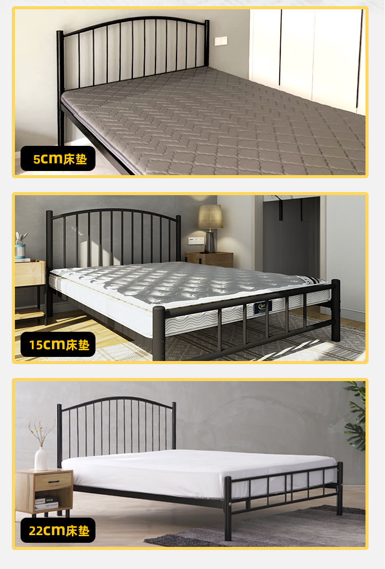 현대적인 미니멀리스트 블랙 철제 프레임 침대 B&B 싱글 침대 라이트 럭셔리 철제 침대 레트로 더블 침대 암호화 침대 p^