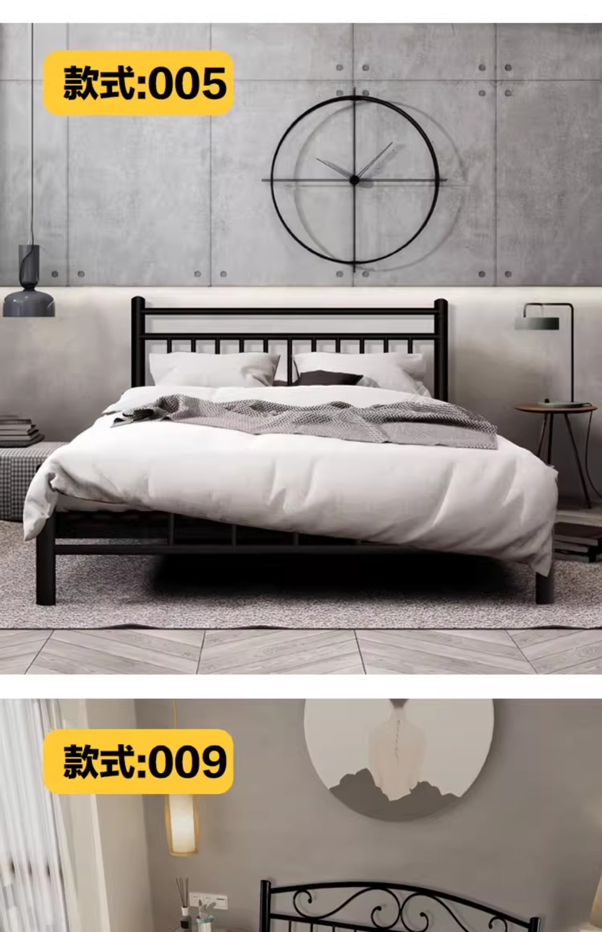 현대적인 미니멀리스트 블랙 철제 프레임 침대 B&B 싱글 침대 라이트 럭셔리 철제 침대 레트로 더블 침대 암호화 침대 p^스토어 가기