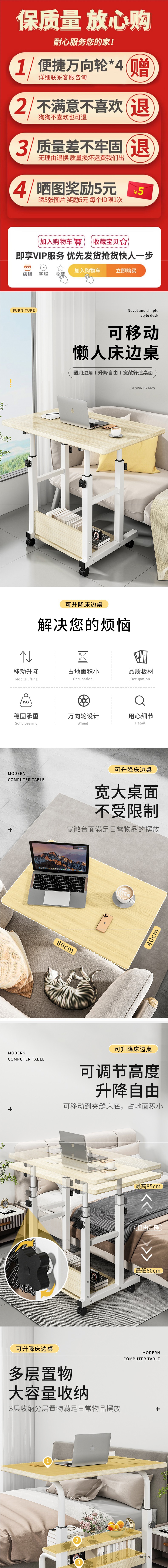 침대 옆 테이블 이동식 간단한 작은 테이블 침실 홈 학생 책상 간단한 리프팅 기숙사 게으른 컴퓨터 책상스토어 가기