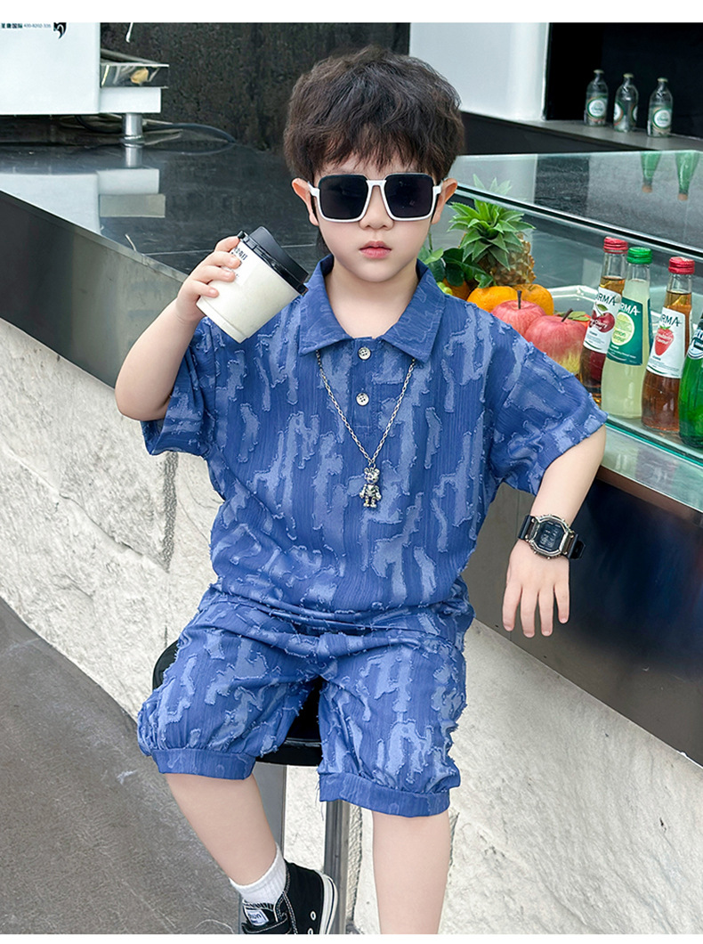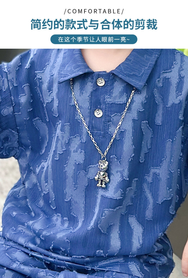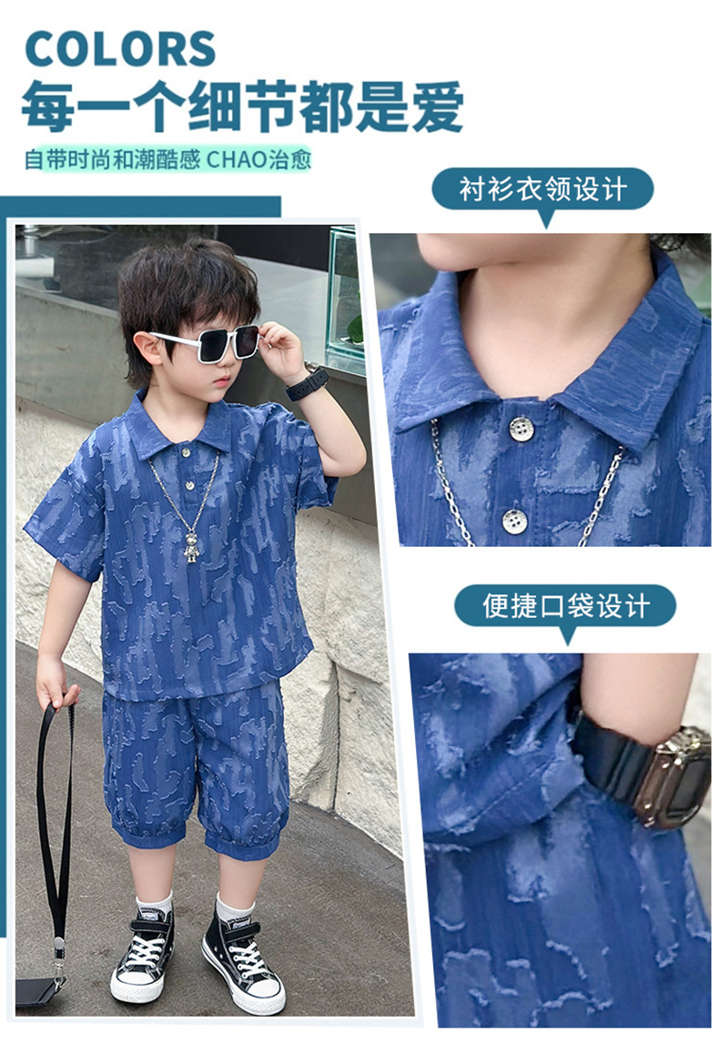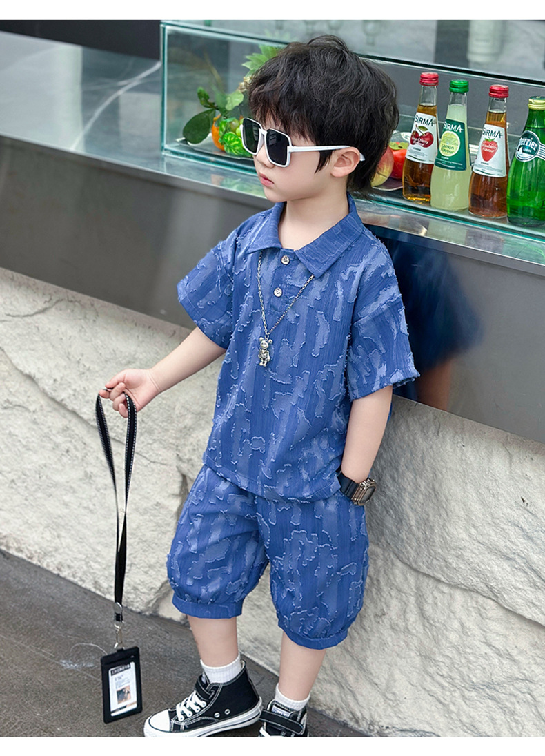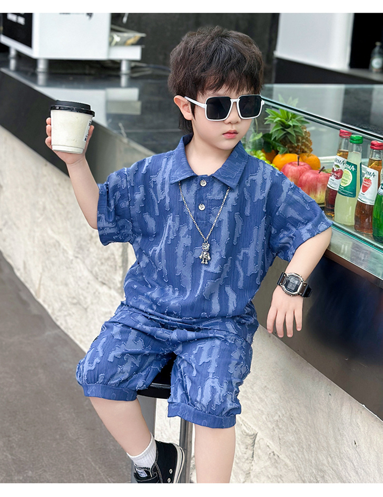 남아용 자카드 폴로 셔츠 세트 여름 신상 아동용 멋지고 패셔너블한 데님 얇고 시원한 땀 흡수 및 보풀 방지스토어 가기