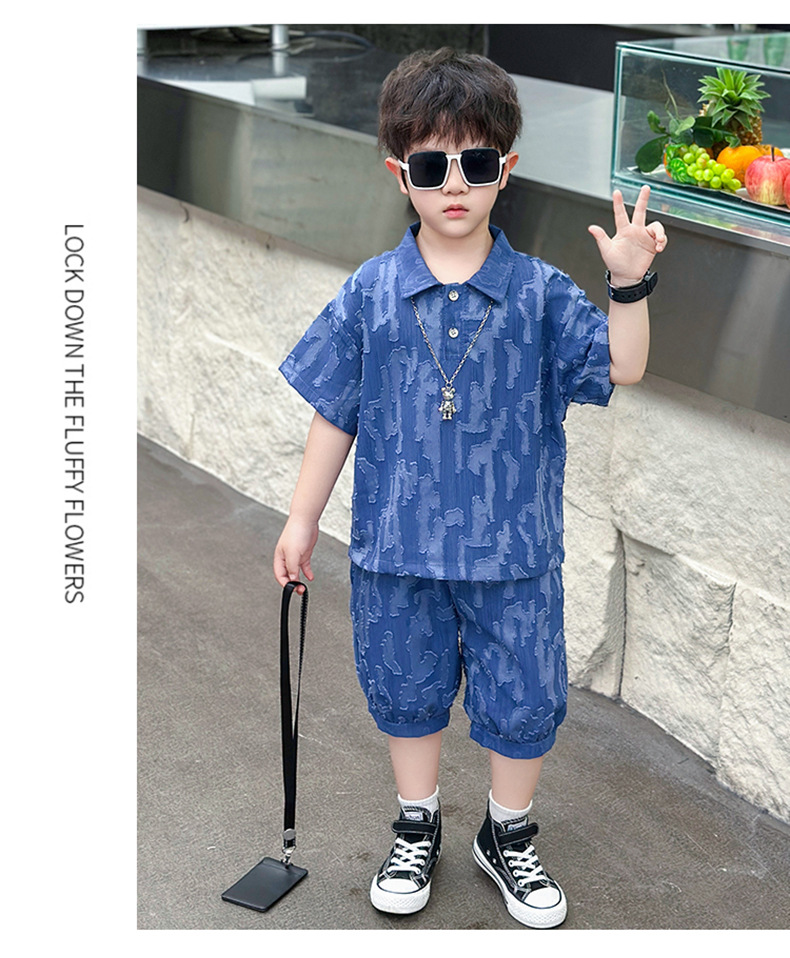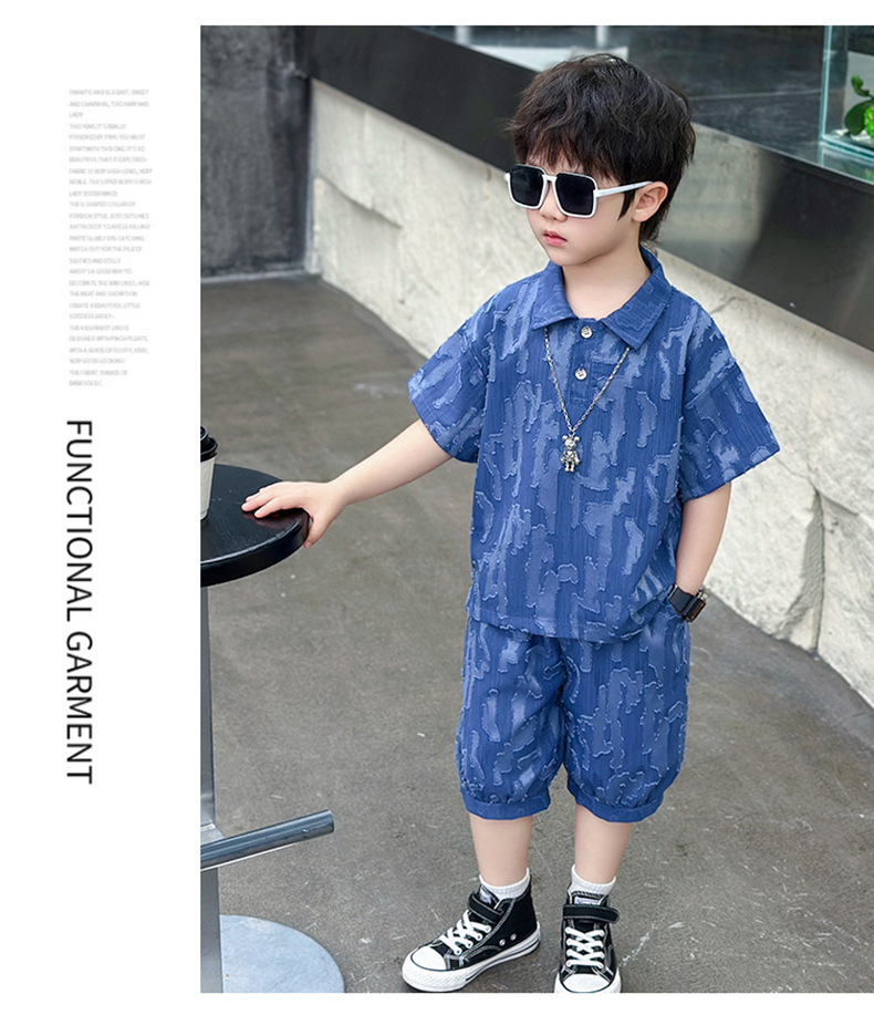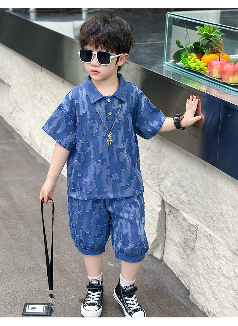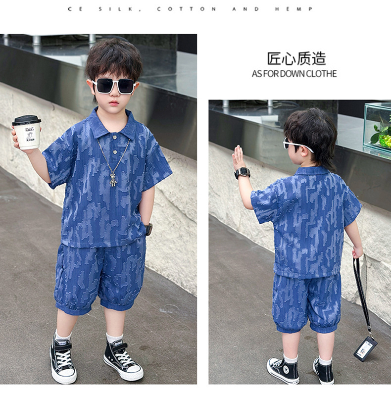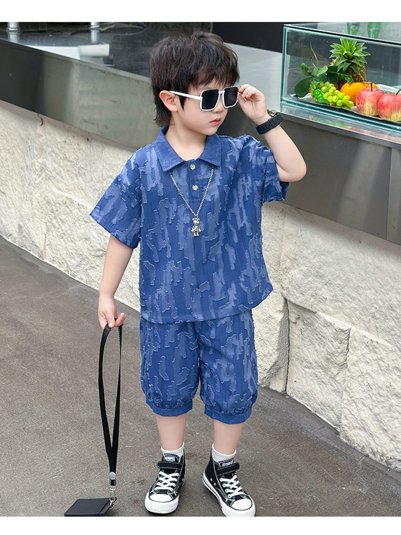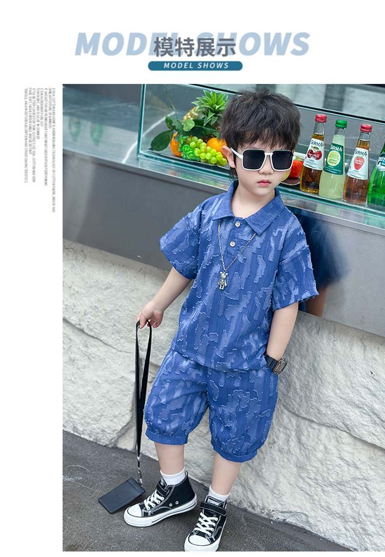 남아용 자카드 폴로 셔츠 세트 여름 신상 아동용 멋지고 패셔너블한 데님 얇고 시원한 땀 흡수 및 보풀 방지스토어 가기