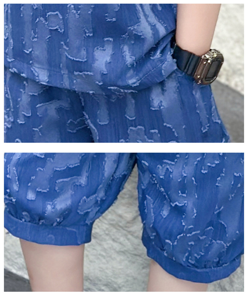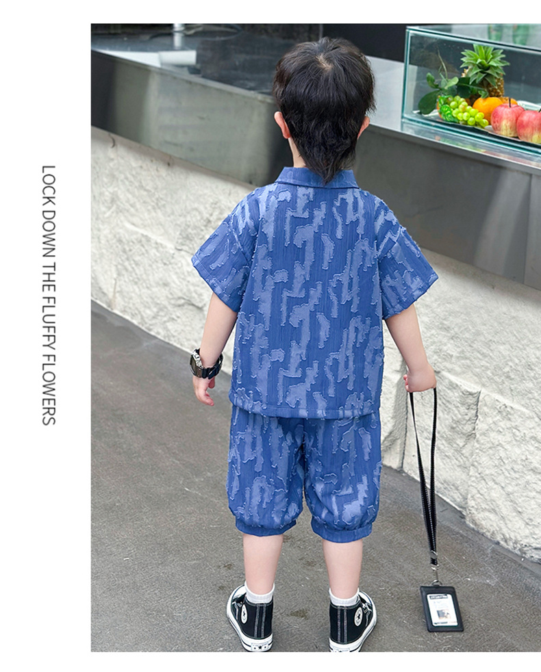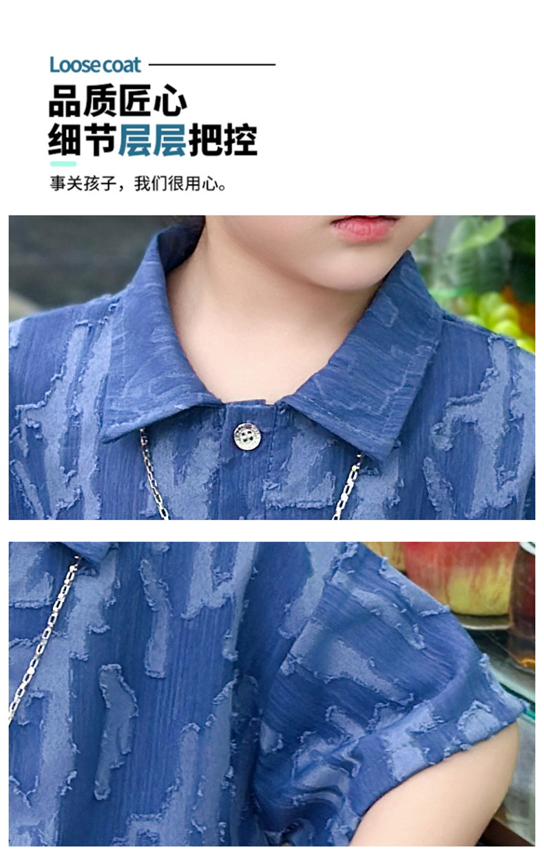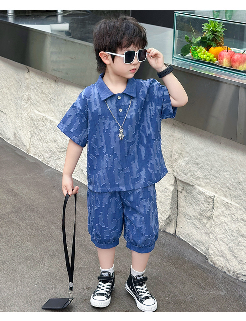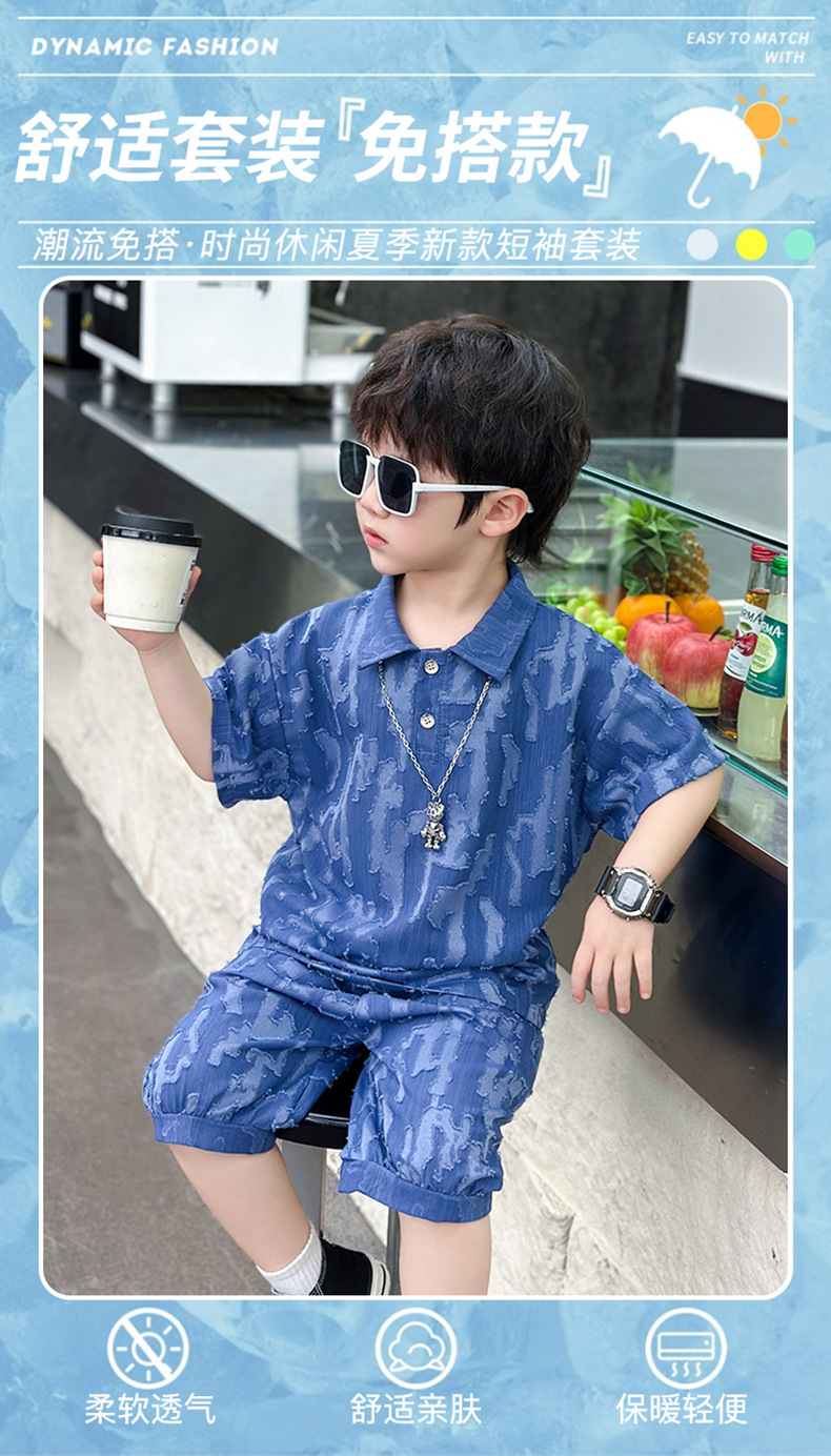 남아용 자카드 폴로 셔츠 세트 여름 신상 아동용 멋지고 패셔너블한 데님 얇고 시원한 땀 흡수 및 보풀 방지스토어 가기