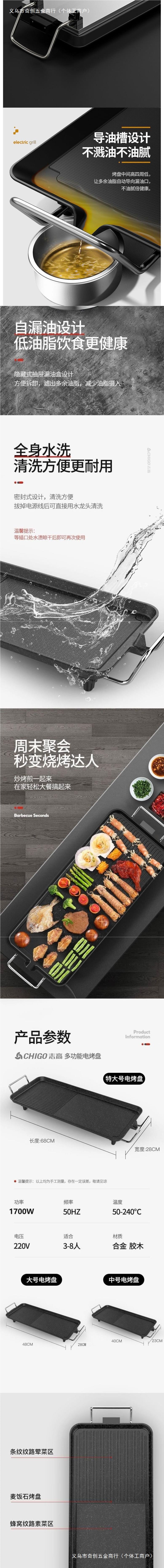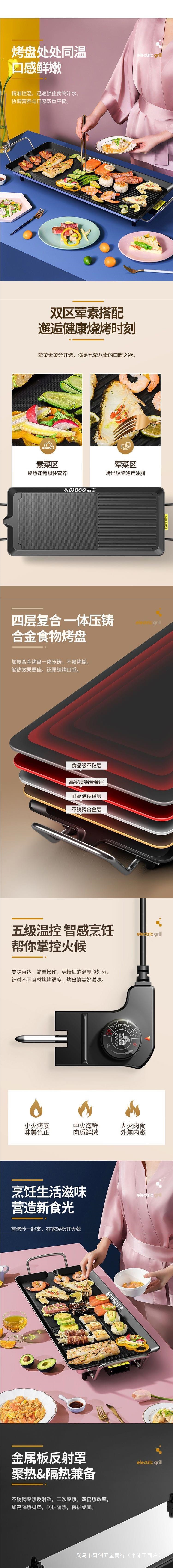 Chigo 전기 그릴 가정용 무연 바베큐 냄비 한국식 철판 그릴 실내 전기 그릴 전기 팬케이크 냄비 올인원 냄비스토어 가기