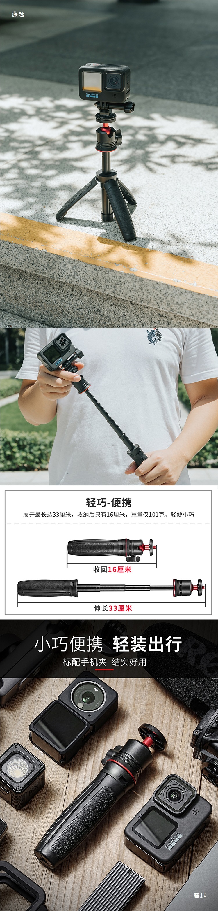 액션에 적합 DJI GoPro 액션 카메라 액세서리 연장 막대 삼각대 insta360 셀카 스틱