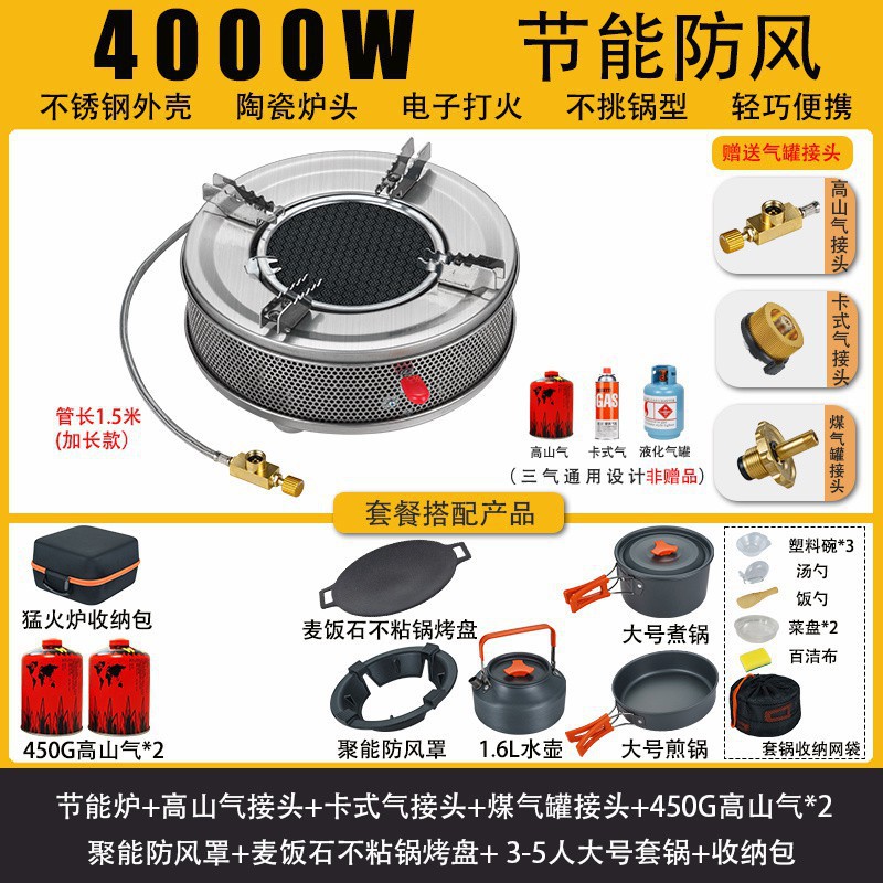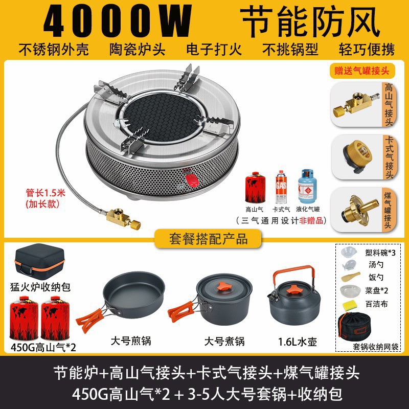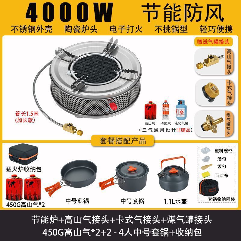 • 적외선 에너지 절약 스토브-450g*2 가스+피크닉 냄비+커넥터 보관 가방