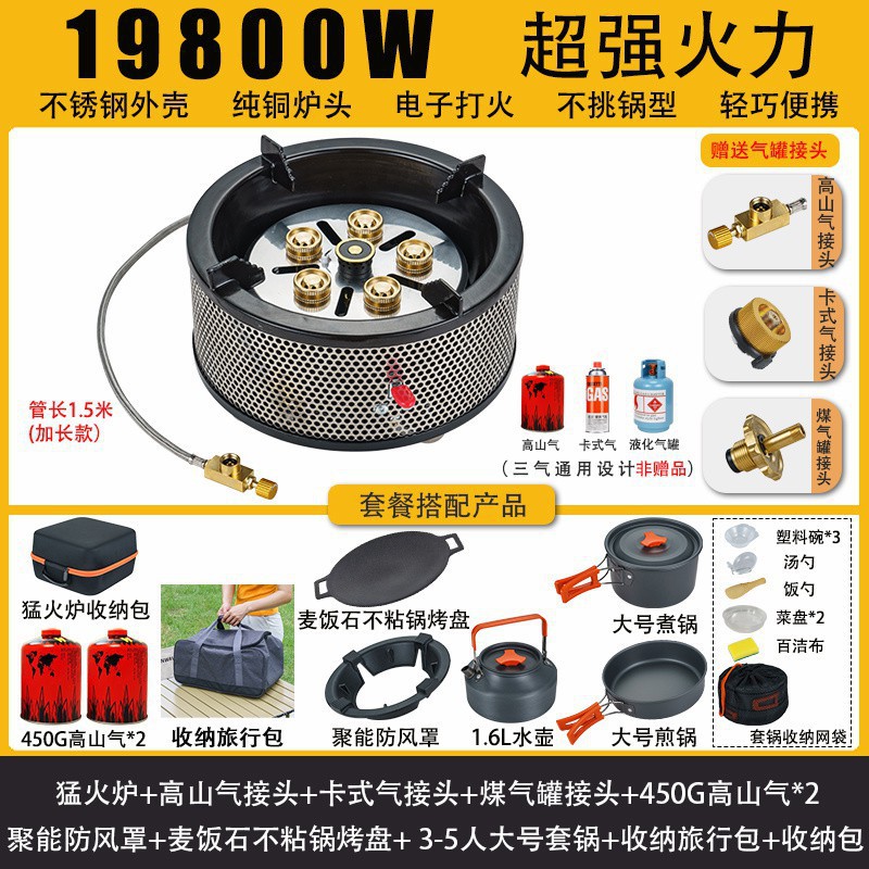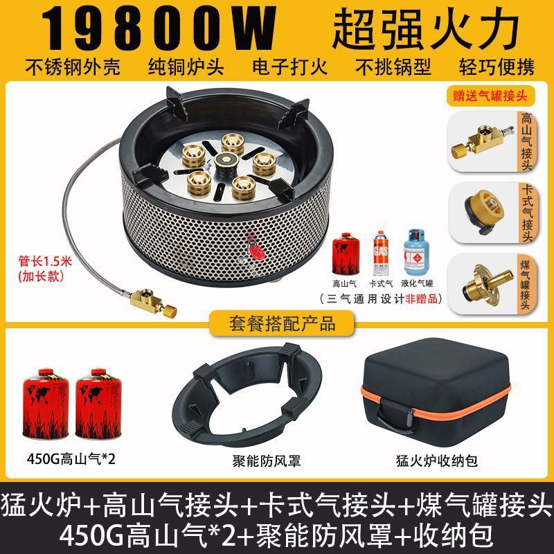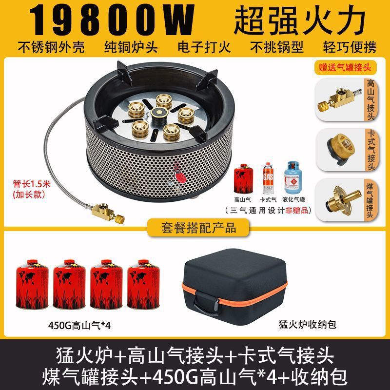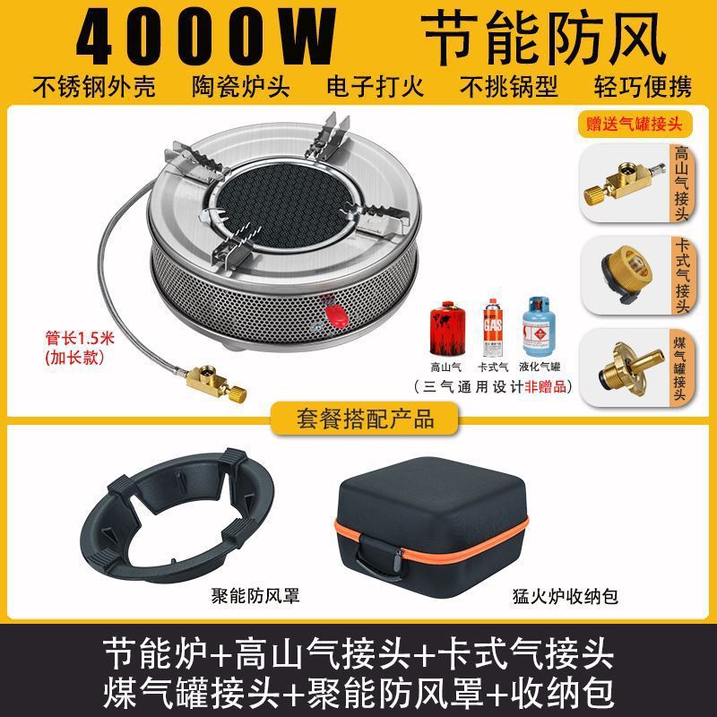 • Six Star Meng 스토브 - 에너지 수집 방풍 커버 + 플랫 가스 카드 가스 커넥터 + 보관 가방