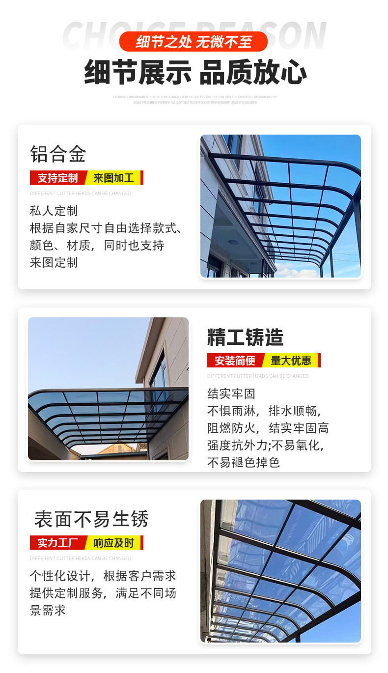 알루미늄 합금 캐노피 엔듀로 보드 야외 빌라 안뜰 차양 및 태양 보호 창고 가정용 개폐식 처마 발코니 선 룸