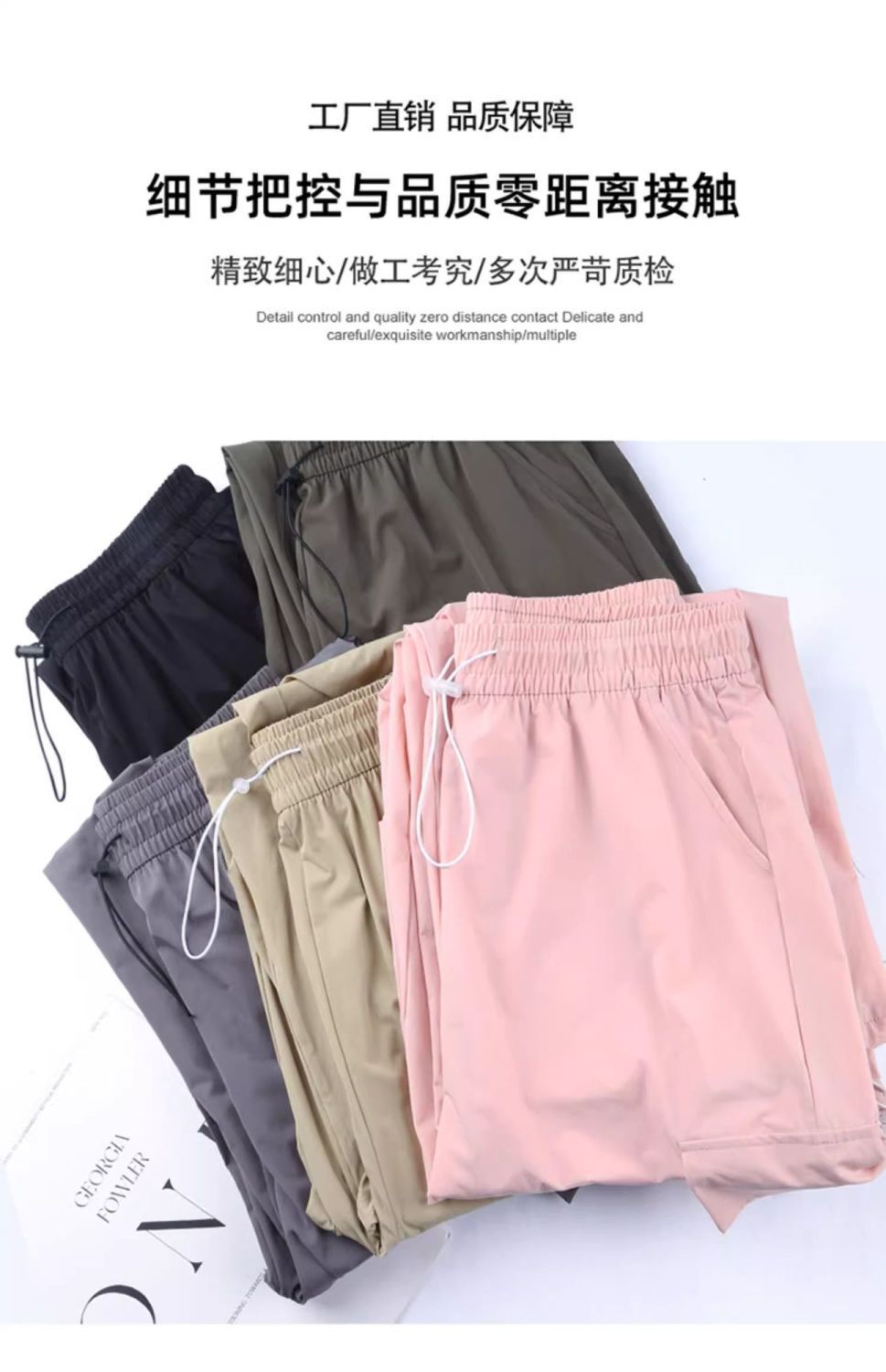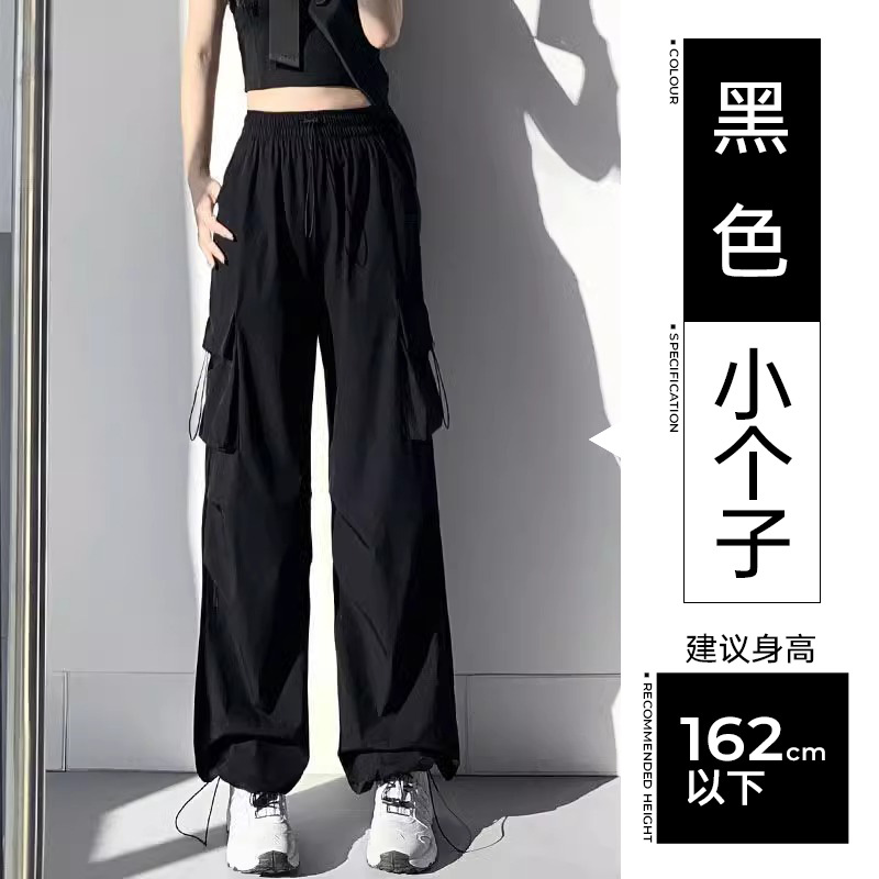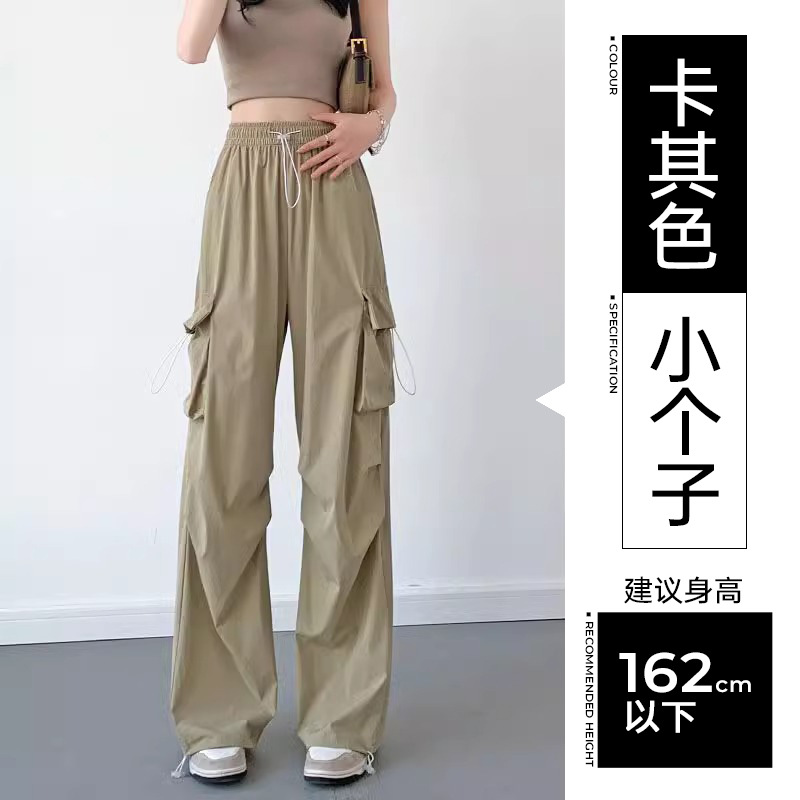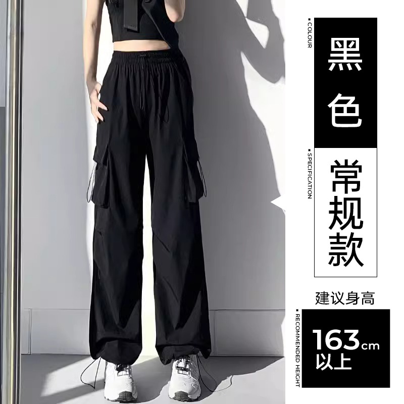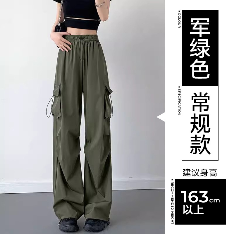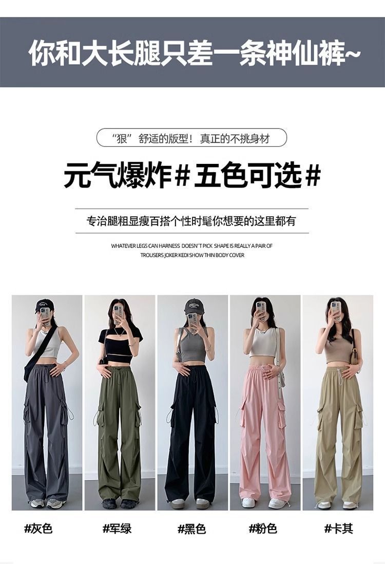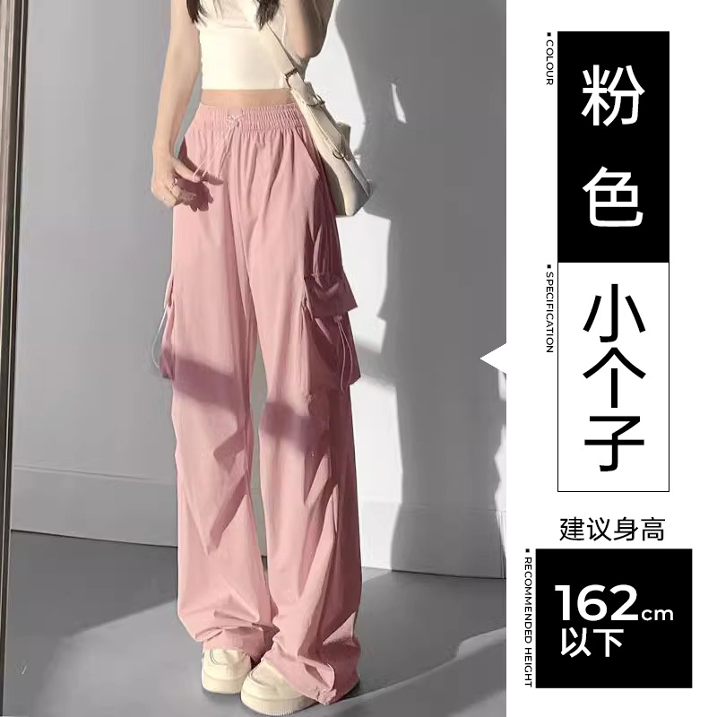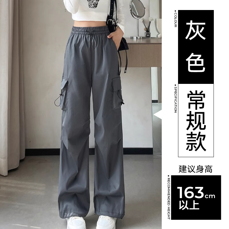 한국 프랑스 작업복 여성 가을 바지 새로운 스타일 충전 아이스 실크 다목적 캐주얼 와이드 레그 스포츠 바지