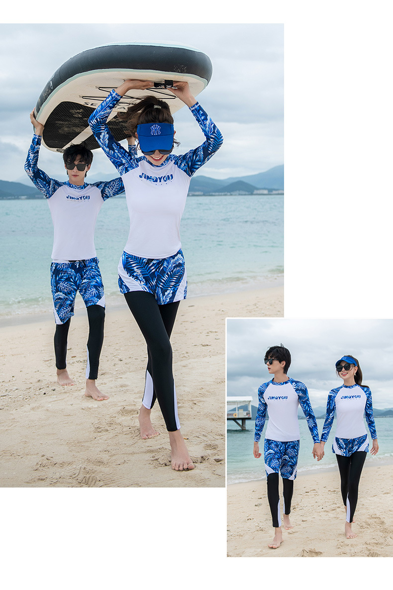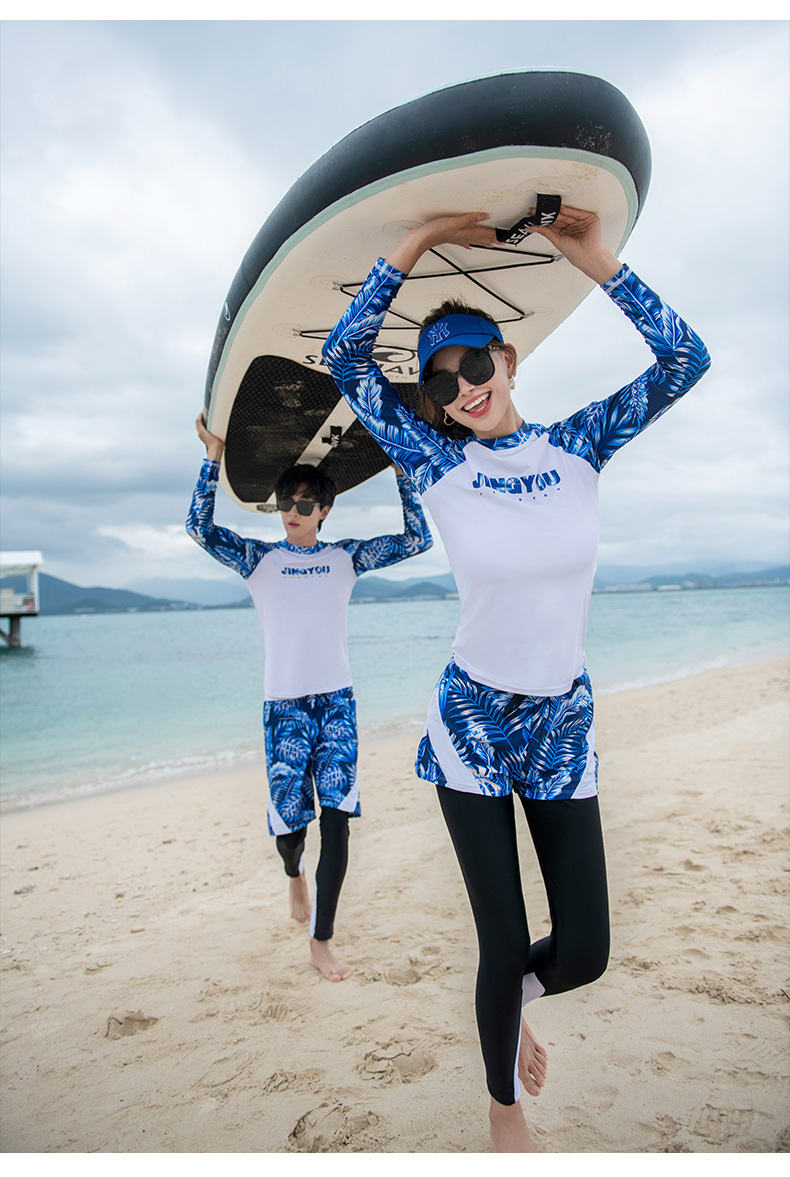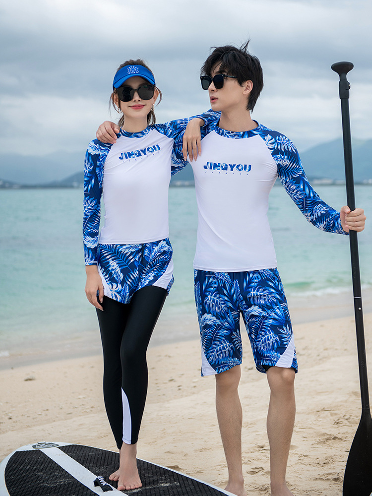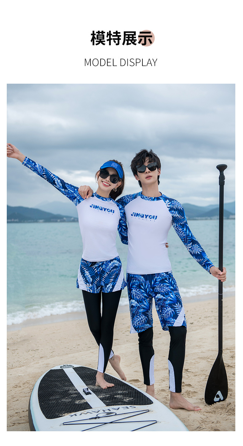 남성과 여성을 위한 새로운 스타일의 스플릿 긴팔 바지 슈트, 스노클링 슈트, 서핑 비치 자외선 차단 속건 슈트스토어 가기