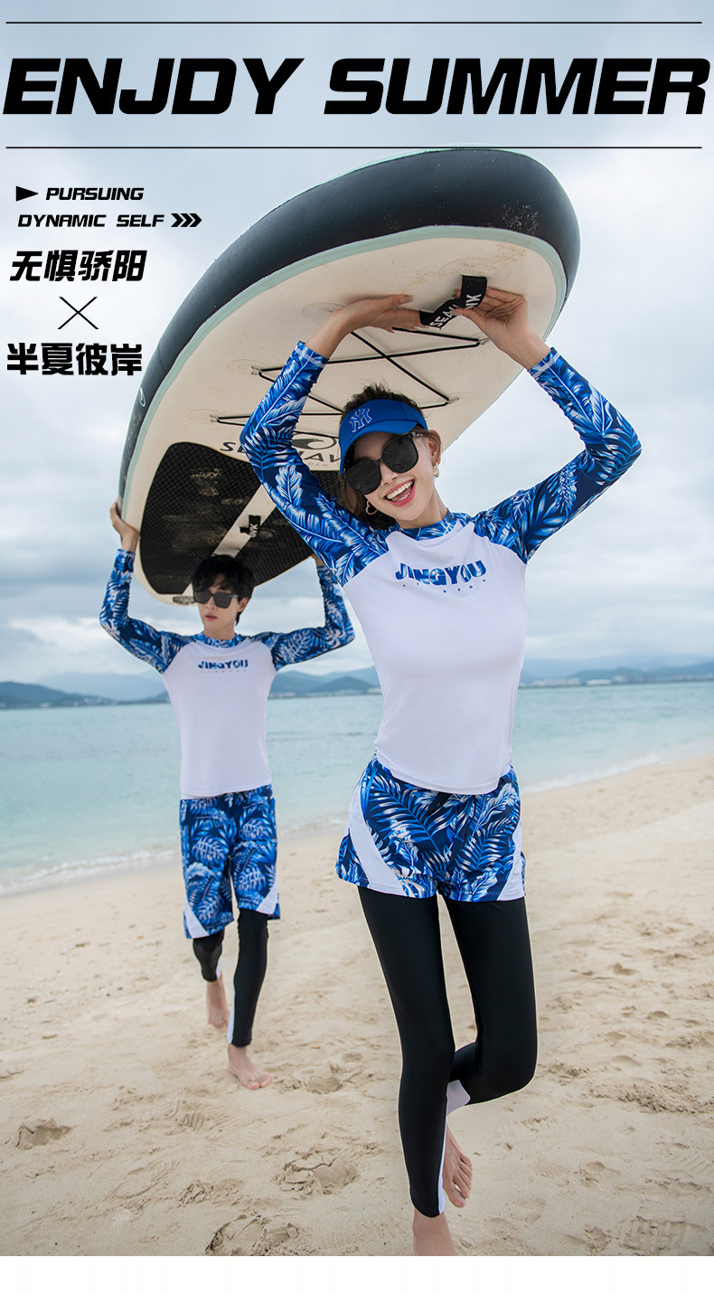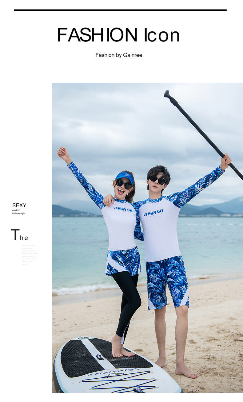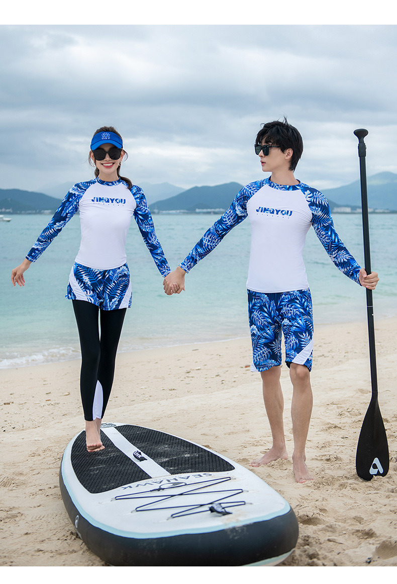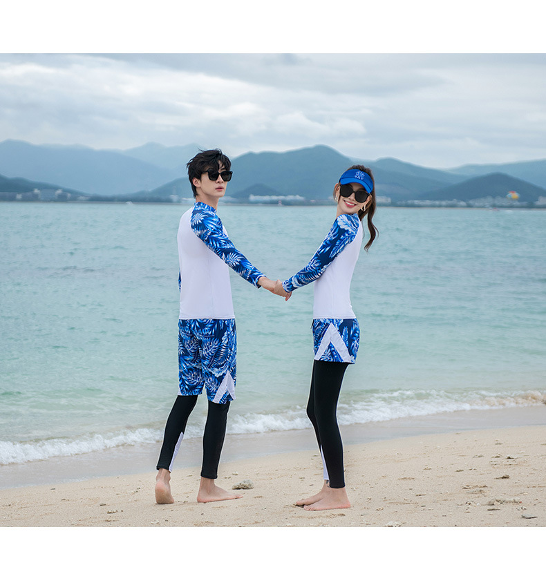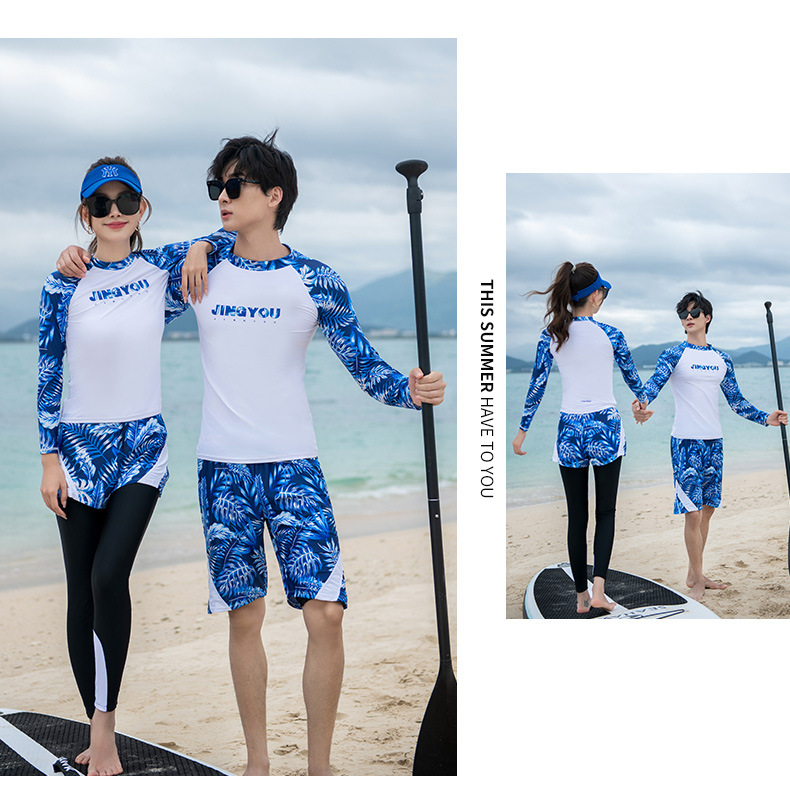 남성과 여성을 위한 새로운 스타일의 스플릿 긴팔 바지 슈트, 스노클링 슈트, 서핑 비치 자외선 차단 속건 슈트스토어 가기