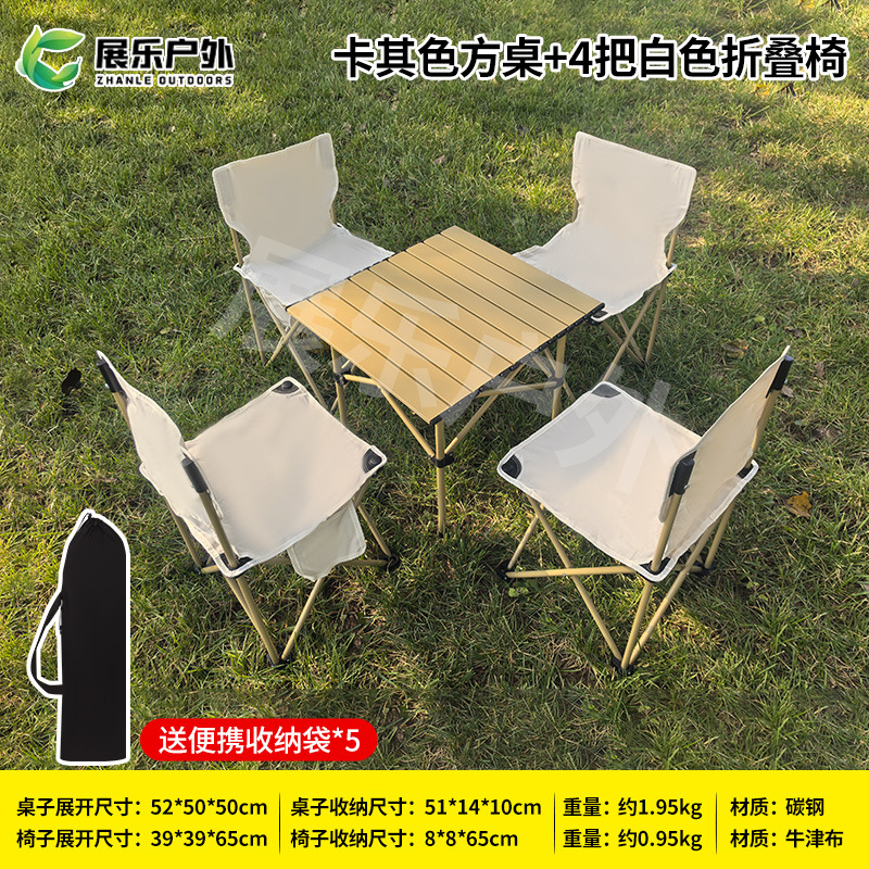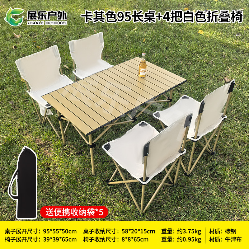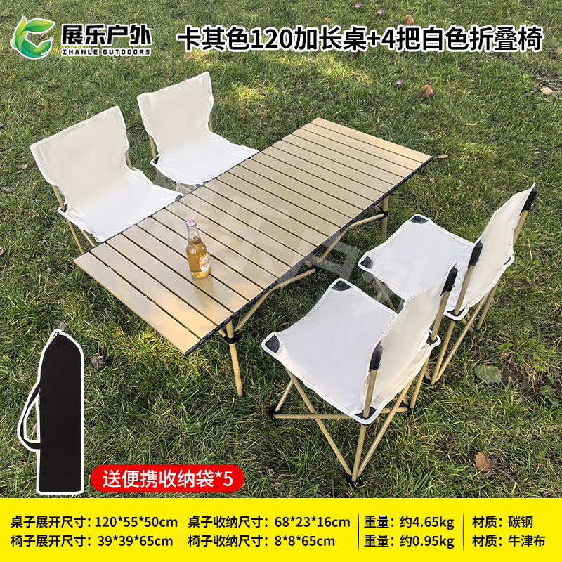• 카키 120 확장 테이블 + 흰색 접이식 의자 4개
