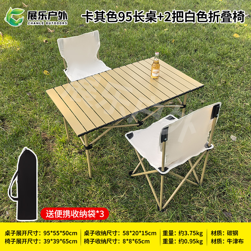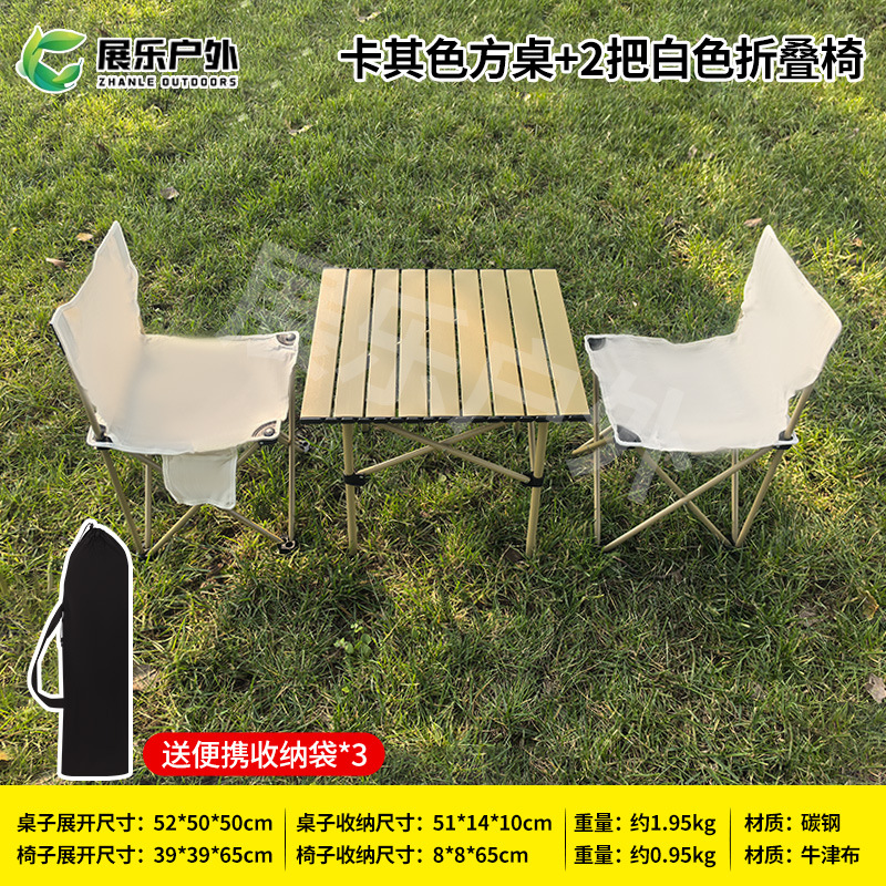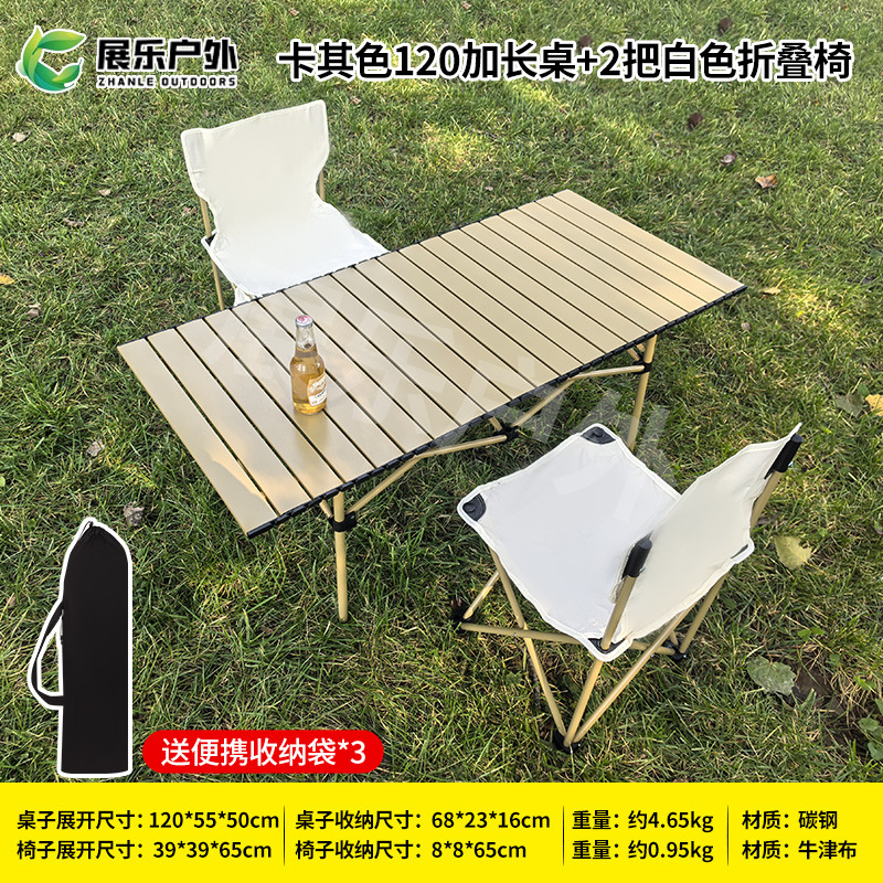 • 카키색 120 확장 테이블 + 흰색 접이식 의자 2개